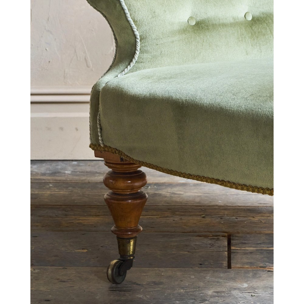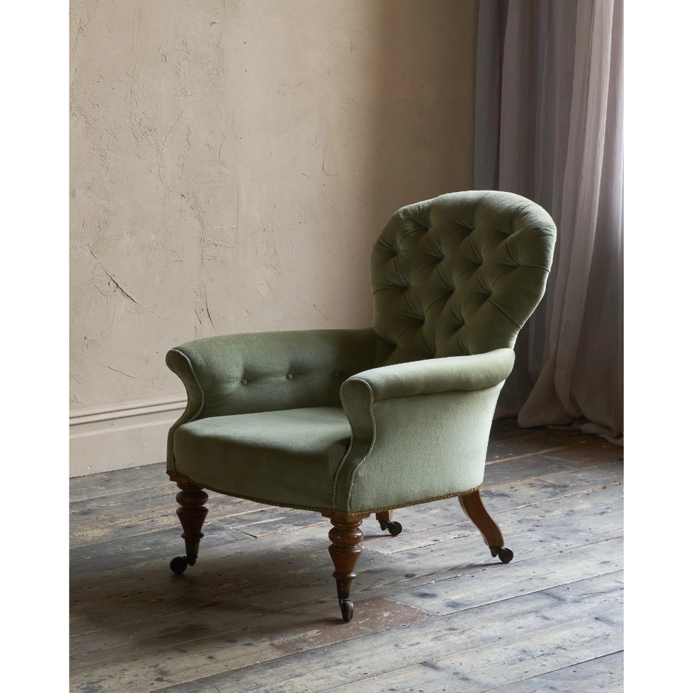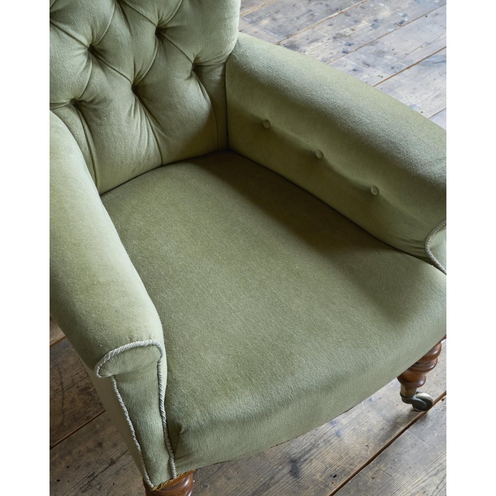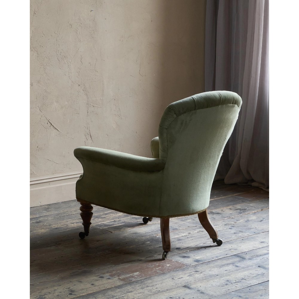 Antique Spoonback Armchair in green velvet.