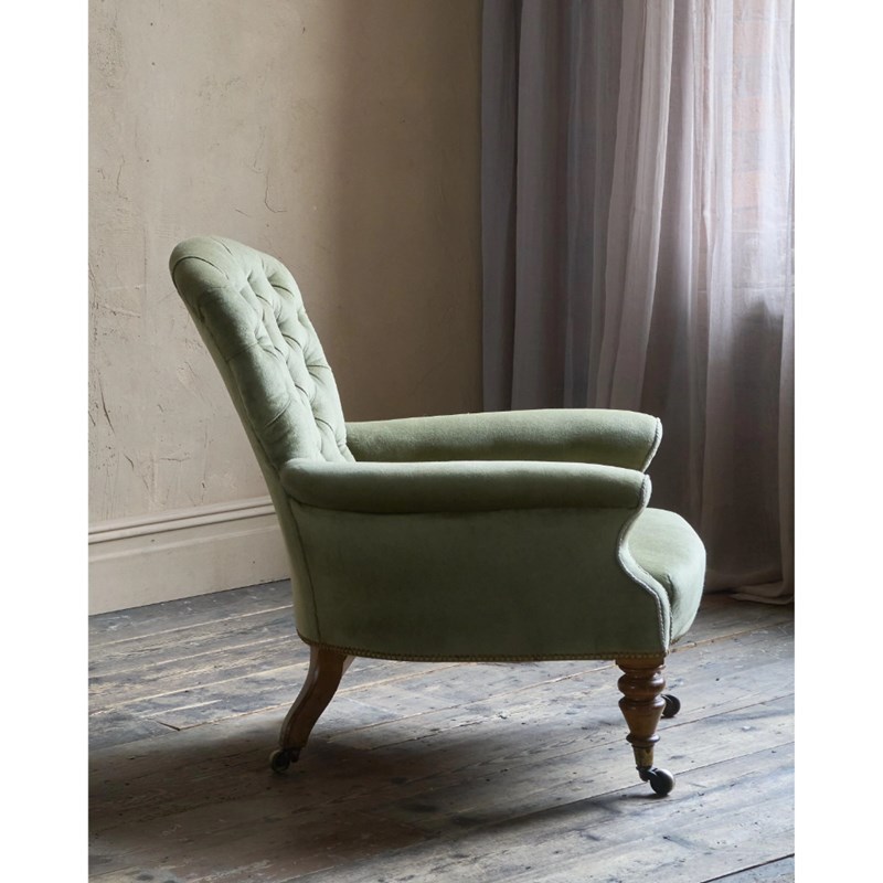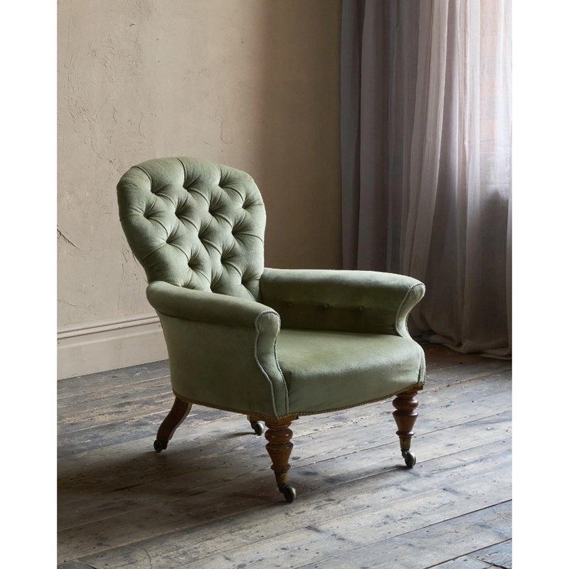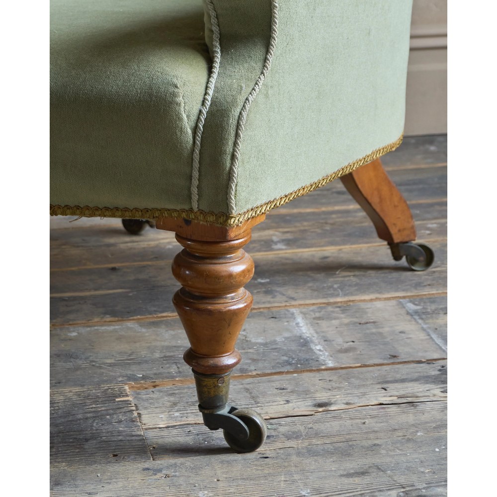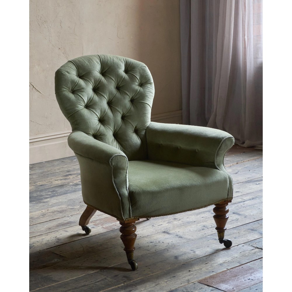 Antique Spoonback Armchair in green velvet.