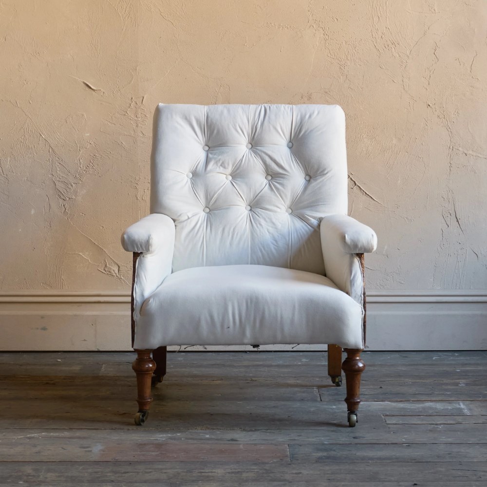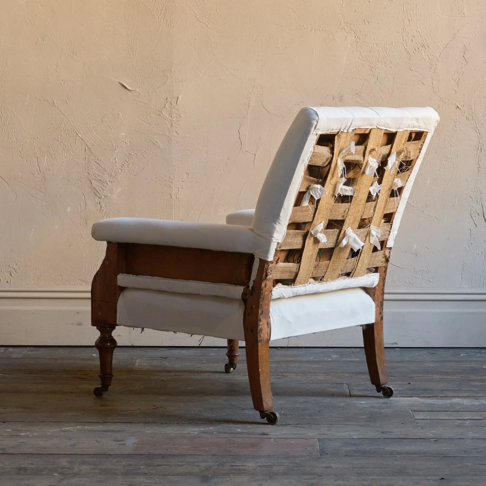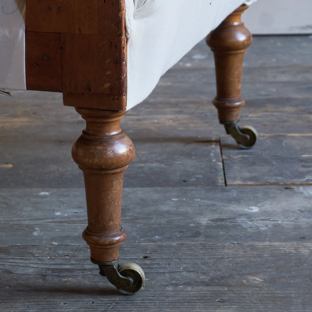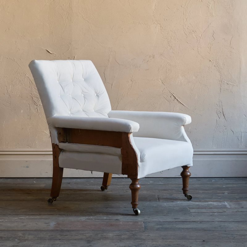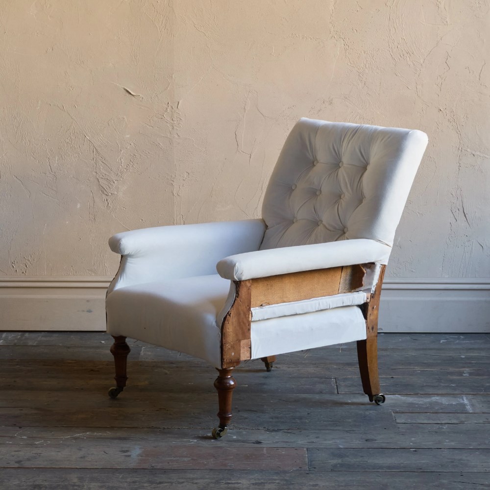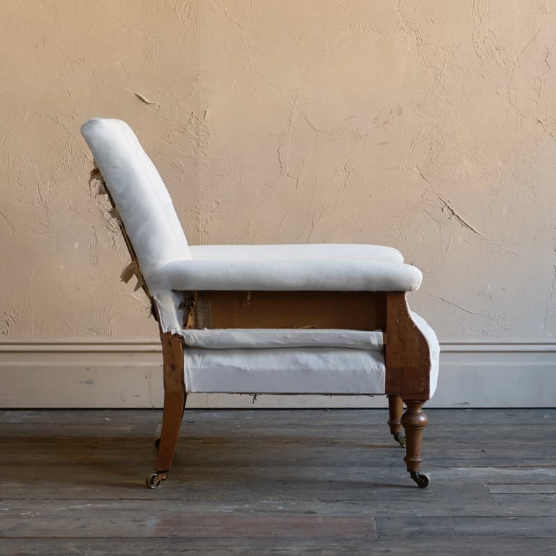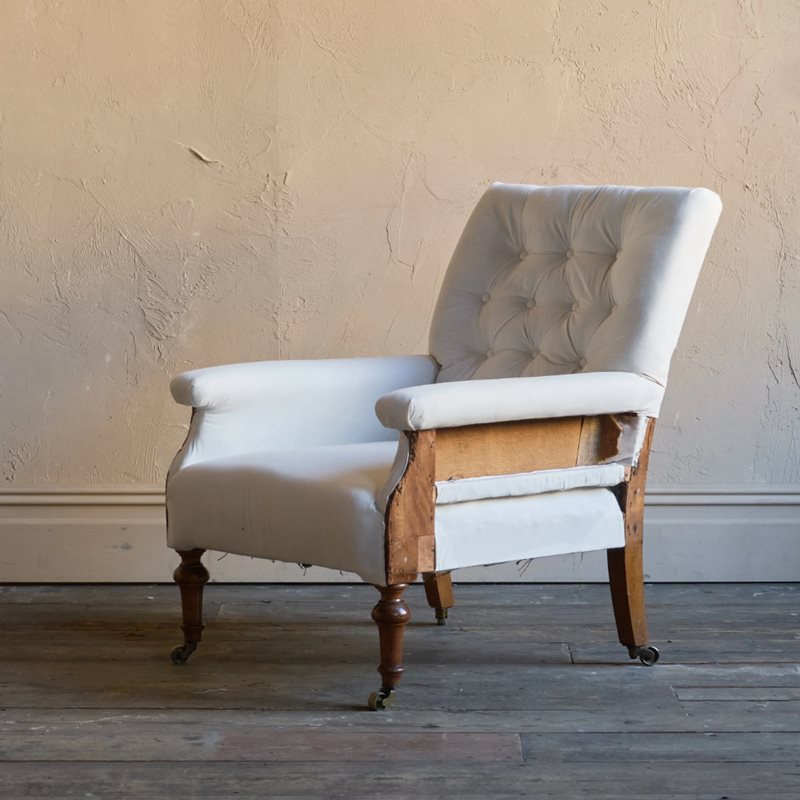 Traditionally upholstered with horsehair fillings and a sprung seat.