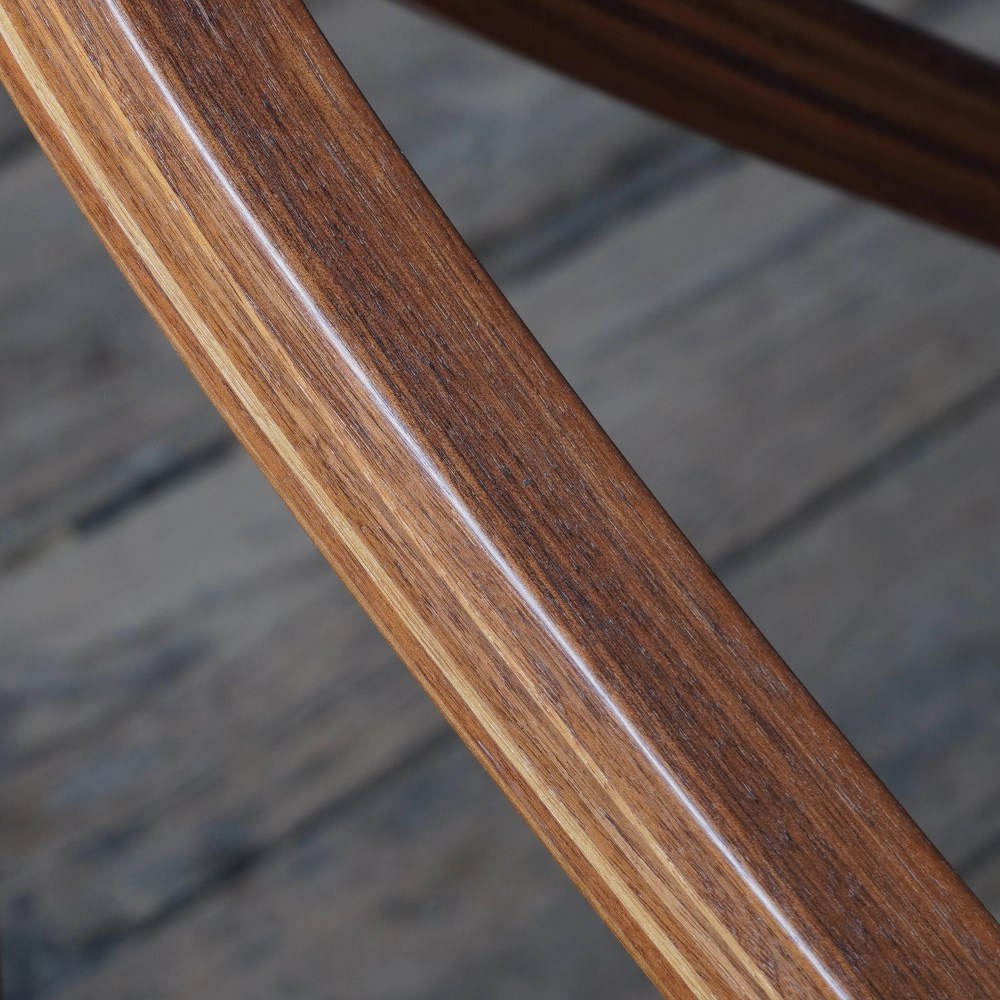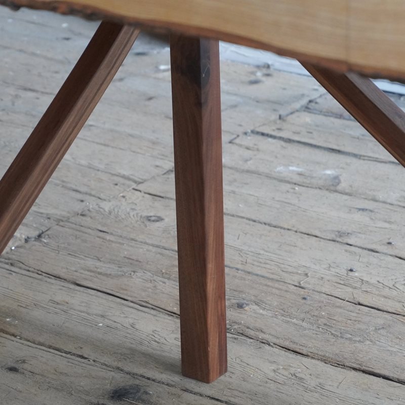 Amber coloured resin mimicking the colour of natural wood resin. - which is one of the small details that give this piece its 'Je ne sais quoi'. One of those designs that bring together the beauty of the natural materials in their natural raw state contrasting against finely finished dovetail drawer sides, the elegant curves of the steam bent walnut, and the secret button for opening the drawers. for me just the right amount of craftsmanship, not overworked, but simple and quality throughout.