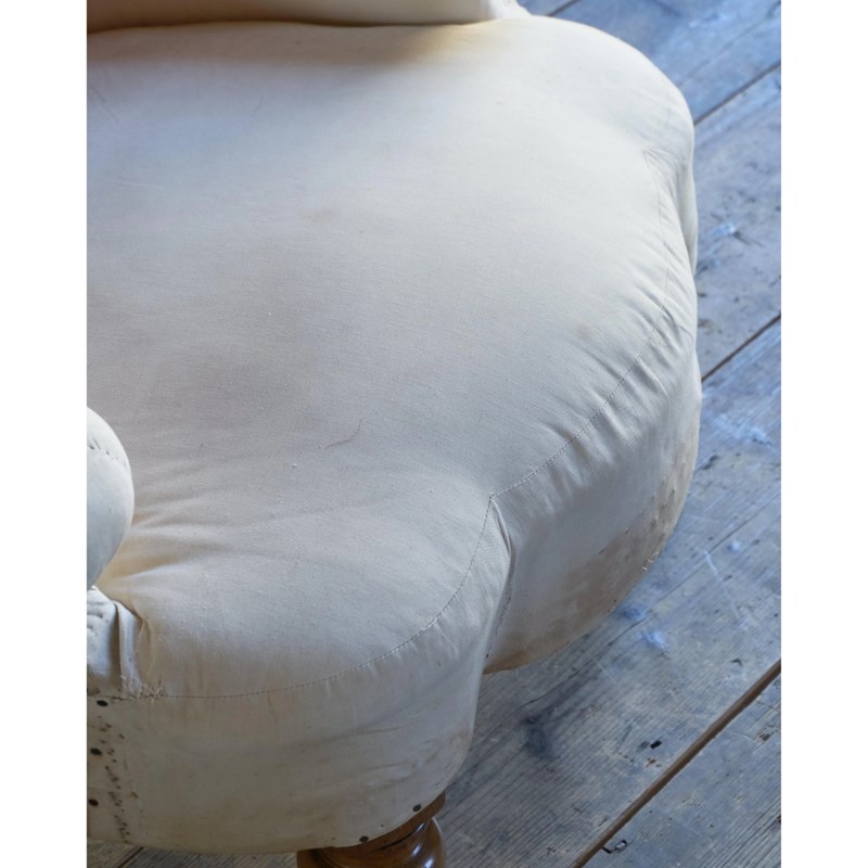 Having a serpentine front to the round seat and a spoon back with deep buttoning