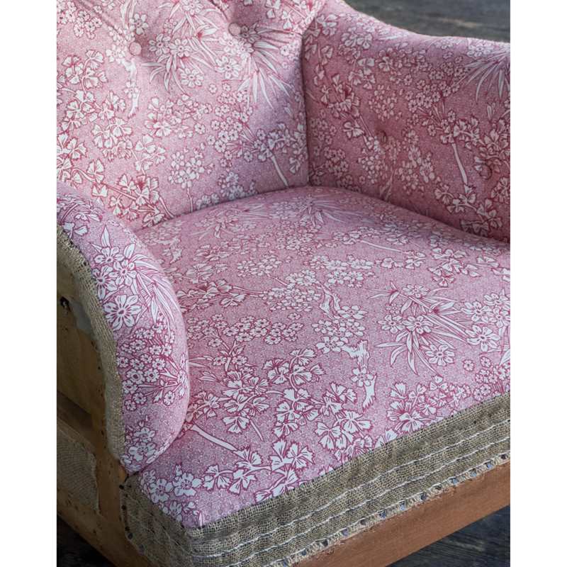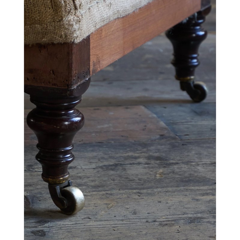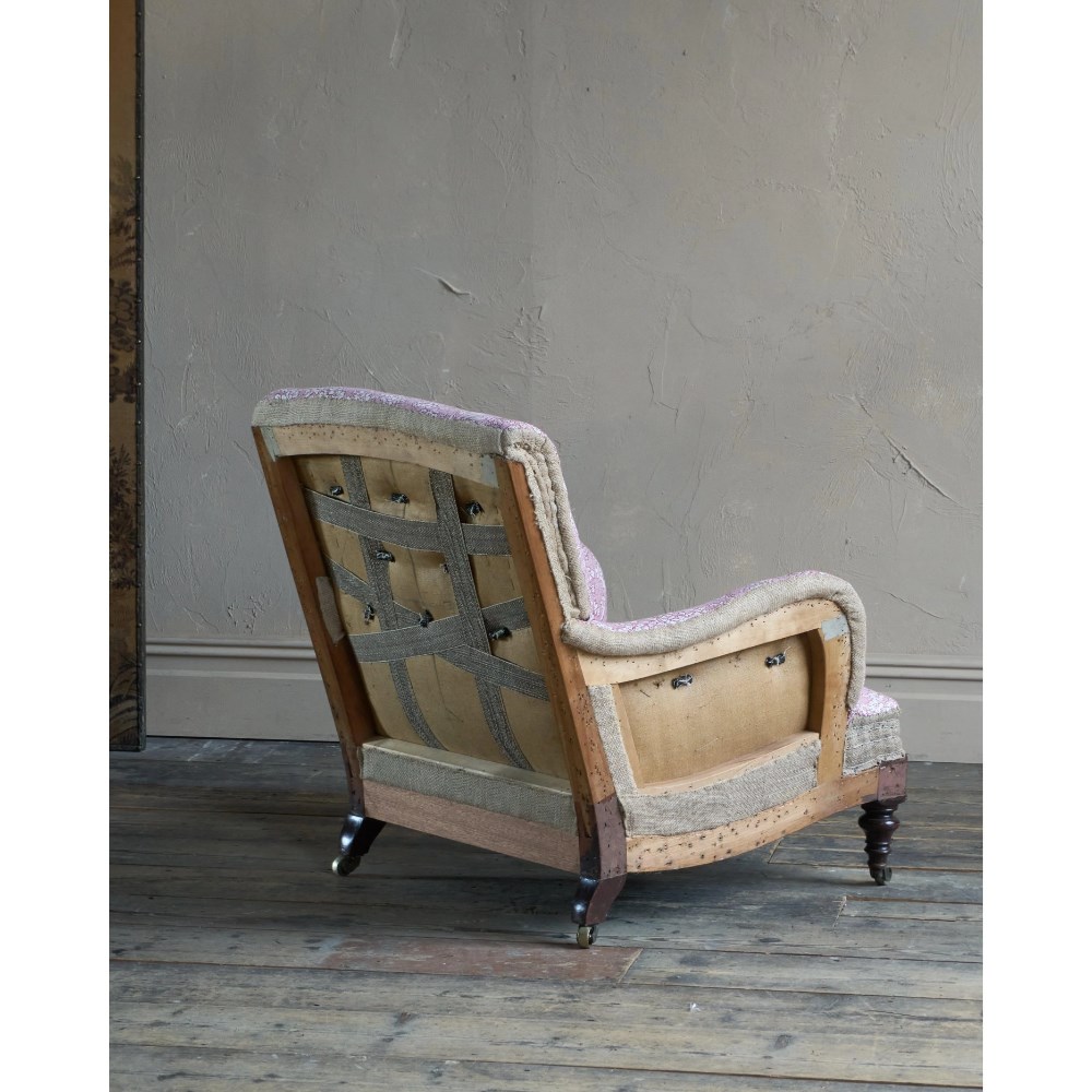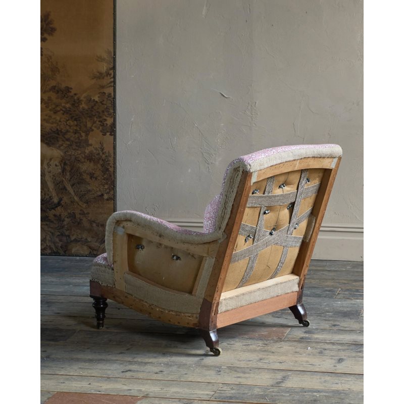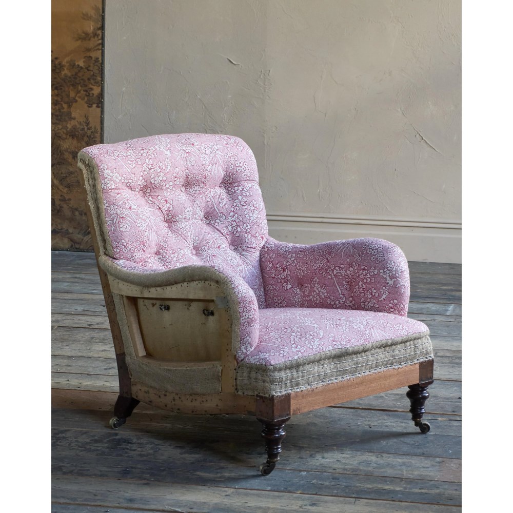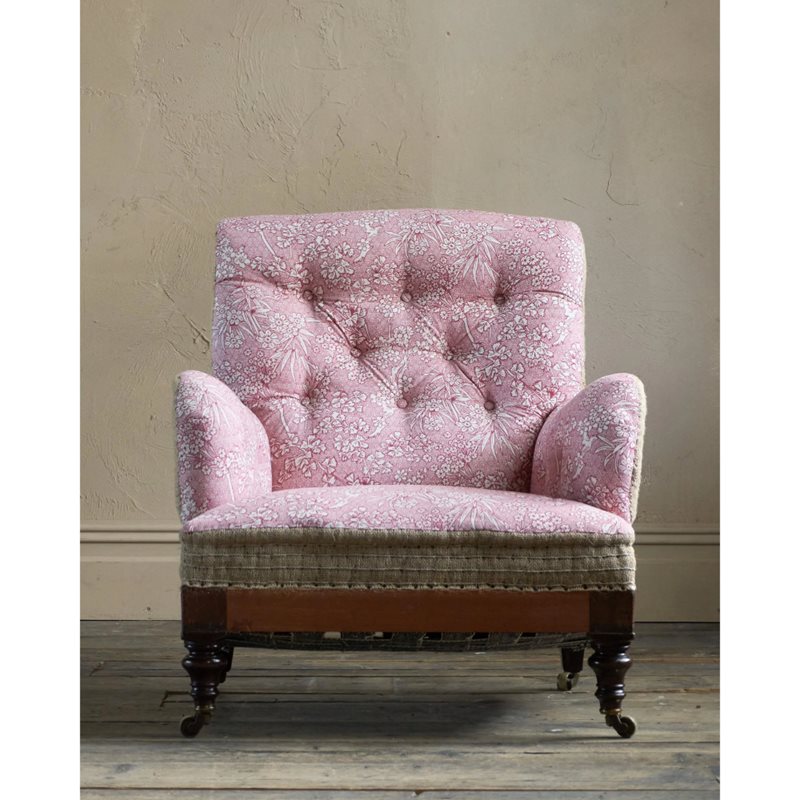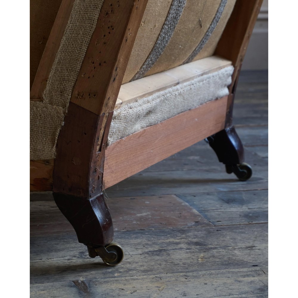 The upholstery has been restored and renewed structurally and has been lined with a replica of the original fabric found that was found underneath during restoration.