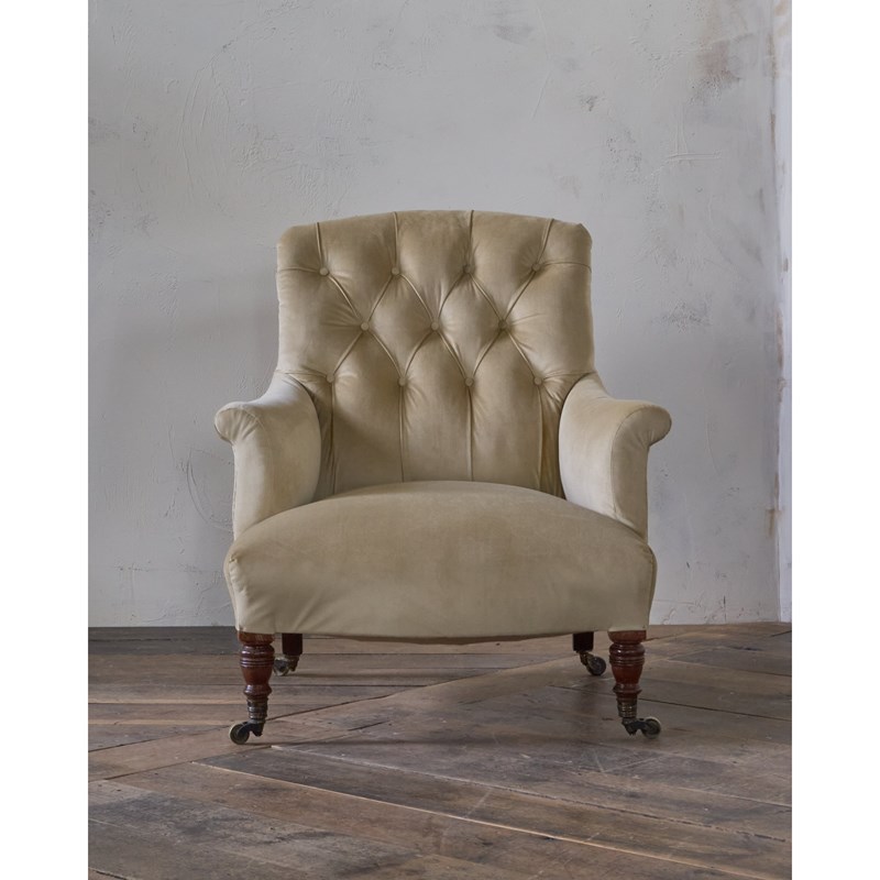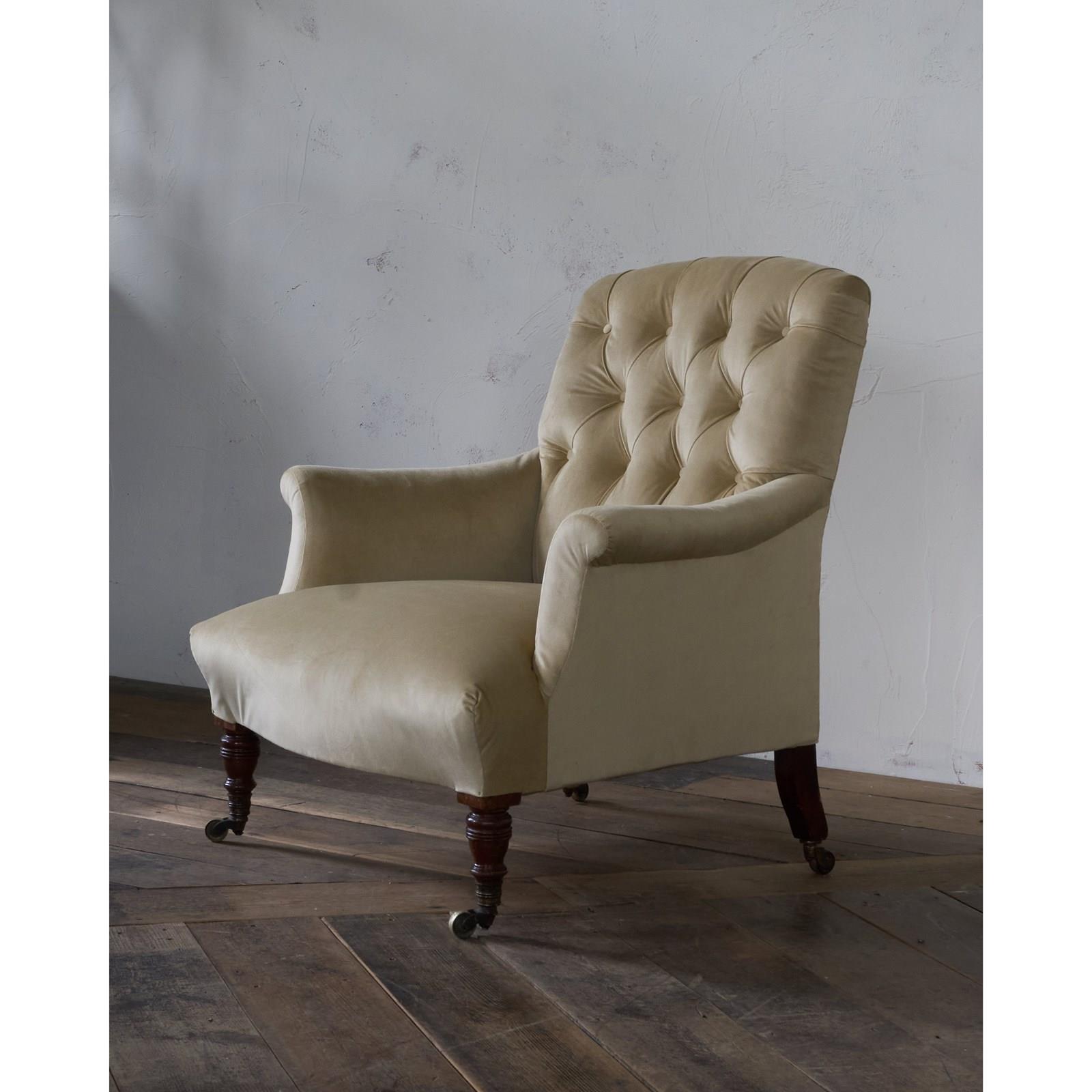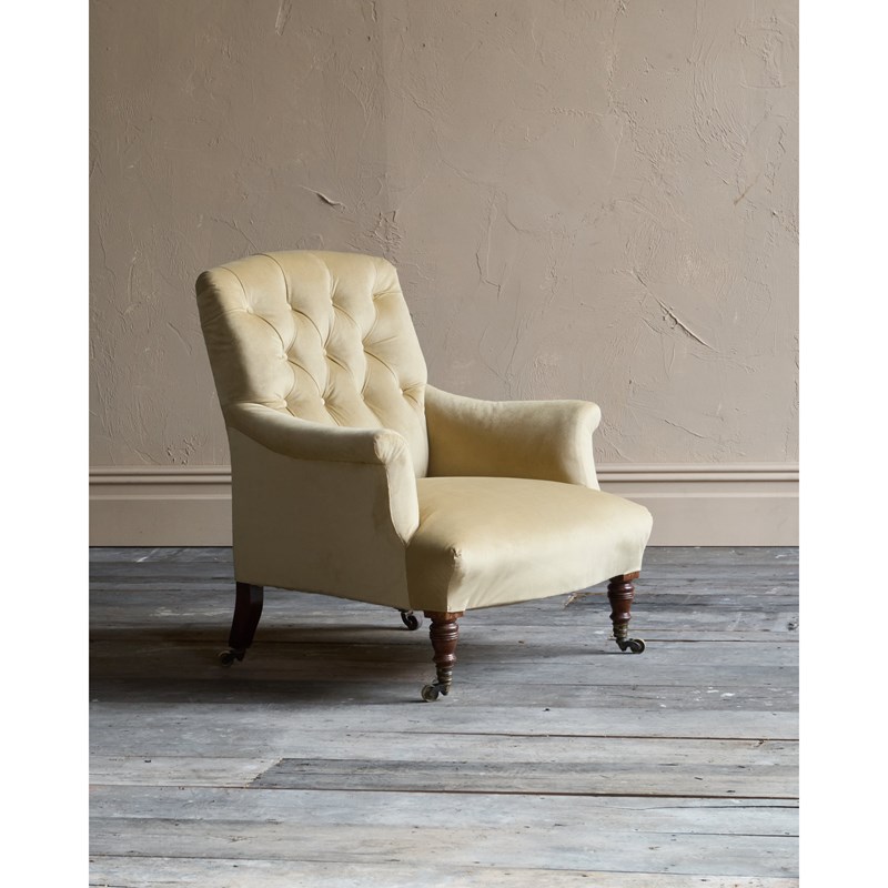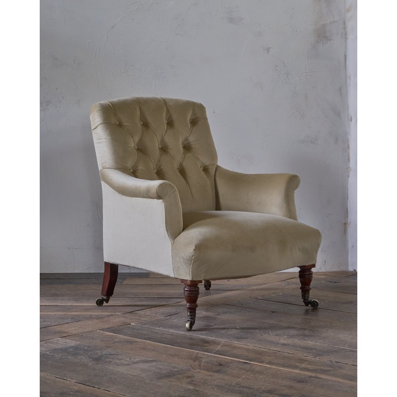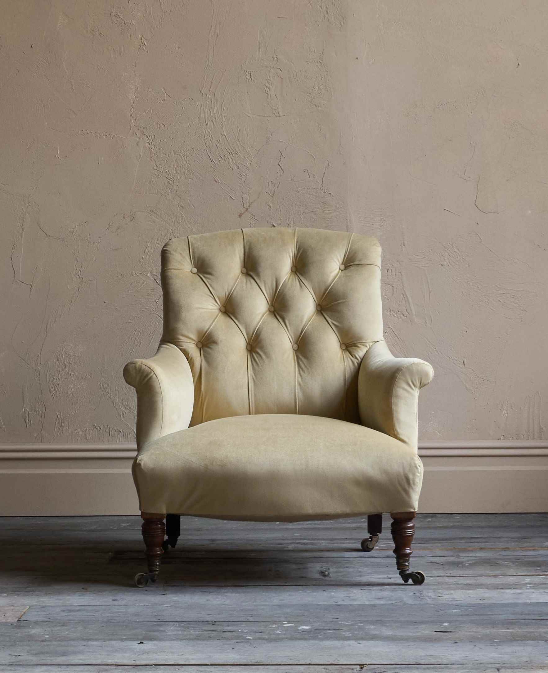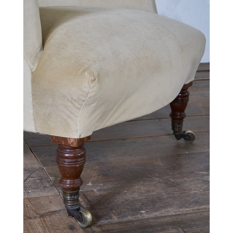 Mahogany splayed back legs also with Howard and Sons stamped castors, leg stamped '19671 3986 Howard and Sons Ltd, Berners St'