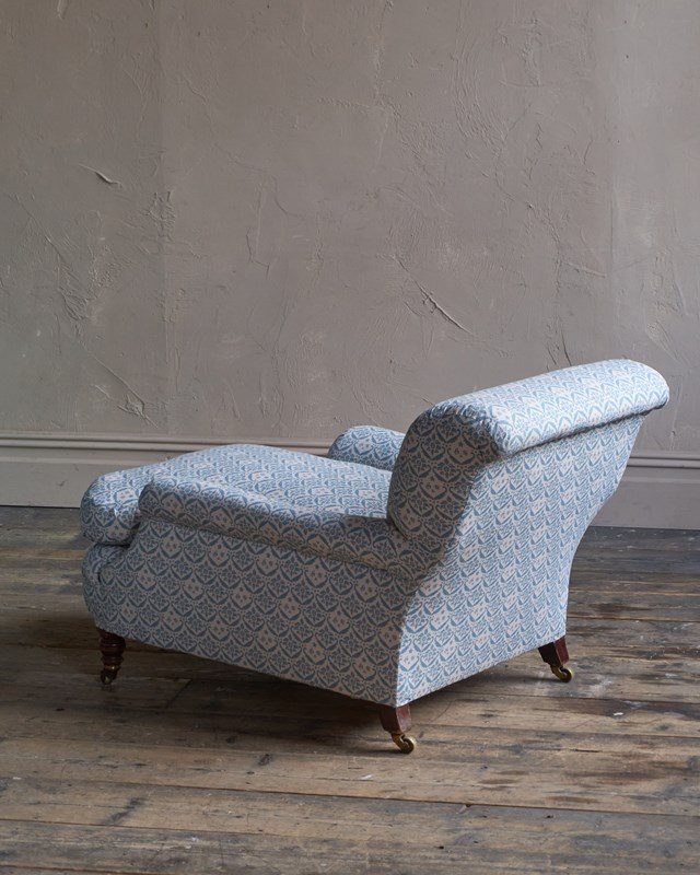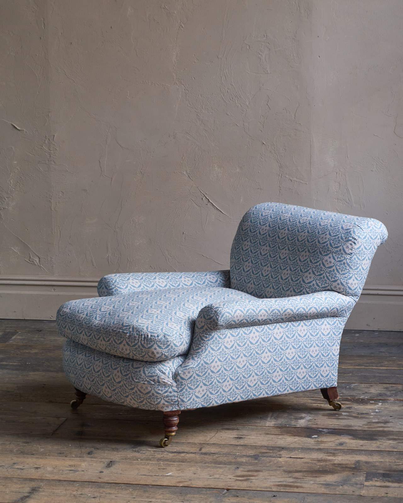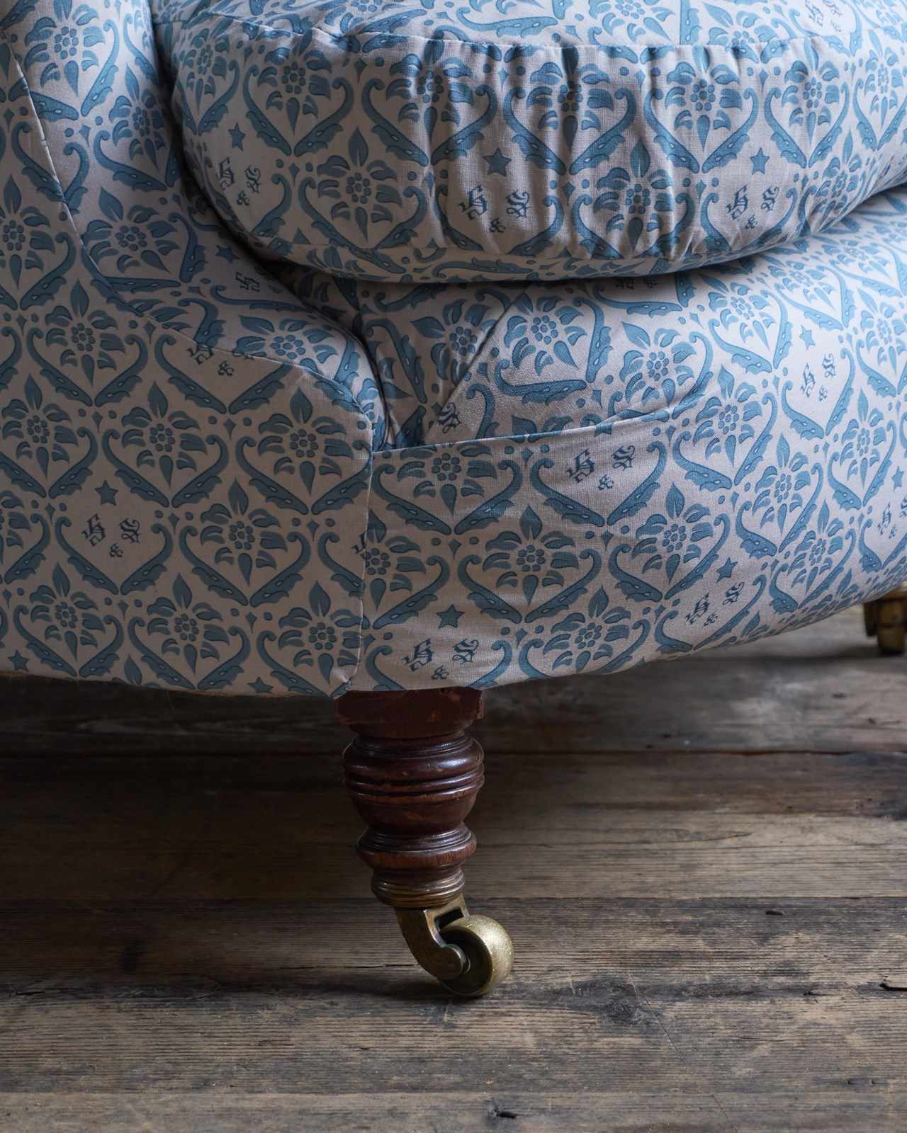 Ring turned legs on ring turned Howard and sons castors, with short splayed legs to the rear also having the original Howard and sons castors.