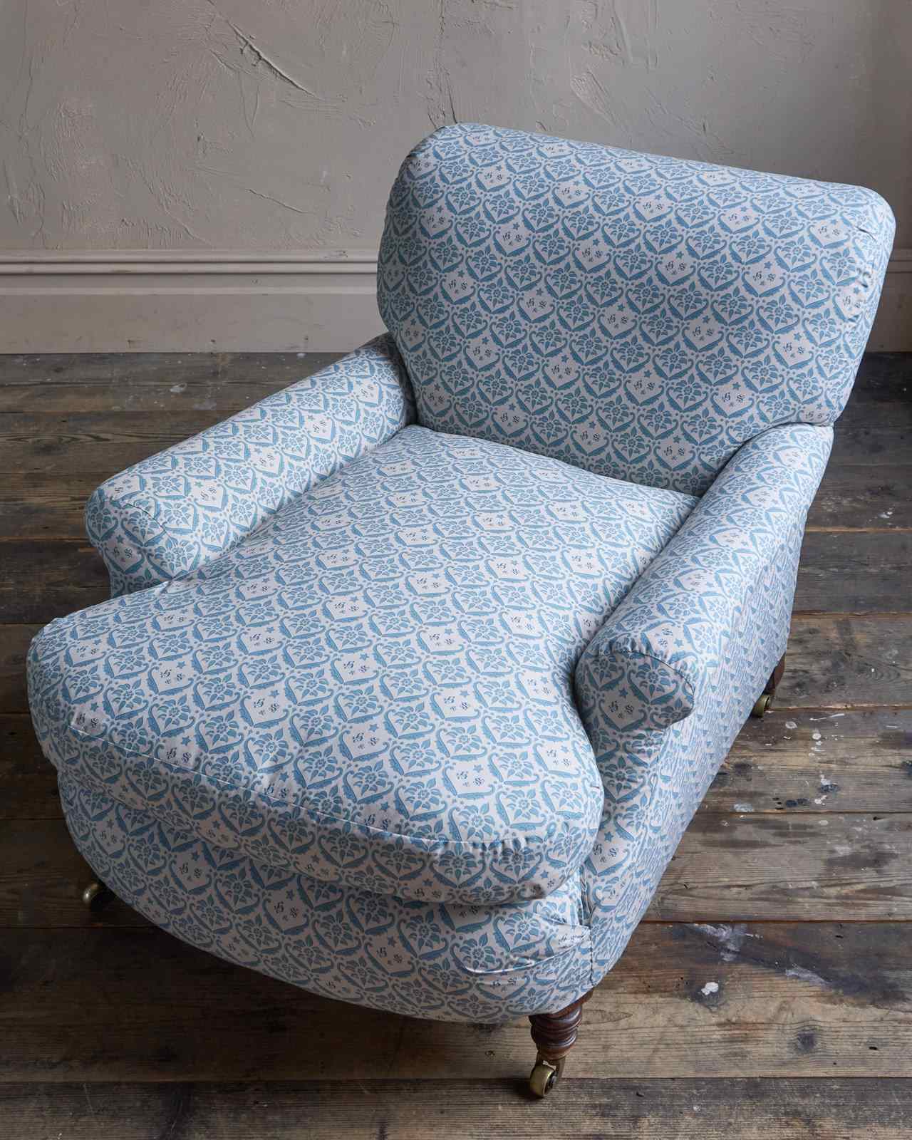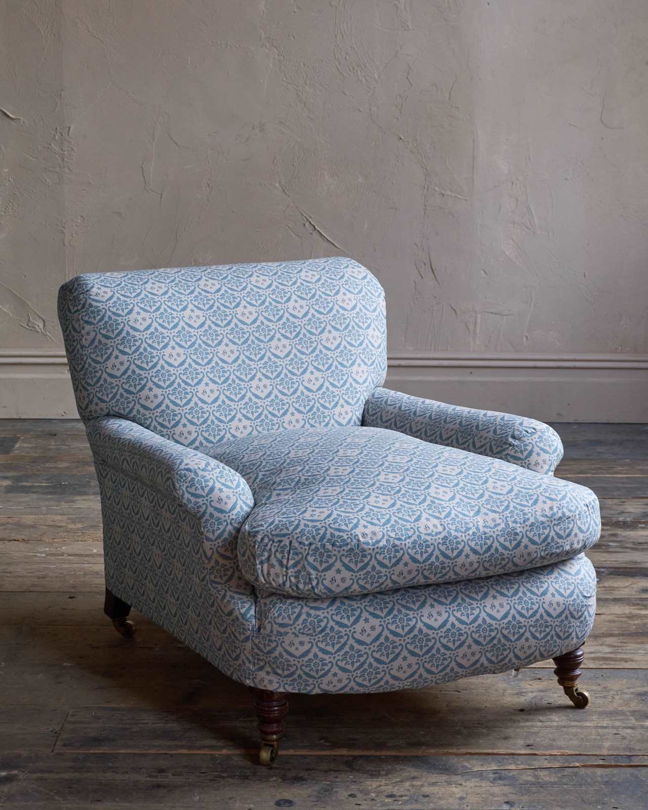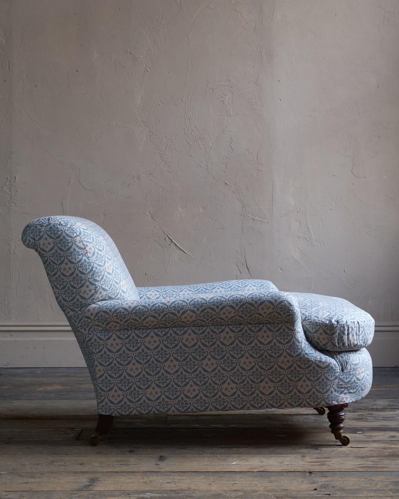 Ring turned legs on ring turned Howard and sons castors, with short splayed legs to the rear also having the original Howard and sons castors.