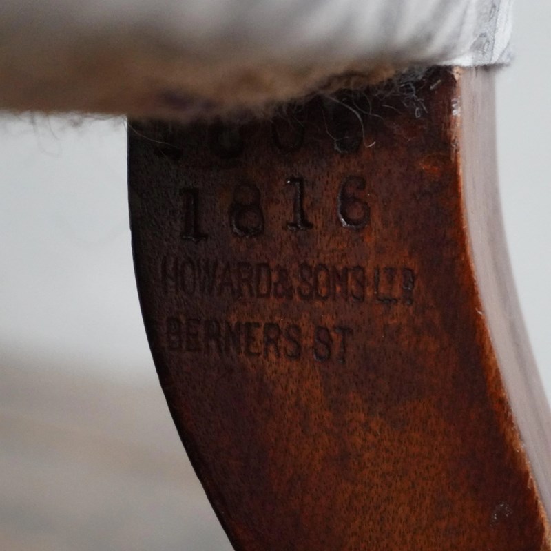 1. Having the number and name stamp to the leg: 1809 1816 Howard and Sons Ltd, Berners Street, and each castor is stamped Howard and sons ltd, London.