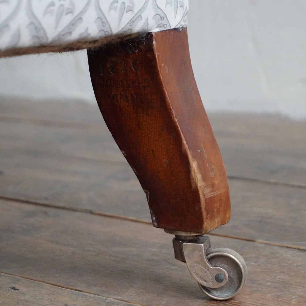 2. Having the number stamp to the rear leg 3433 398, with all castors having the Howard and sons ltd London stamp.