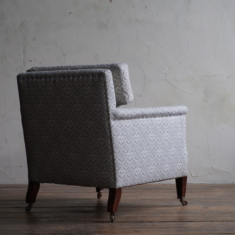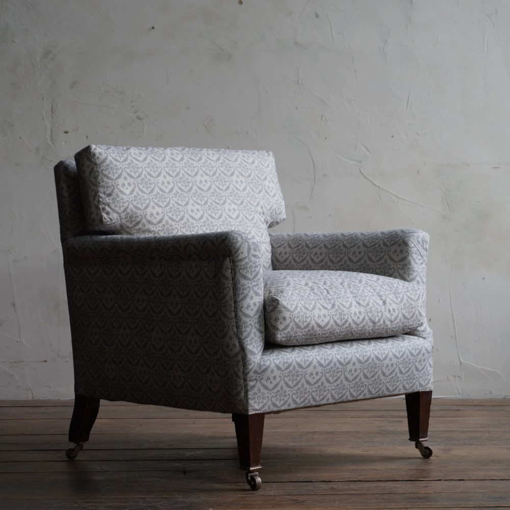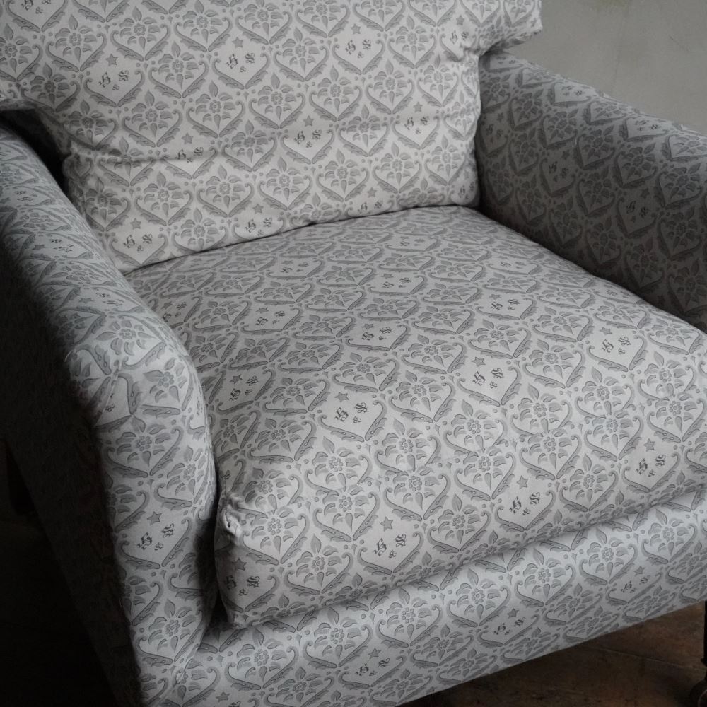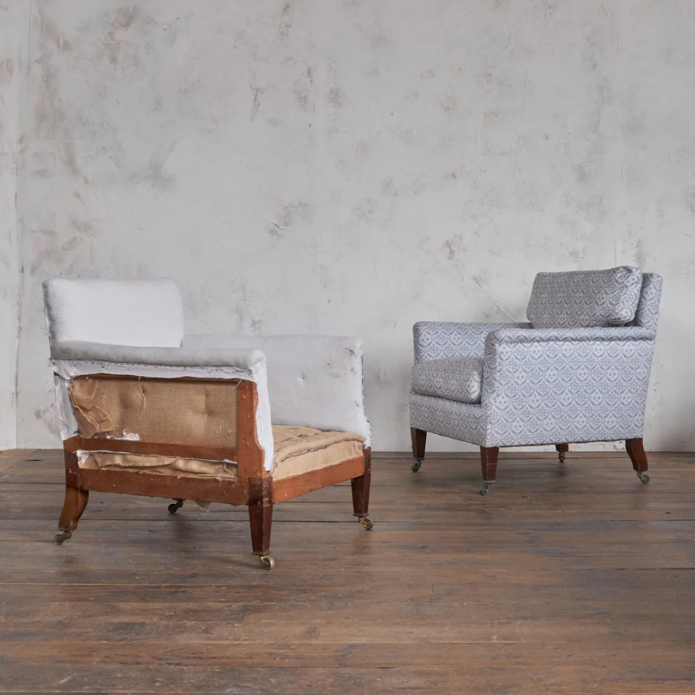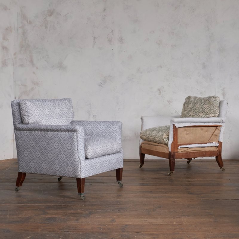 1 has been Newly Reupholstered in Grey H&S ticking with seat and back cushions. - the listed price includes the same restoration works to the second.