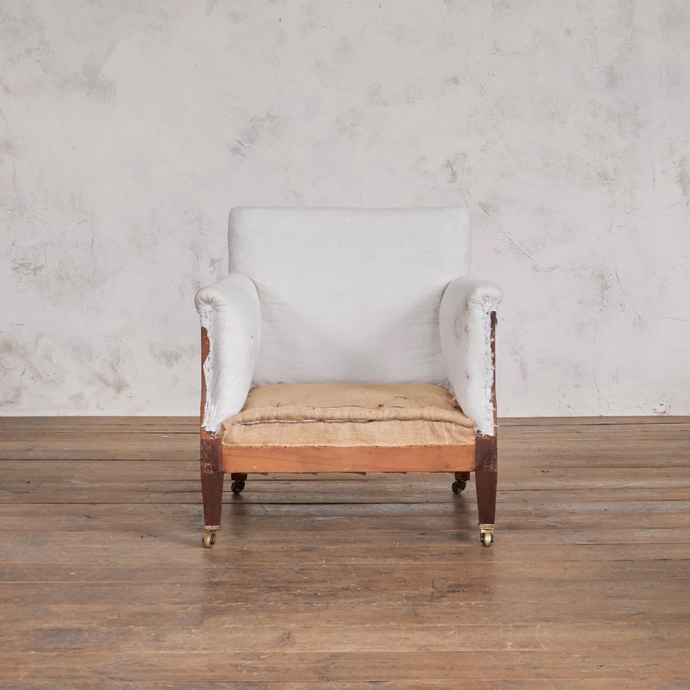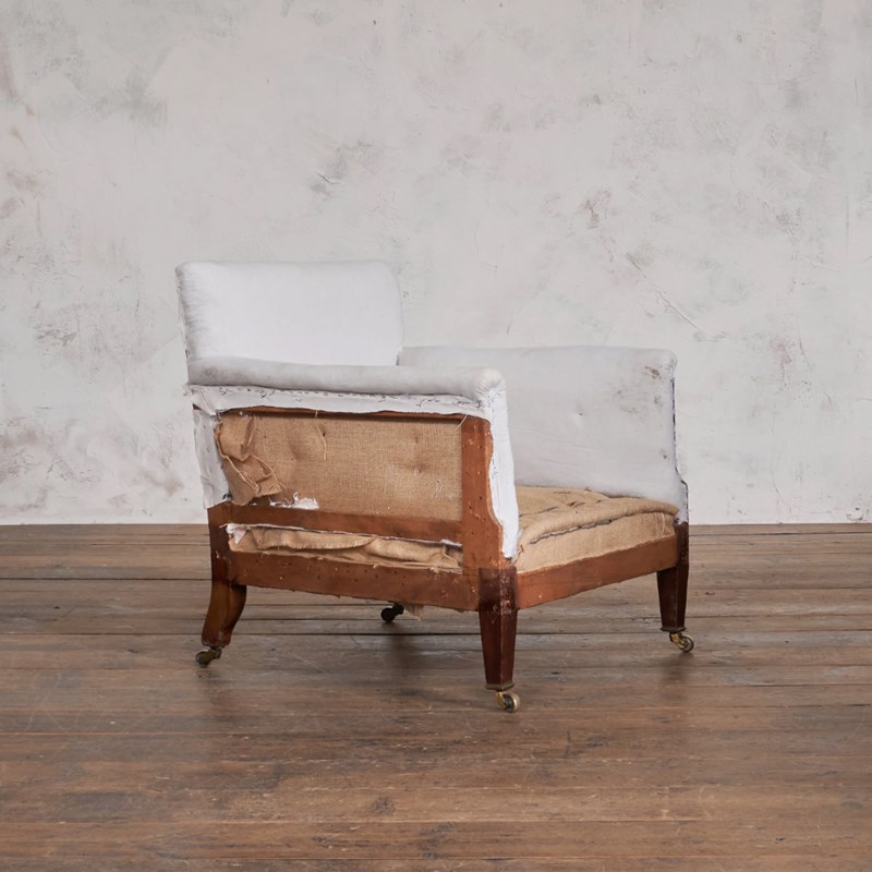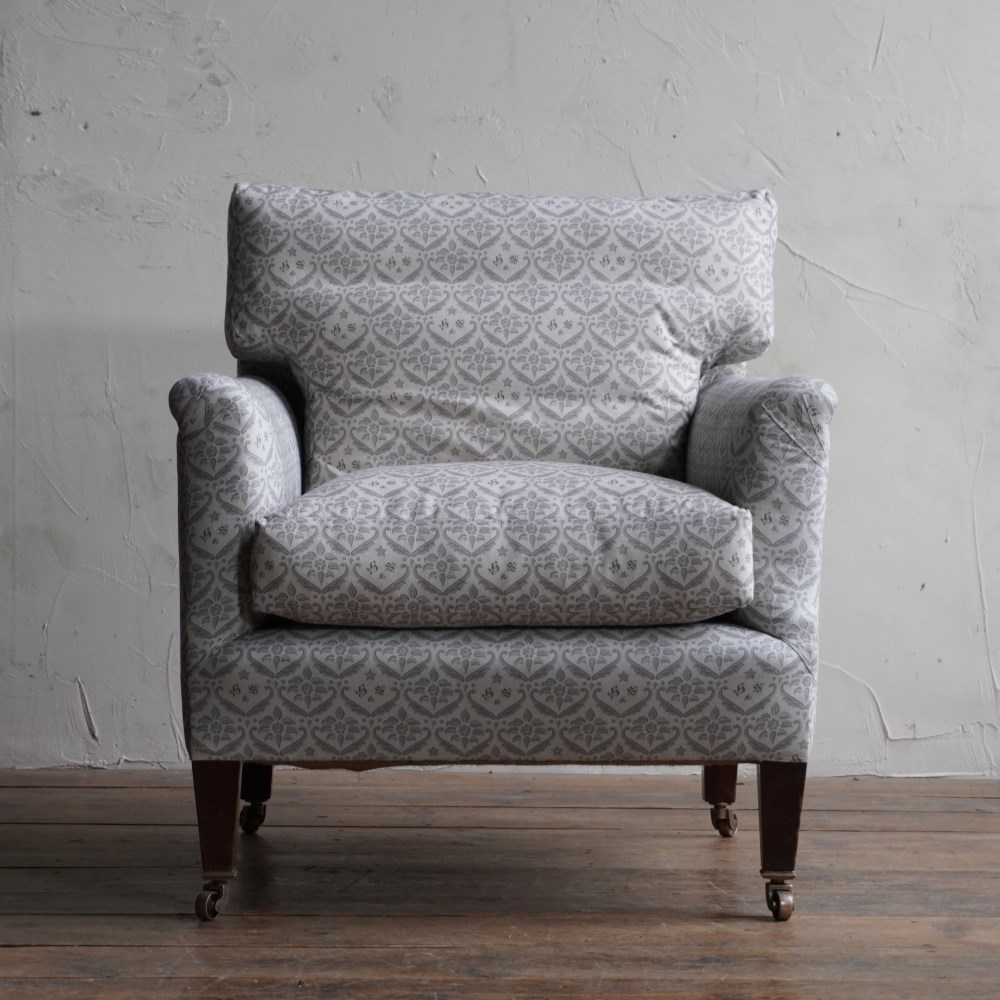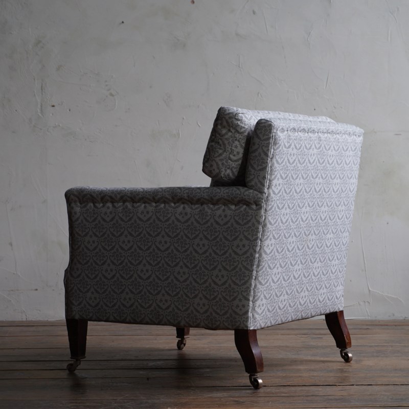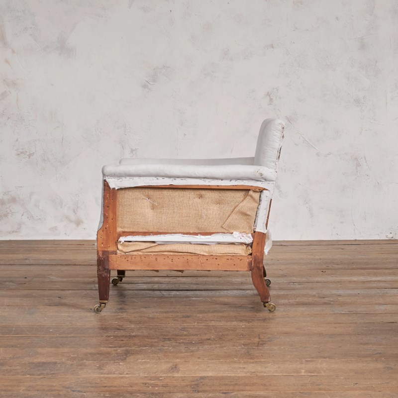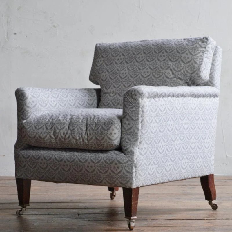1 has been Newly Reupholstered in Grey H&S ticking with seat and back cushions. - the listed price includes the same restoration works to the second.