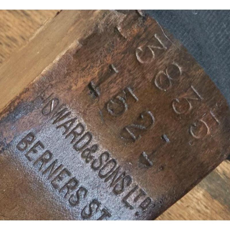 Fully stamped '13855 1521' Berners St leg, with Howard and Sons Ltd stamped castors.