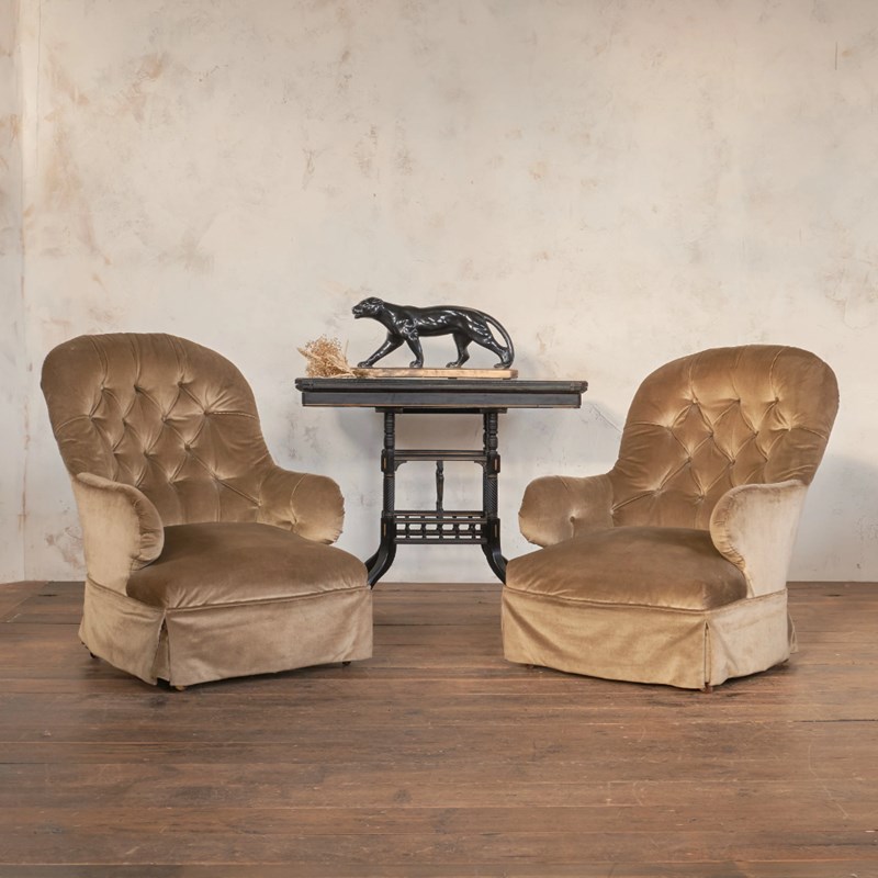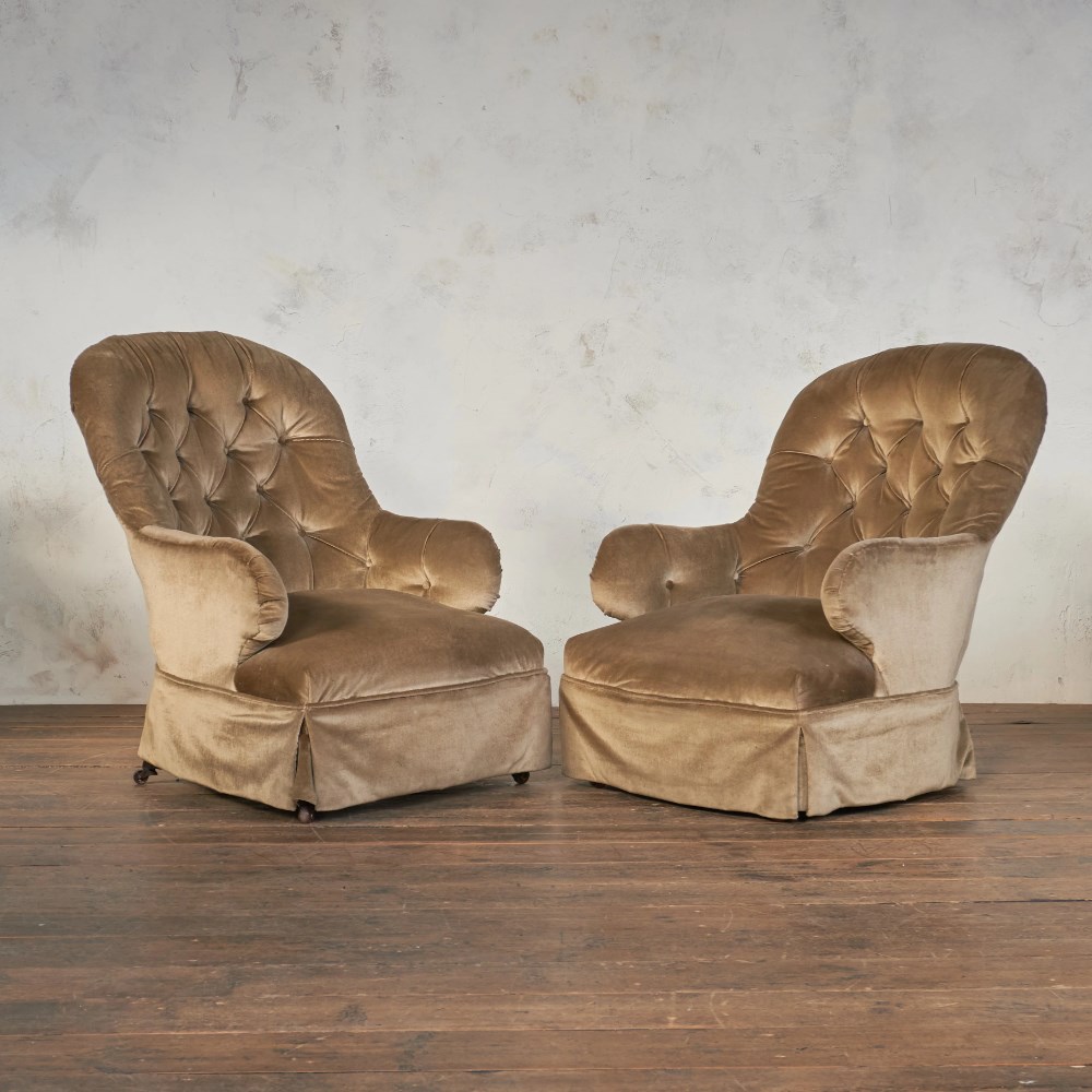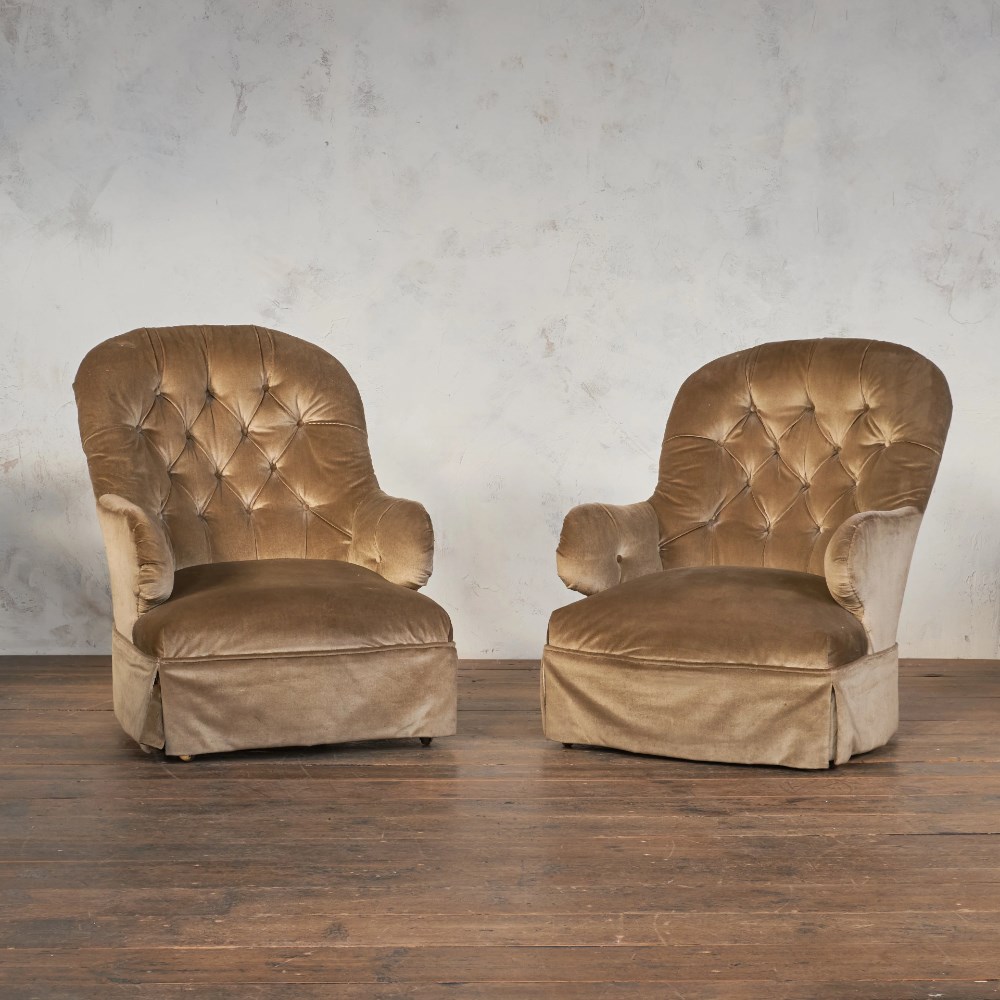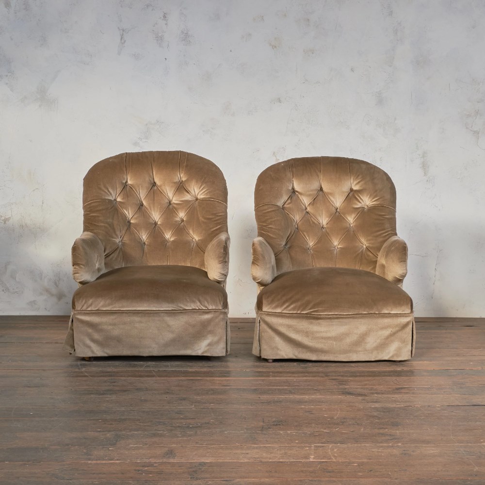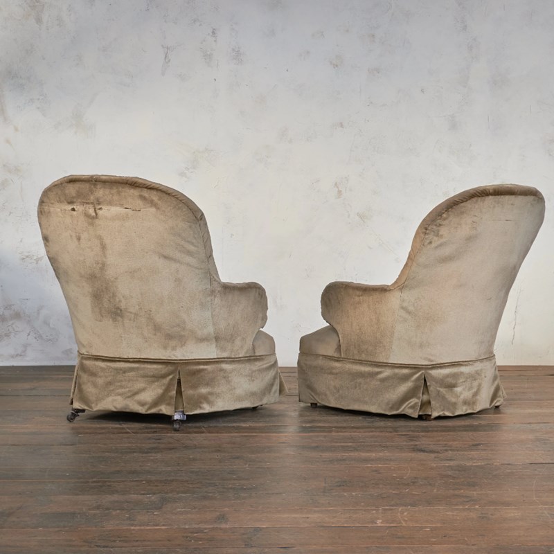 Pair of Antique Bedroom Chairs - taupe velvet.