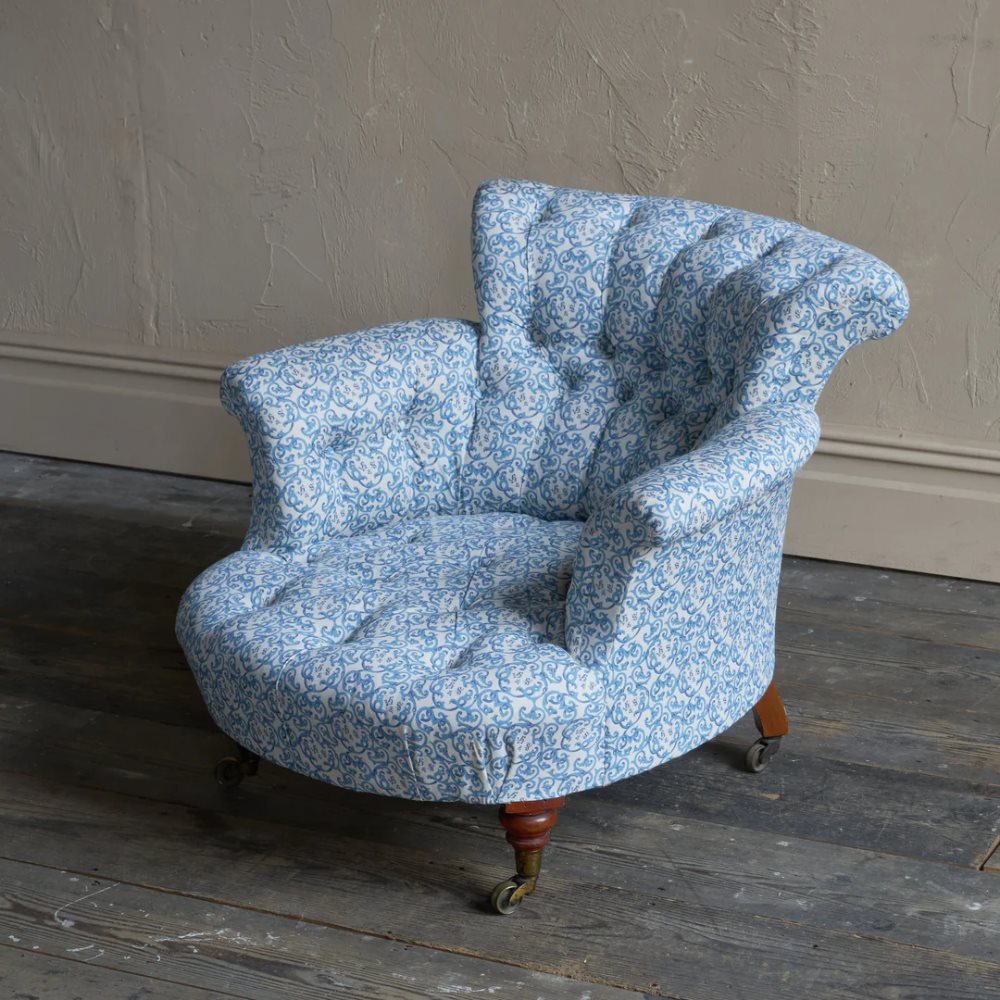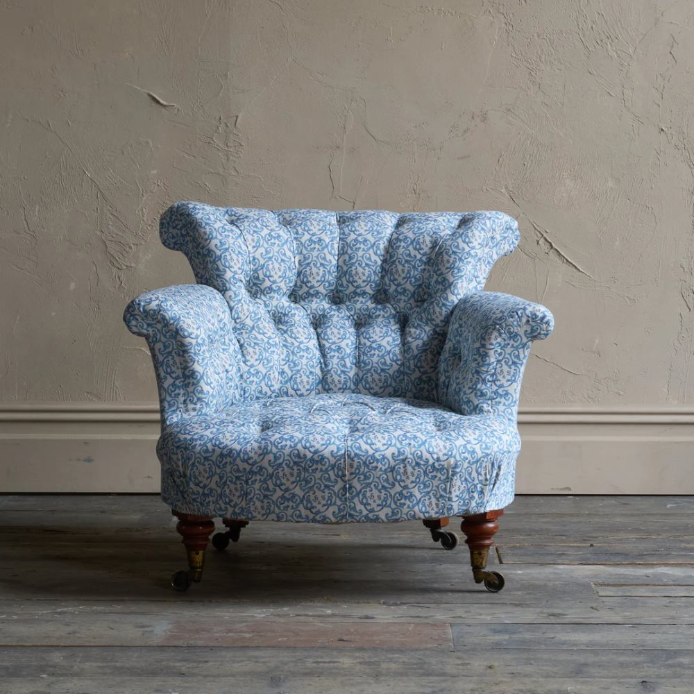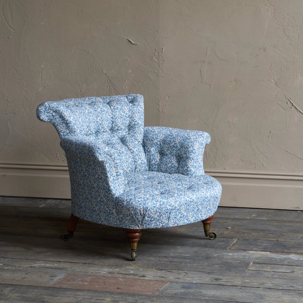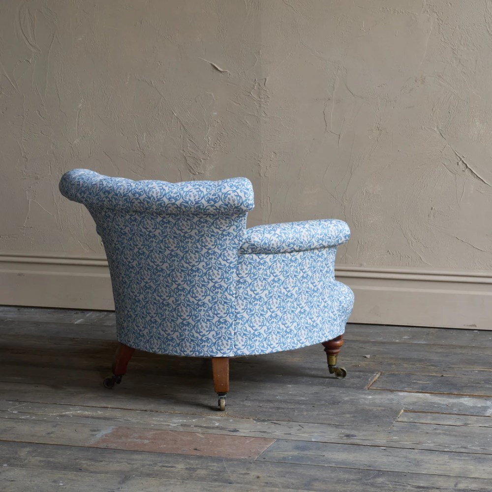 A matched pair of 19th century Howard & Sons armchairs, raised on Howard's uniquely turned walnut legs and retaining the original Cope & Collinson brass gilt castors.