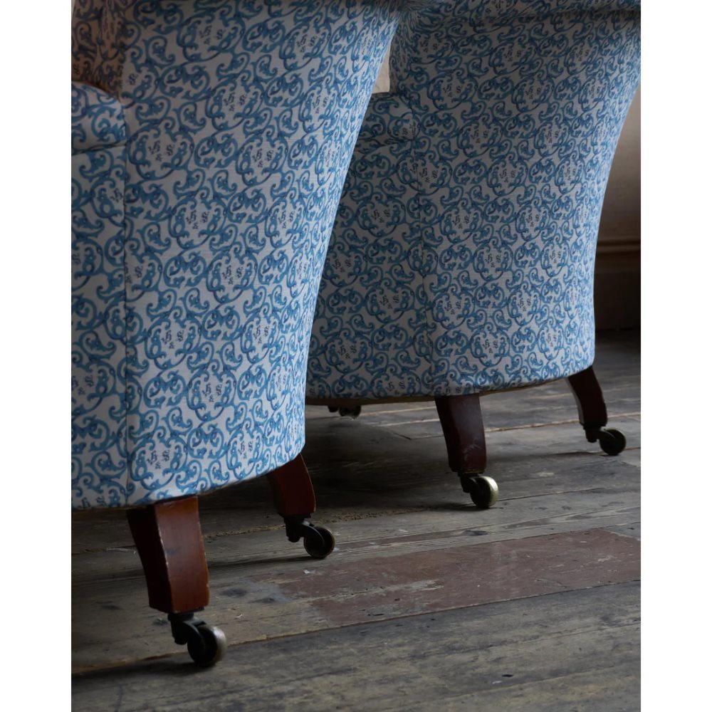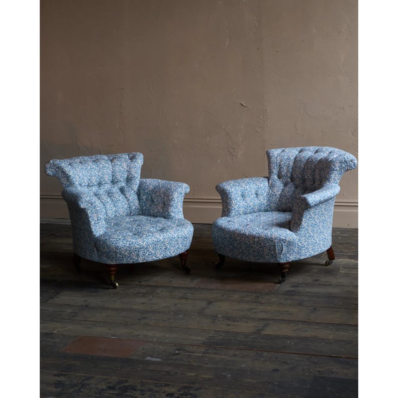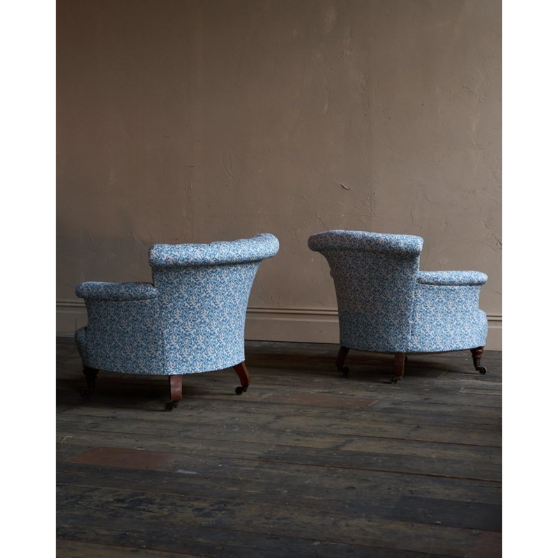 Pair Of Early Howard And Sons Armchairs - H&S Ticking