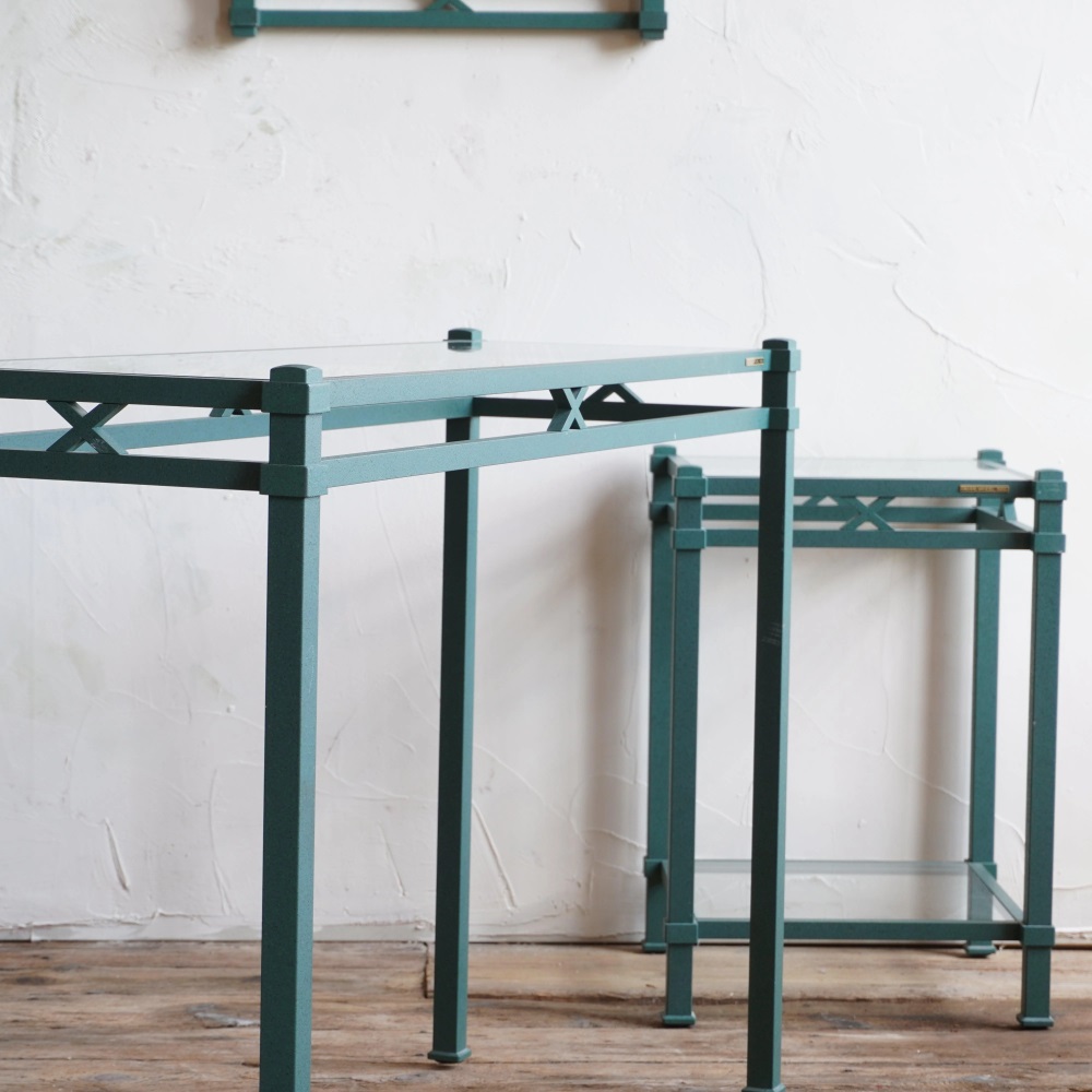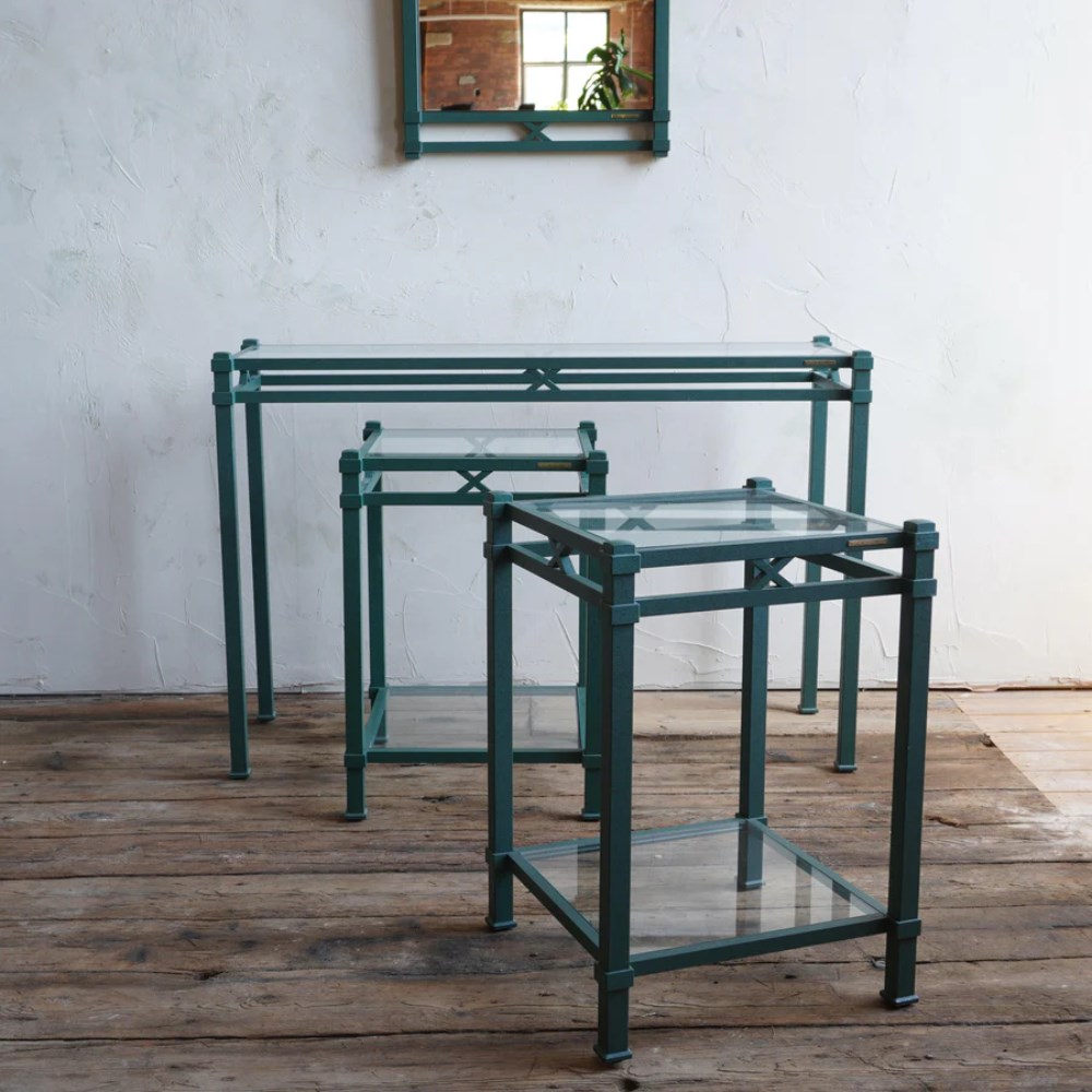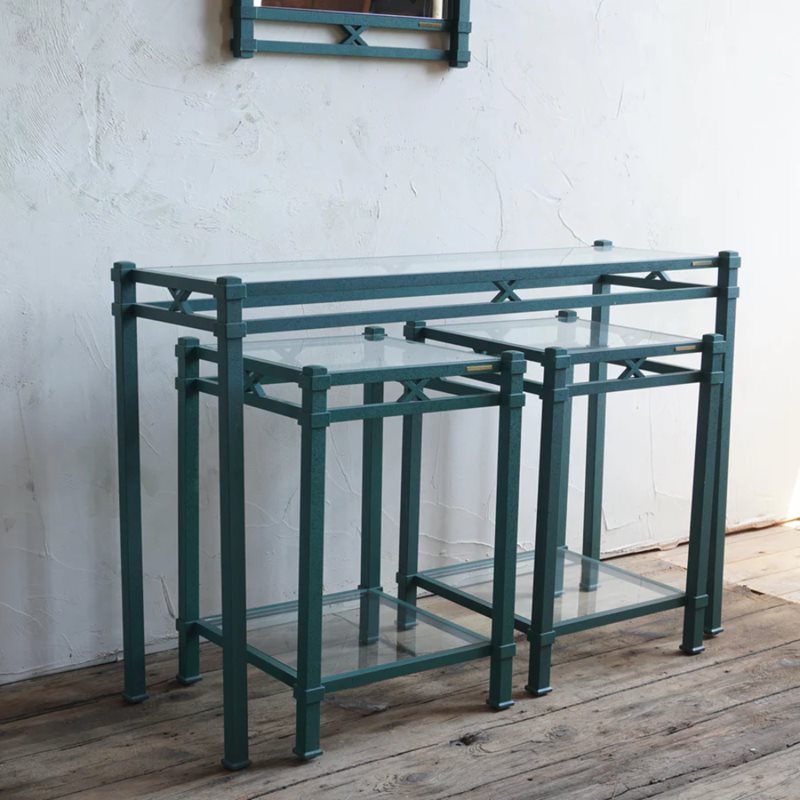 Comprimising of 4 pieces: 1x Console Table, 2x Tall Side Tables, 1x Wall Mirror