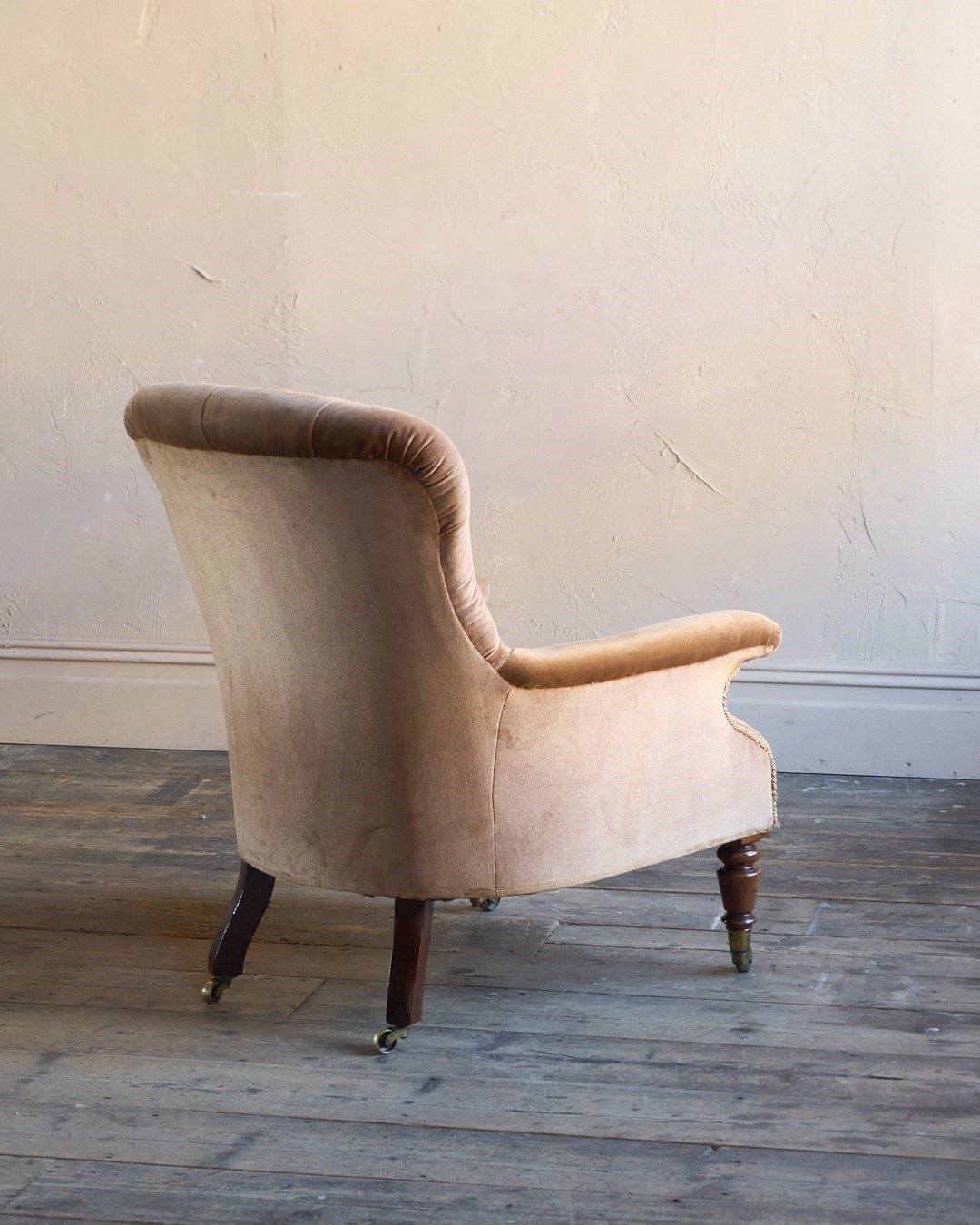Gilt brass castors to the front legs and period replacements to the back legs.