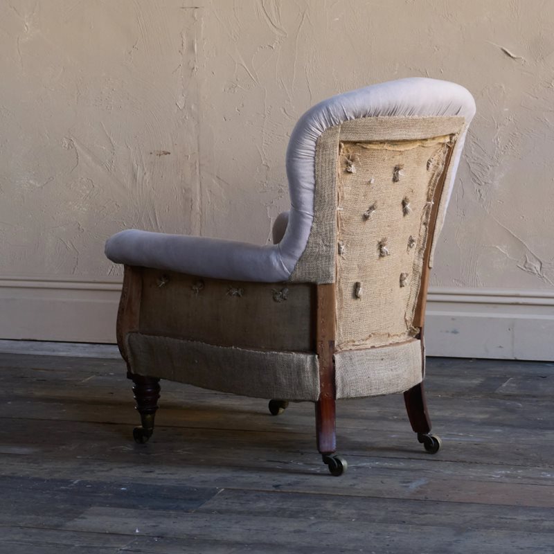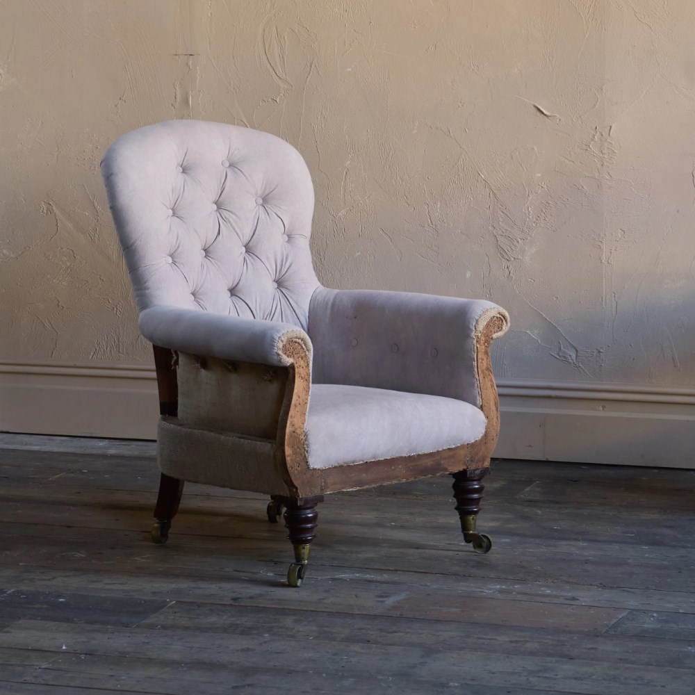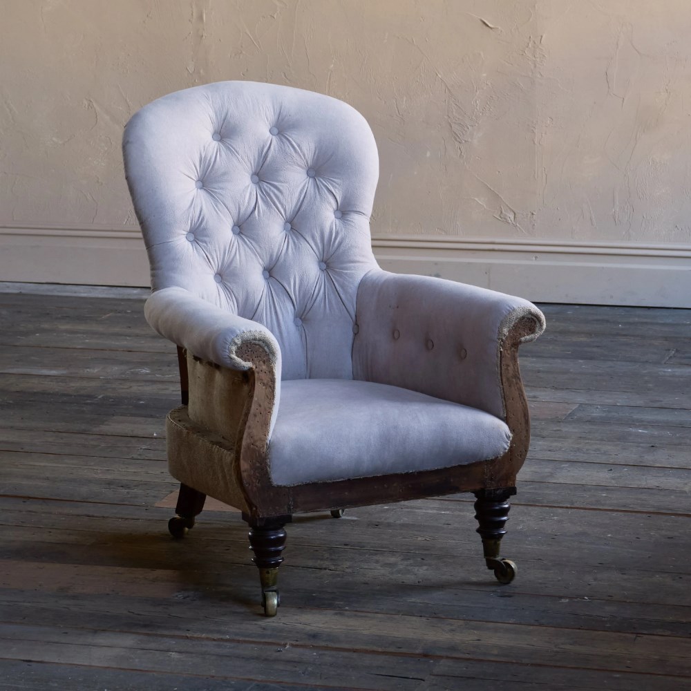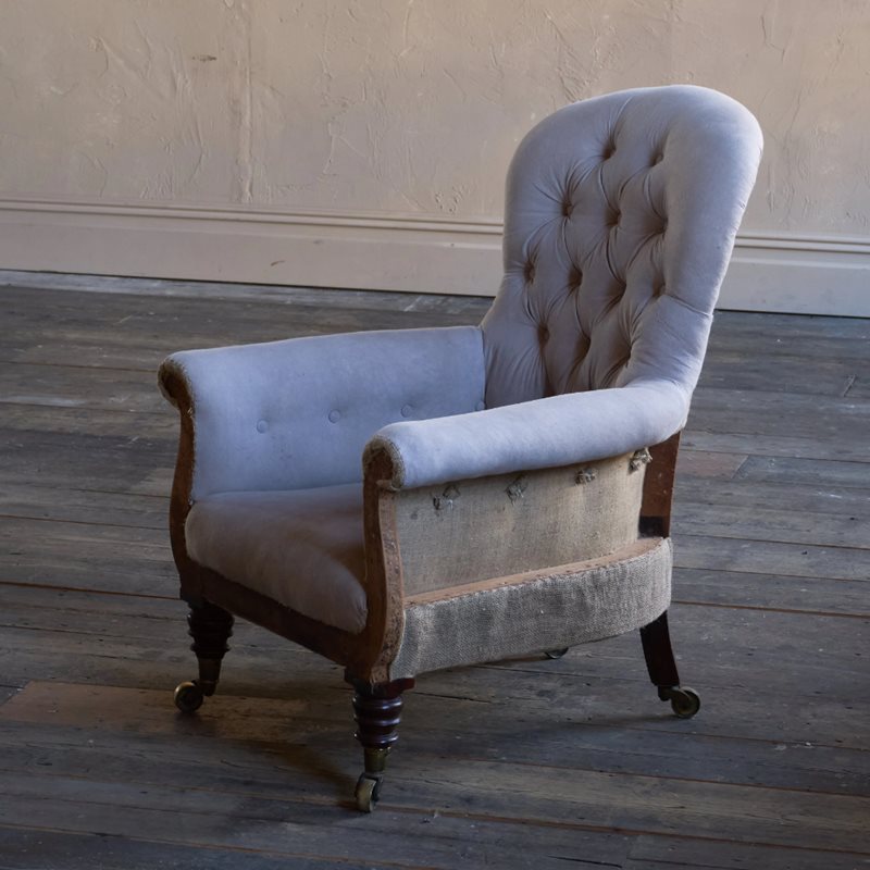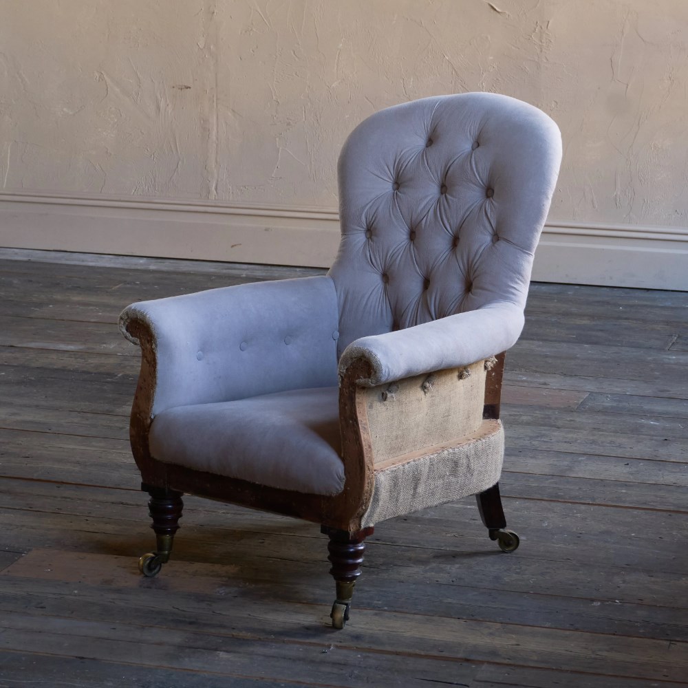 Now fully restored including a traditional upholstery rebuild, and lined with a hand-dyed cotton fabric.