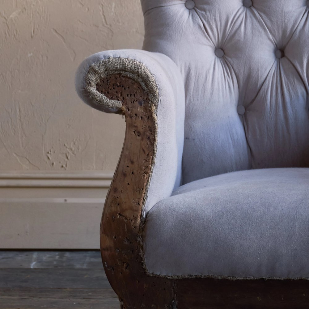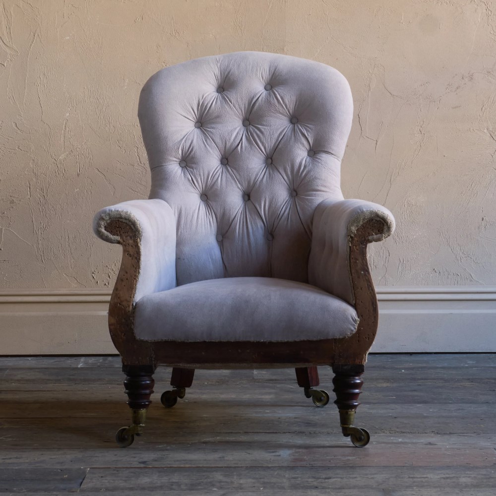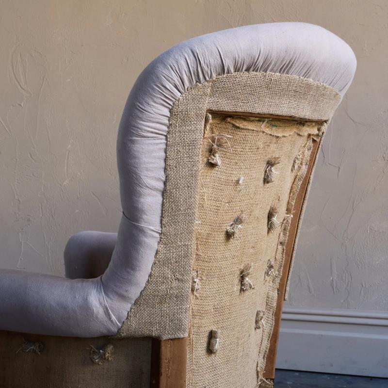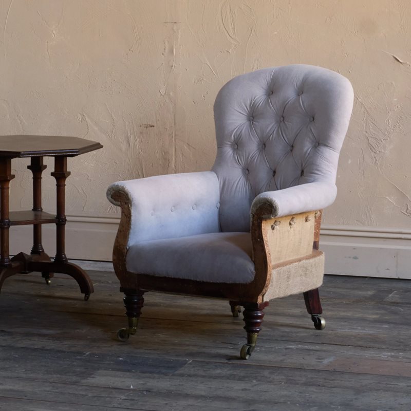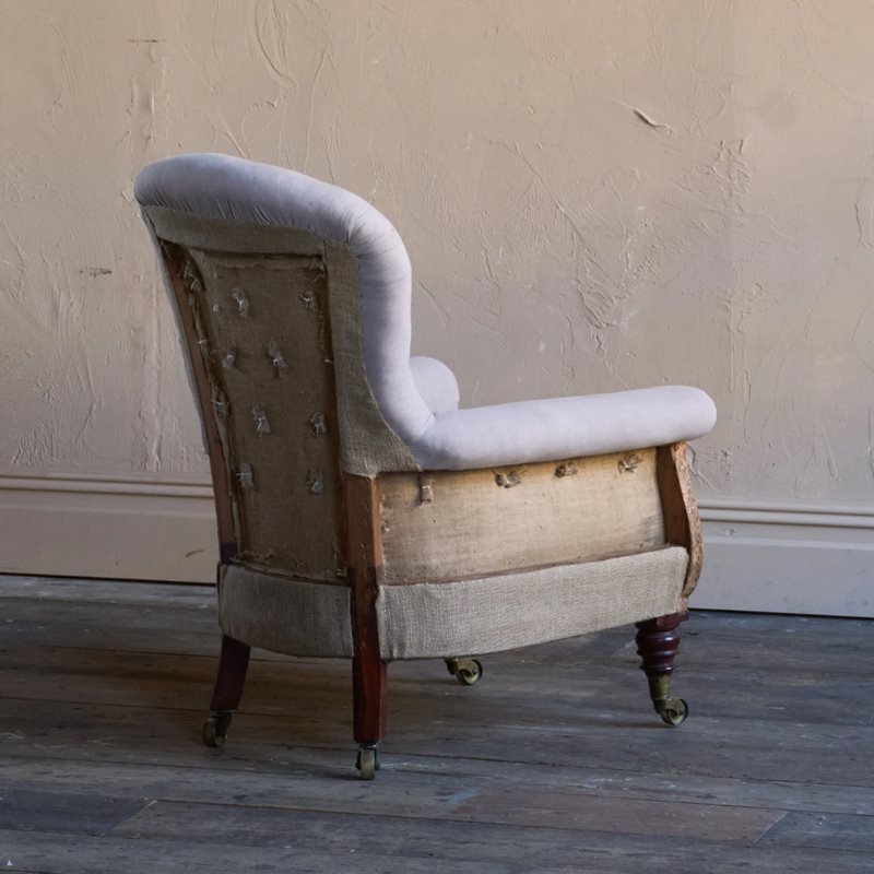 Now fully restored including a traditional upholstery rebuild, and lined with a hand-dyed cotton fabric.