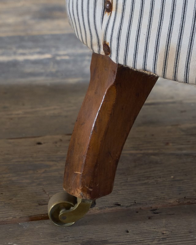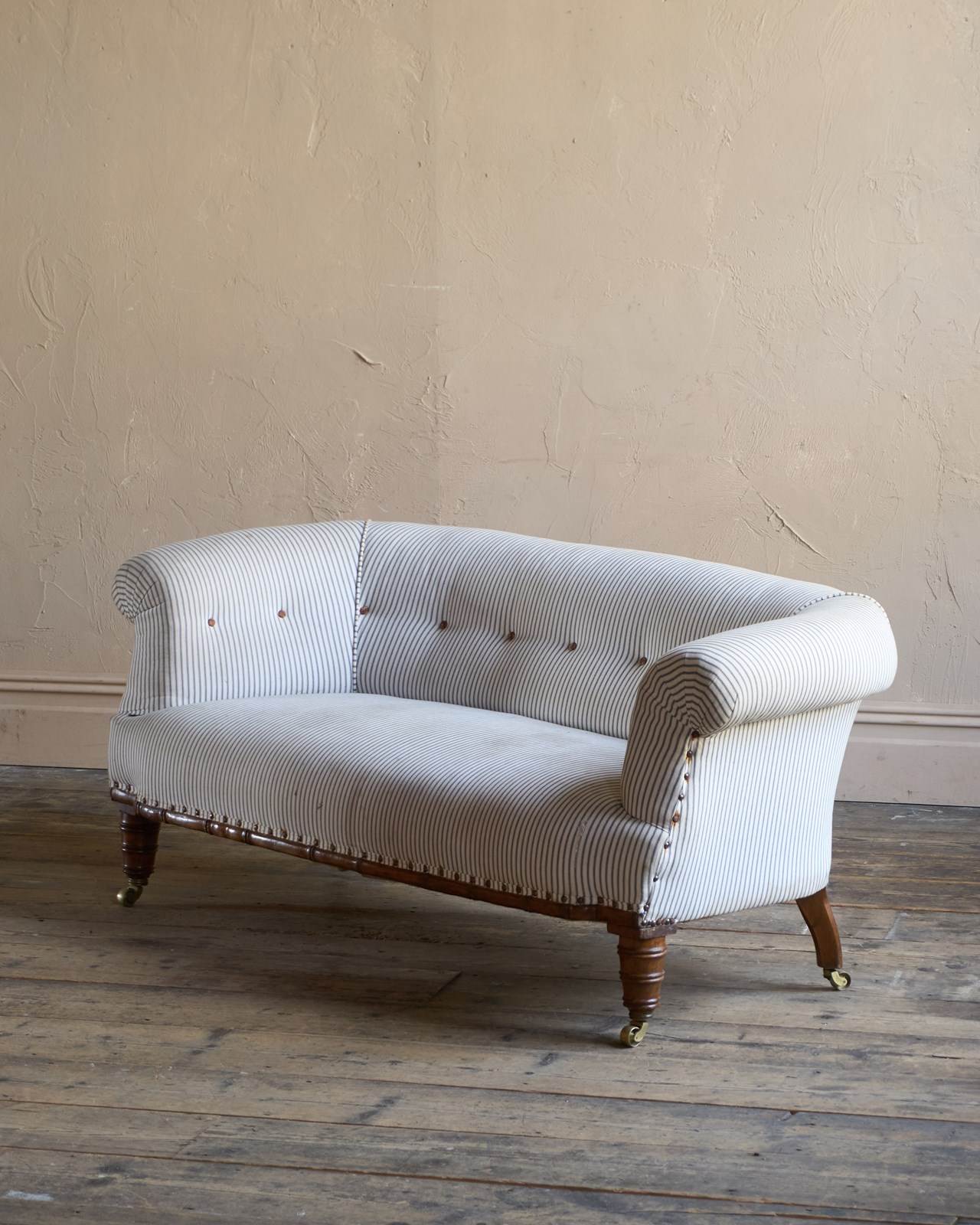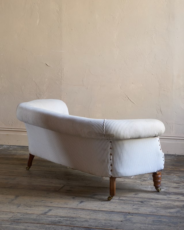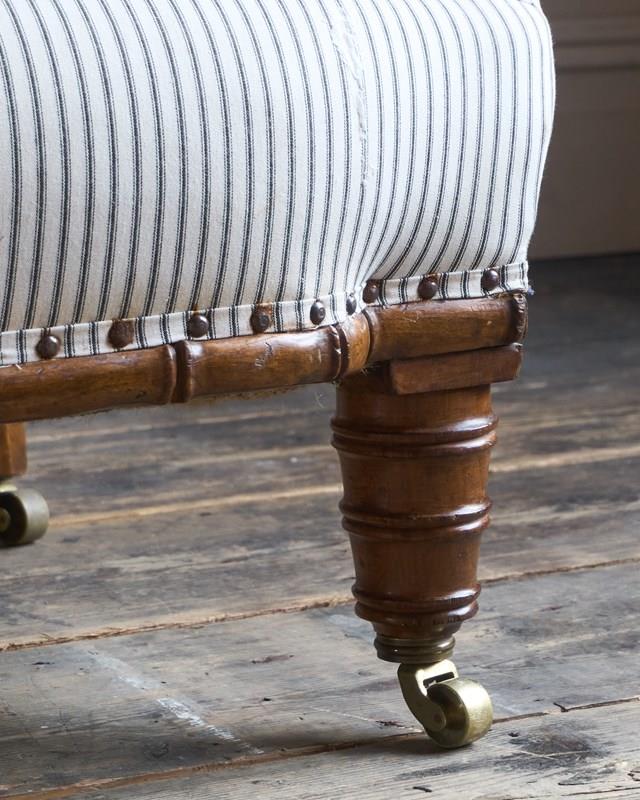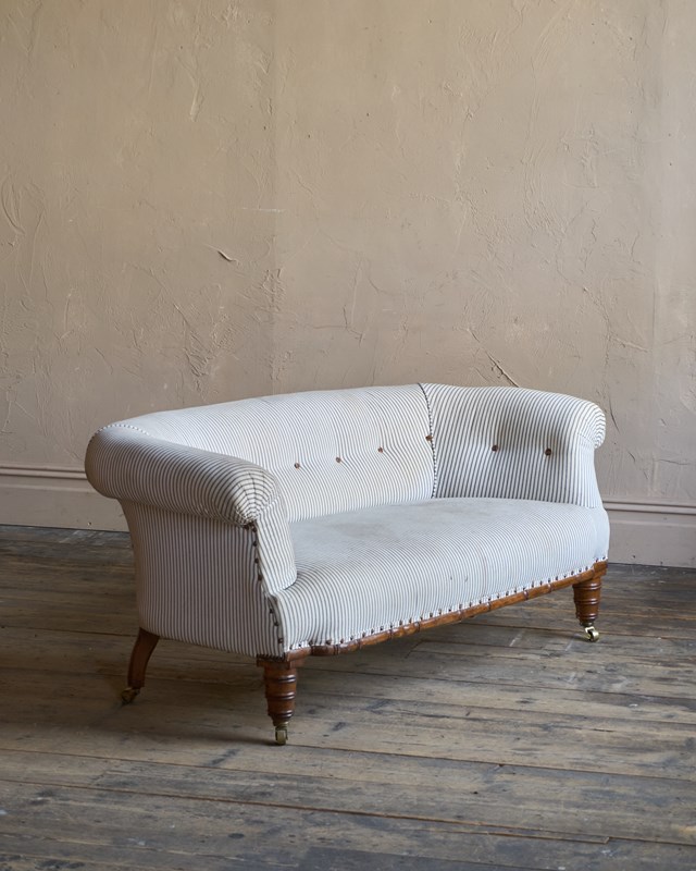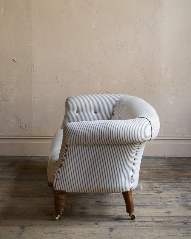 Traditionally upholstered with a sprung seat and horsehair fillings.