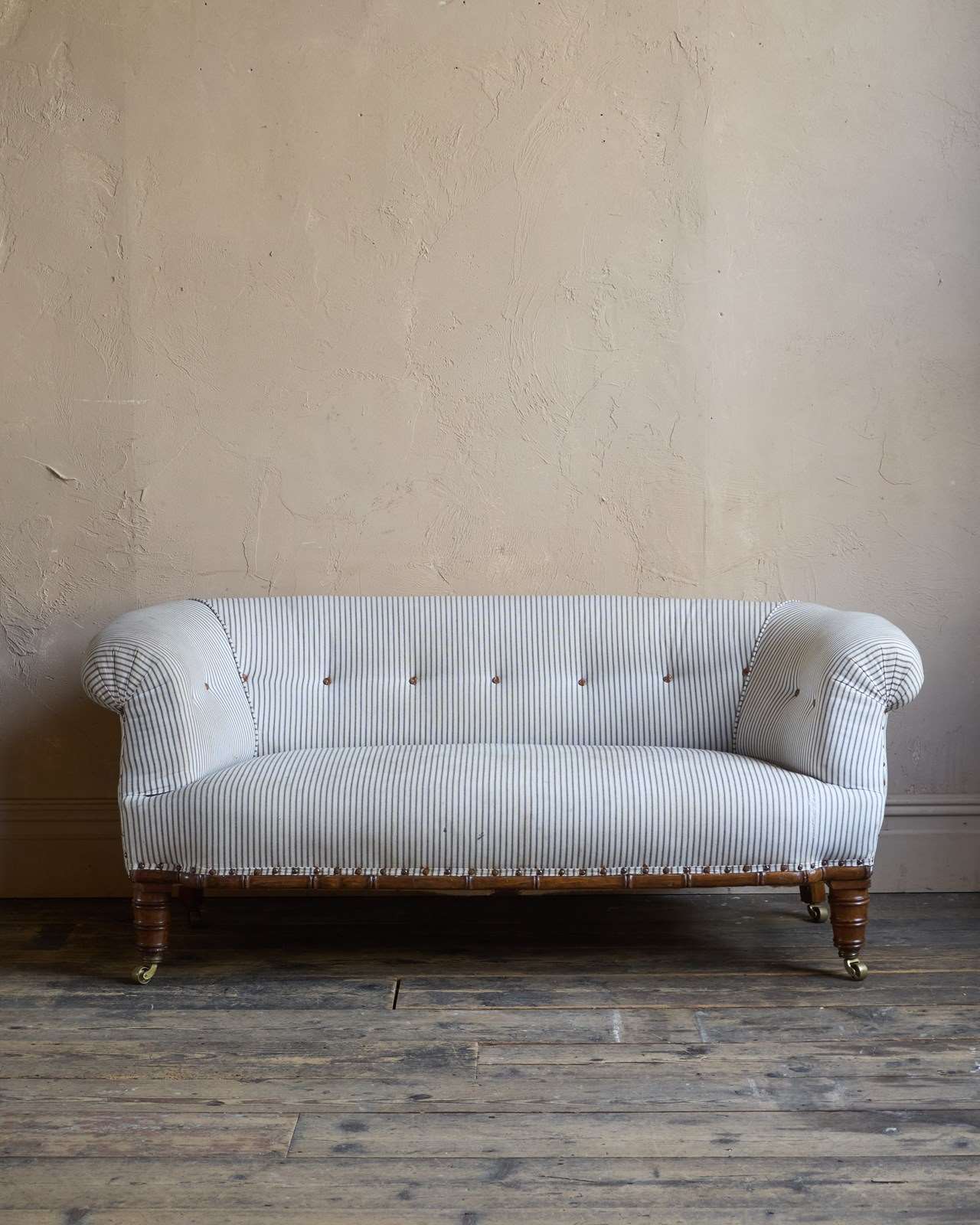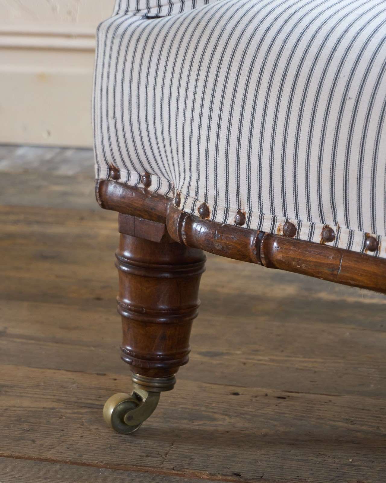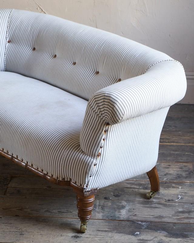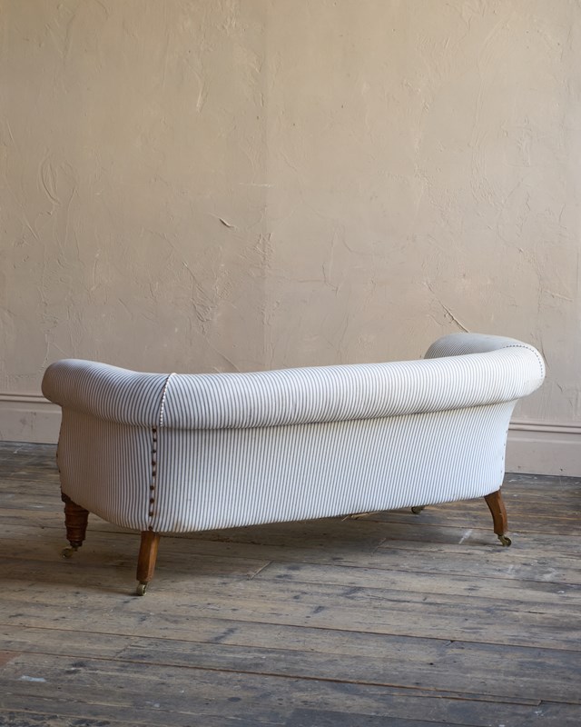 Traditionally upholstered with a sprung seat and horsehair fillings.