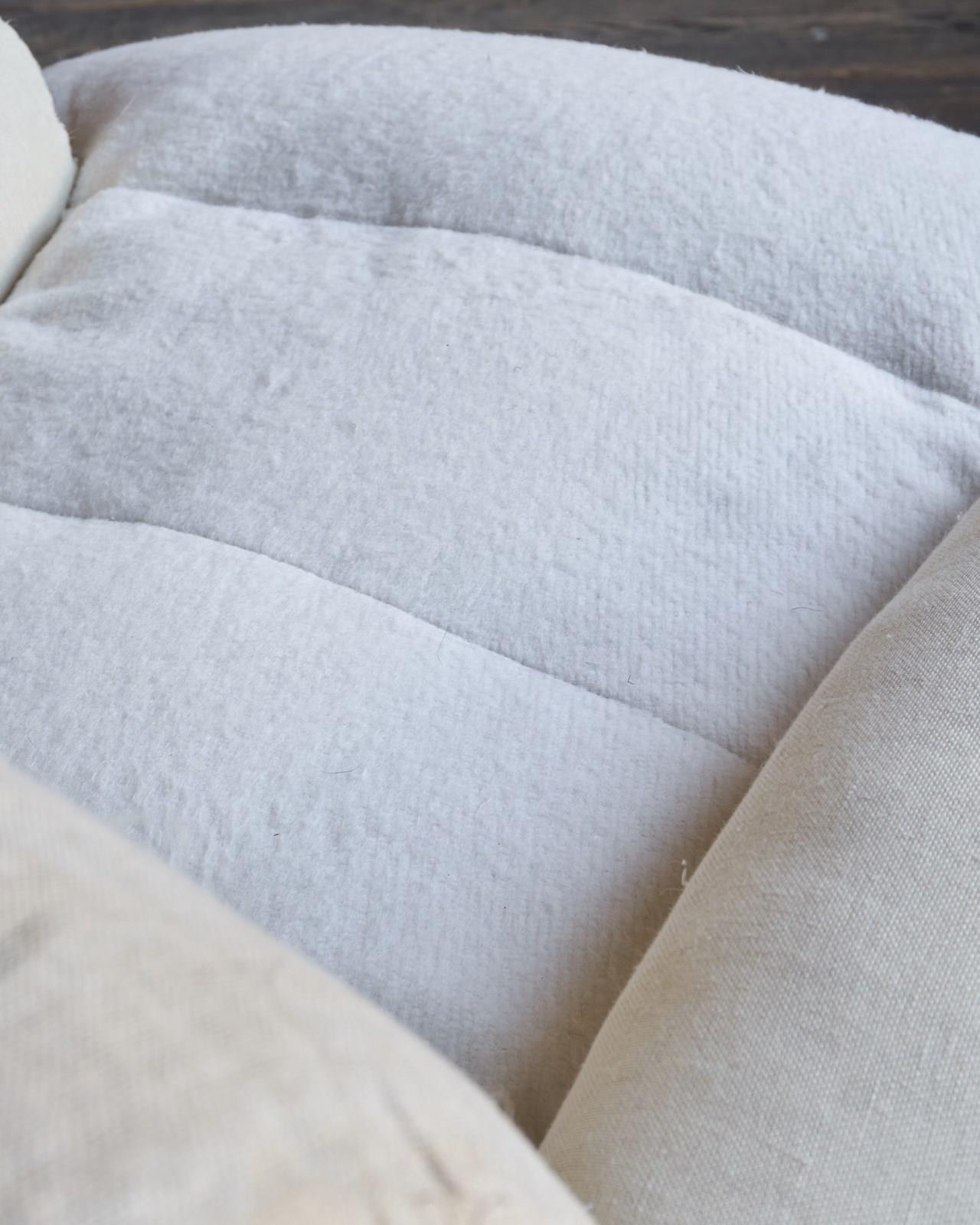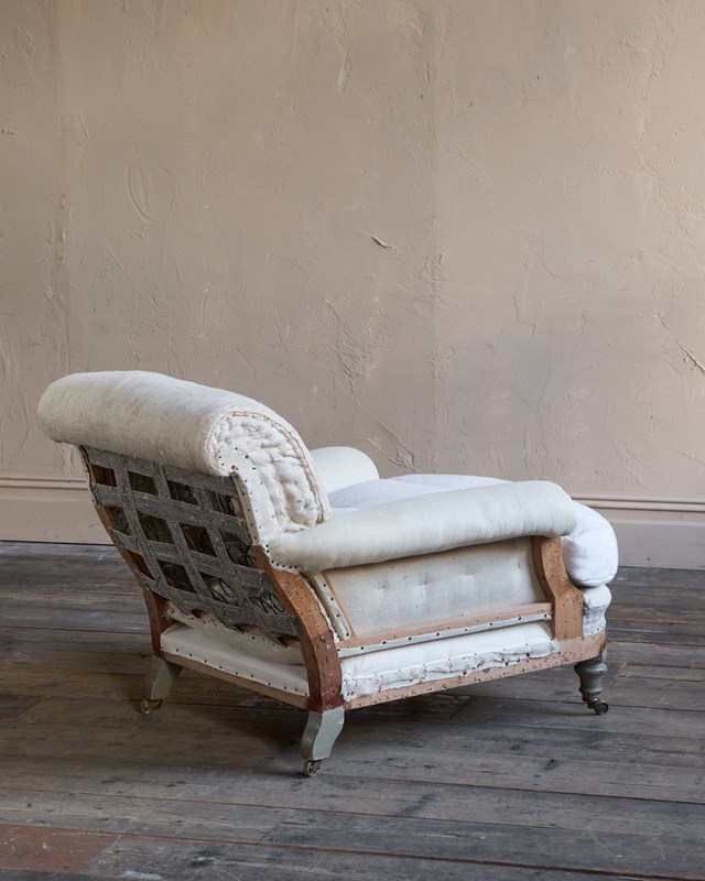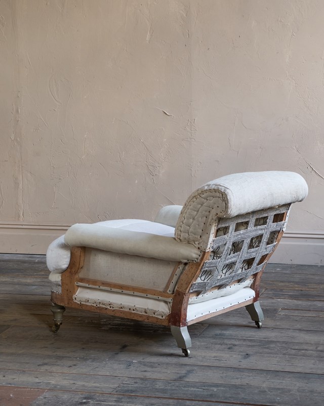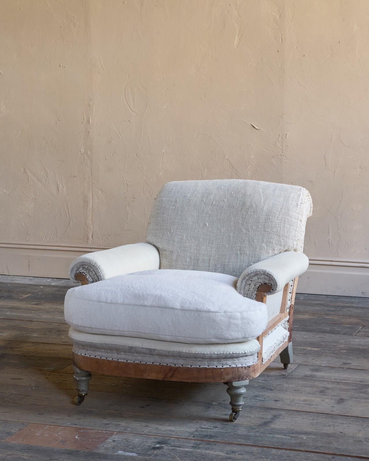 Now sympathetically restored to its undergarments, most of which is original traditional upholstery of an unusually high standard with ivory coloured horse hair, fine linen hessian and what I believe is fustian a high quality fabric with unusually deep and fur like pile.