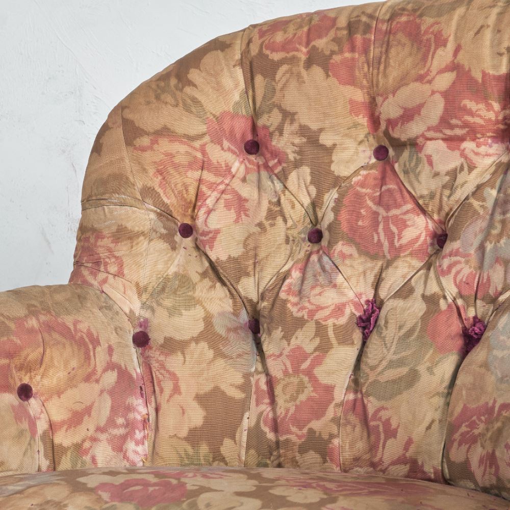 Buttoned back, arms and front edge.