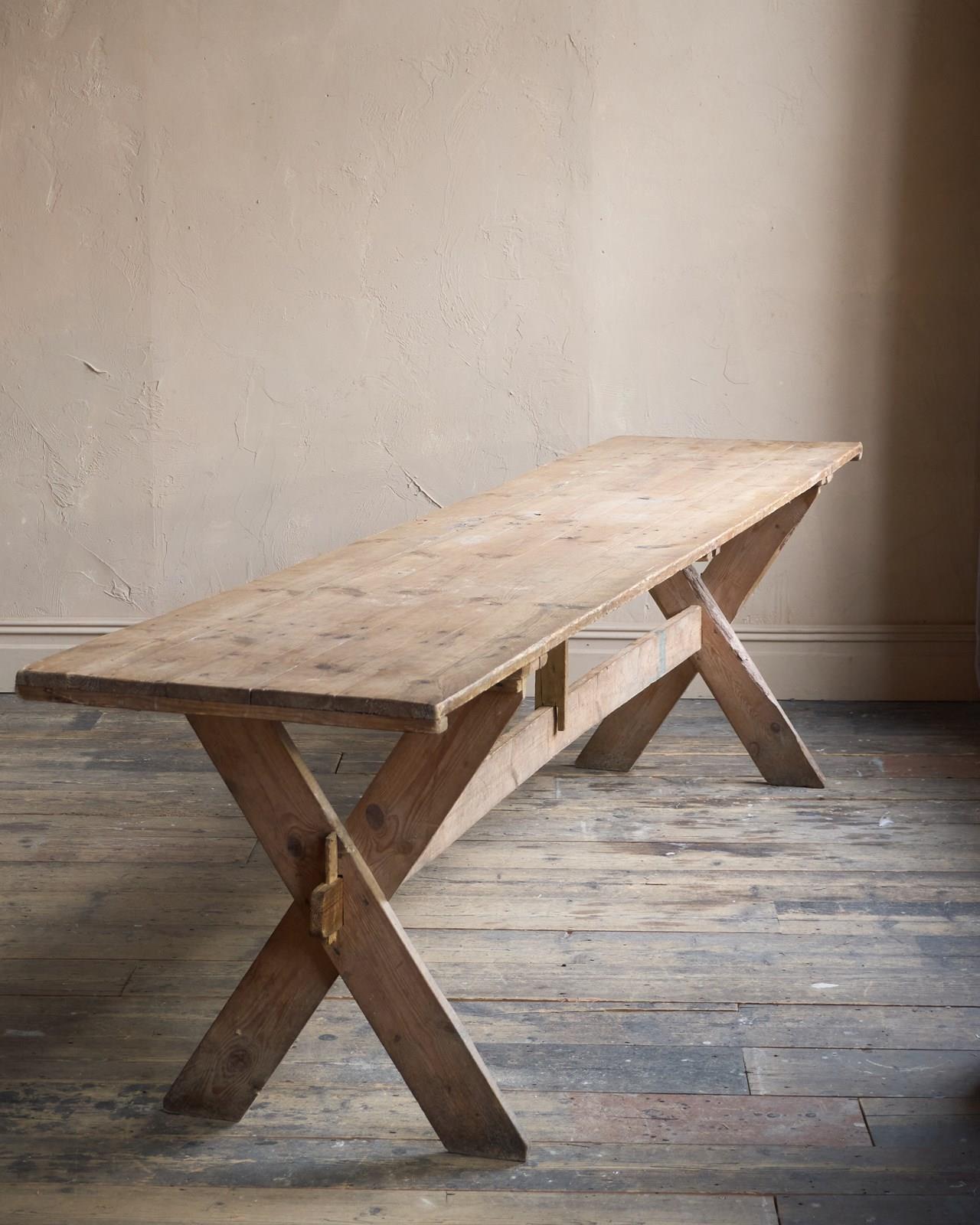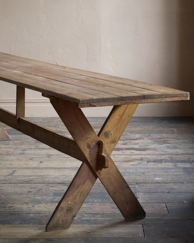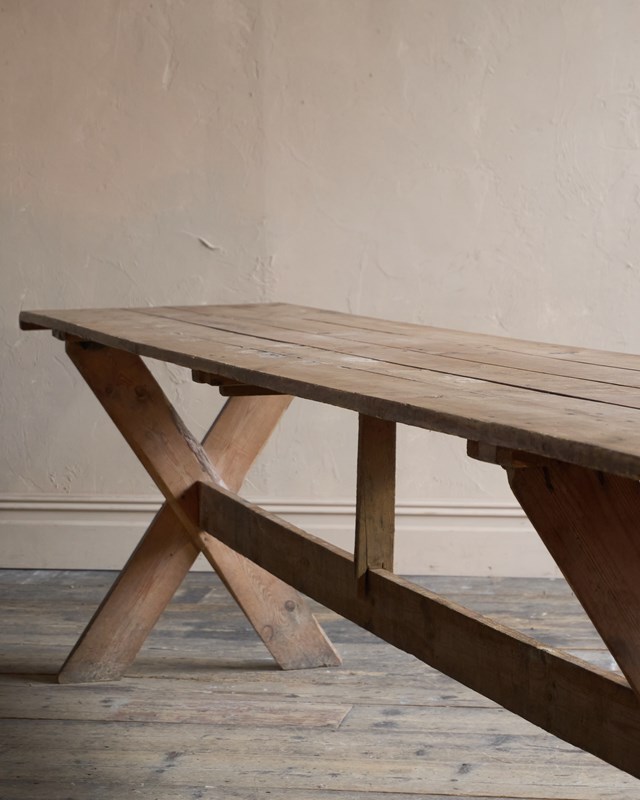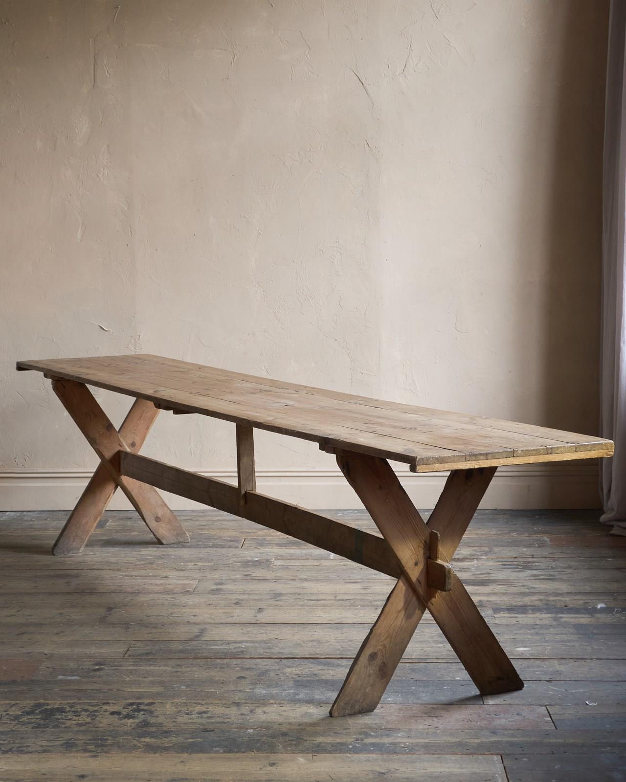 Weathered Trestle Dining Table in the Swedish style - X-leg 'Tavern' Table