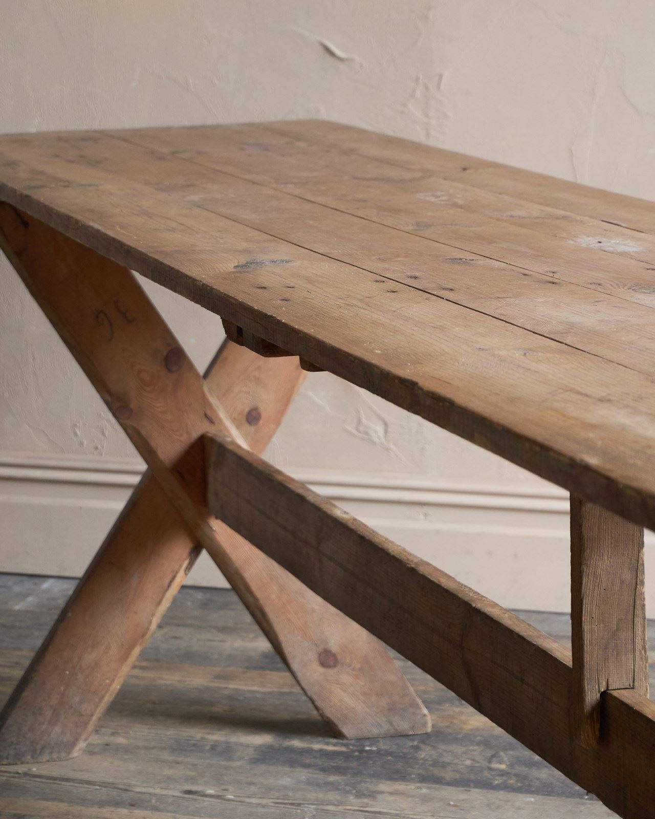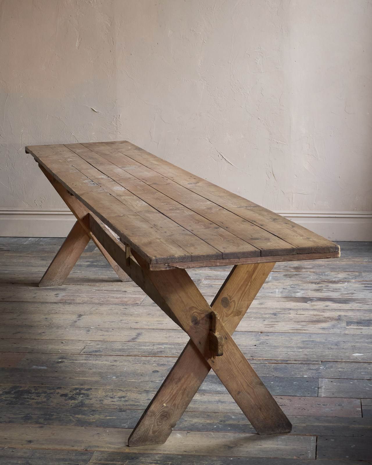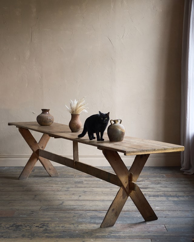 Weathered Trestle Dining Table in the Swedish style - X-leg 'Tavern' Table