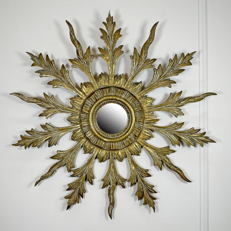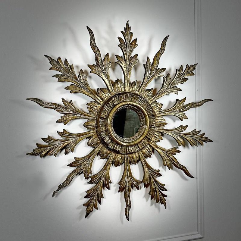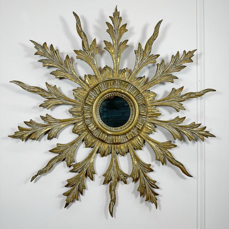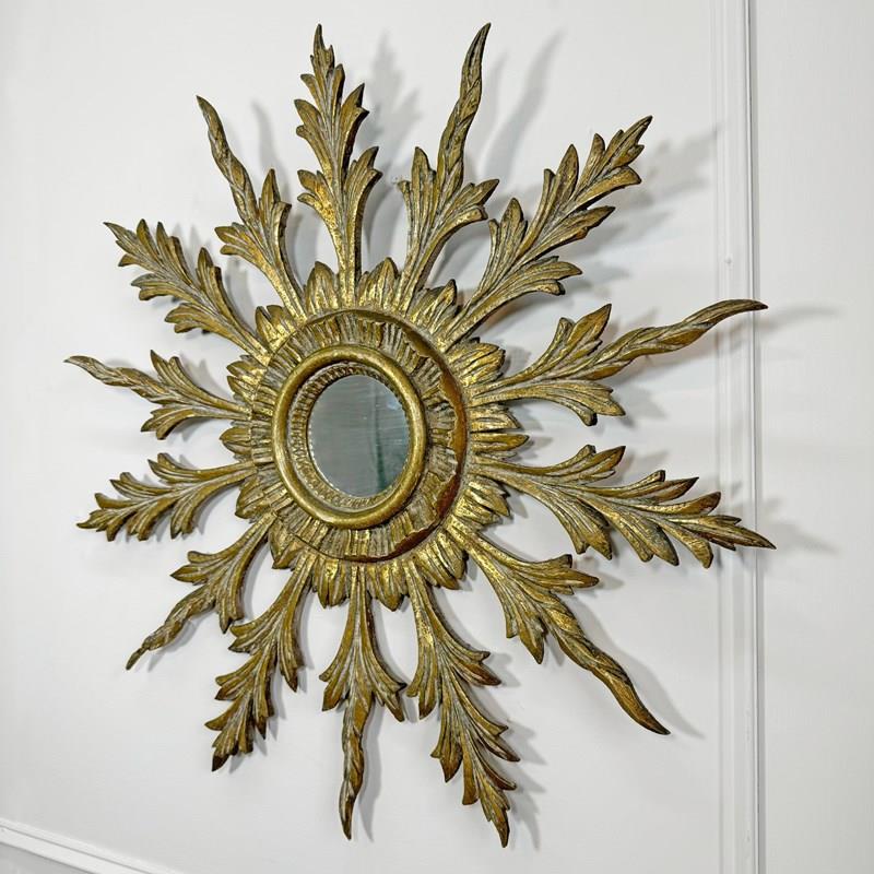 Antique Sunburst Mirror Giltwood 1920'S