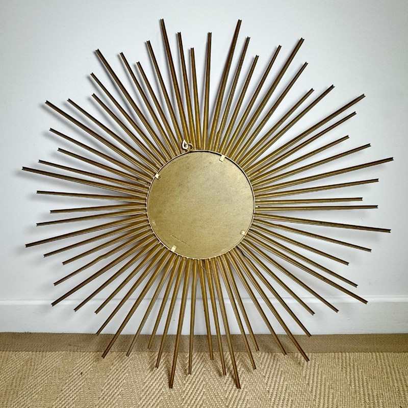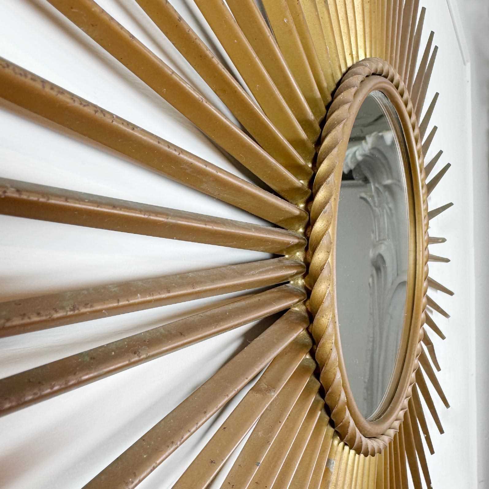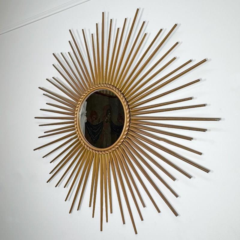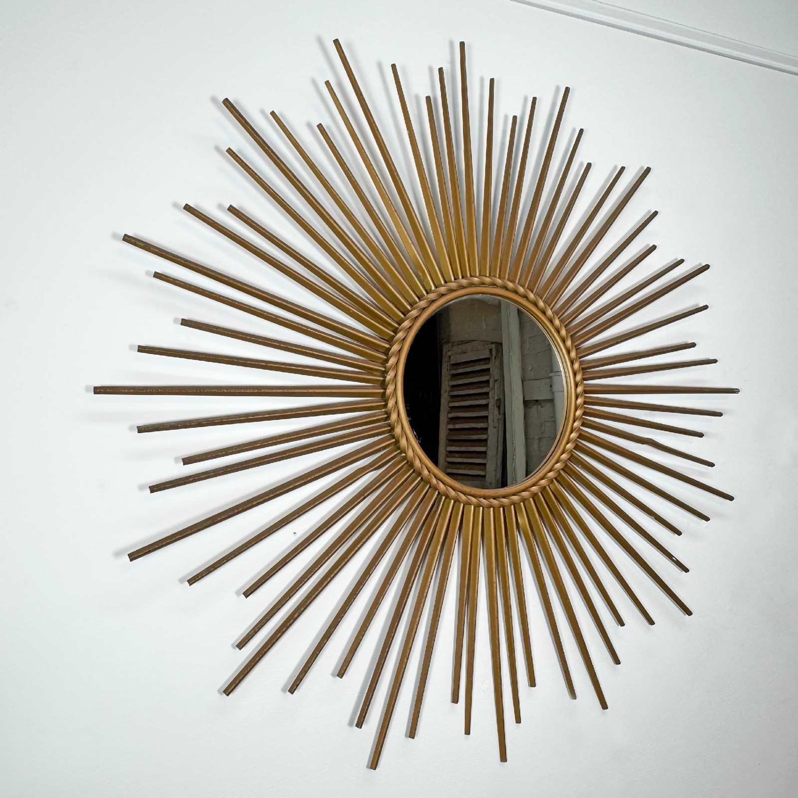Large vintage Chaty Vallauris sunburst mirror, France circa 1950, as is the norm with these mirrors, couple of tiny ray kinks, but barely noticeable.