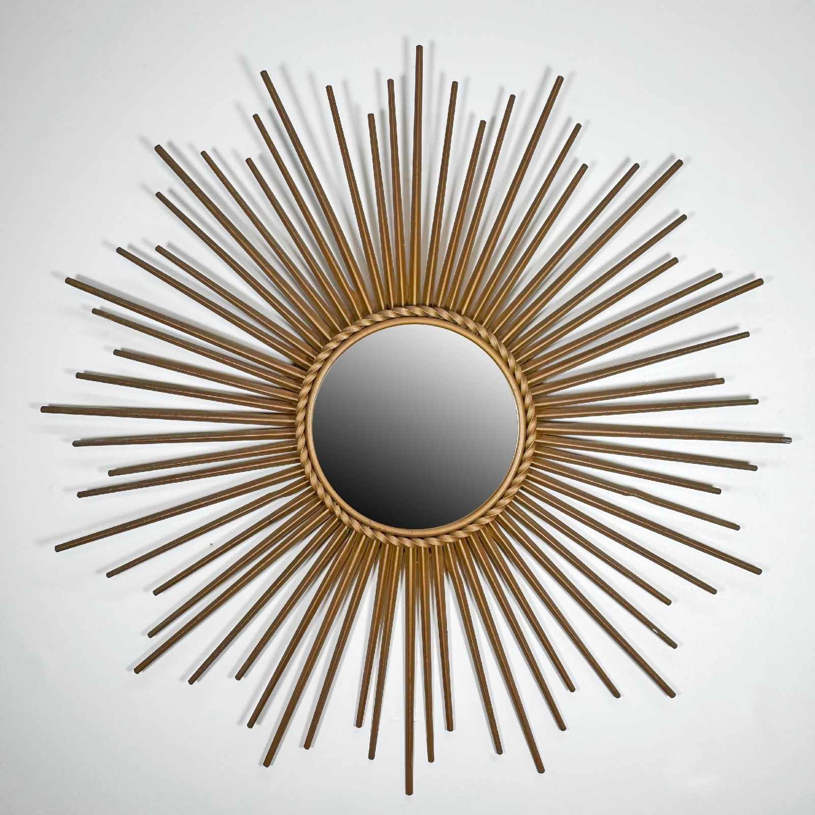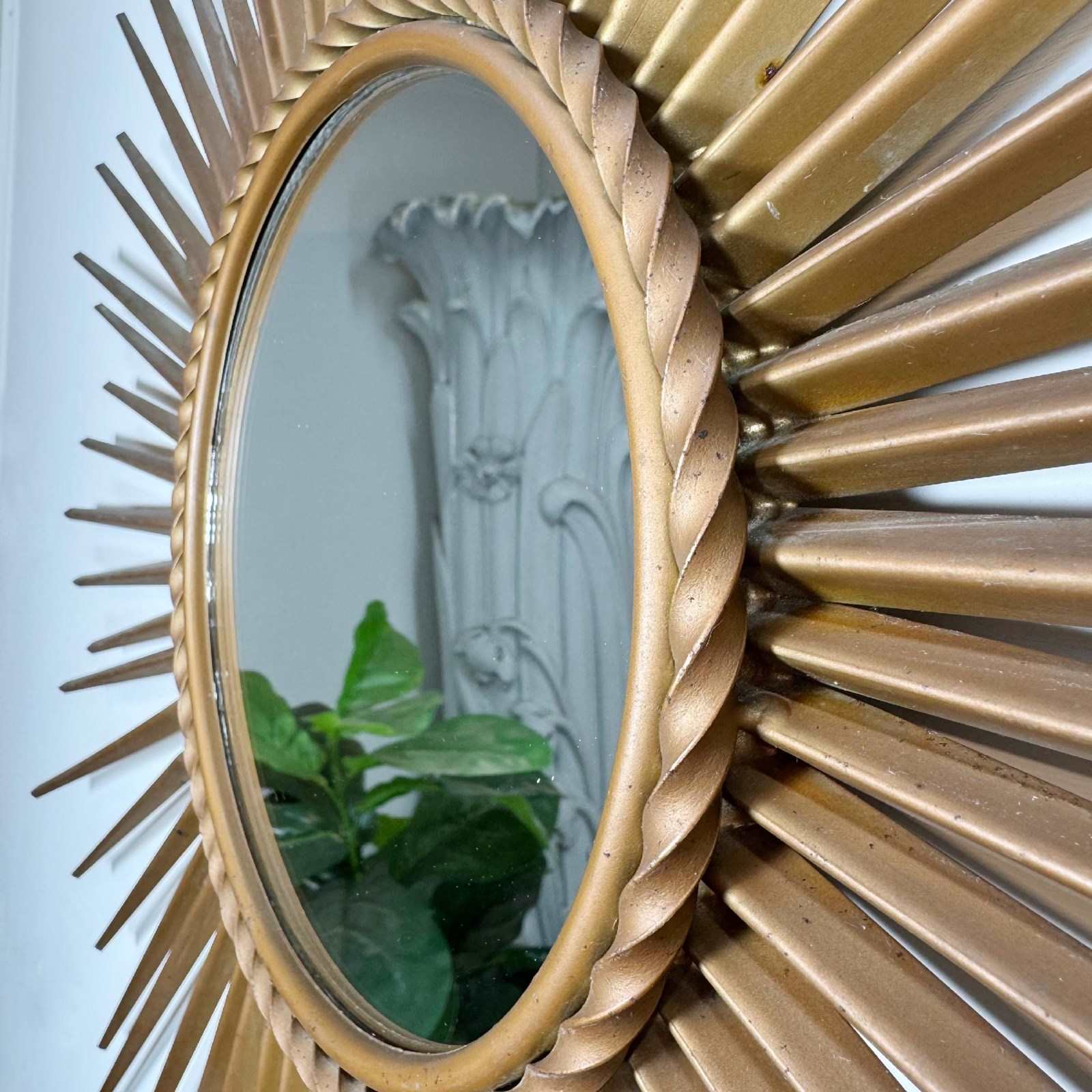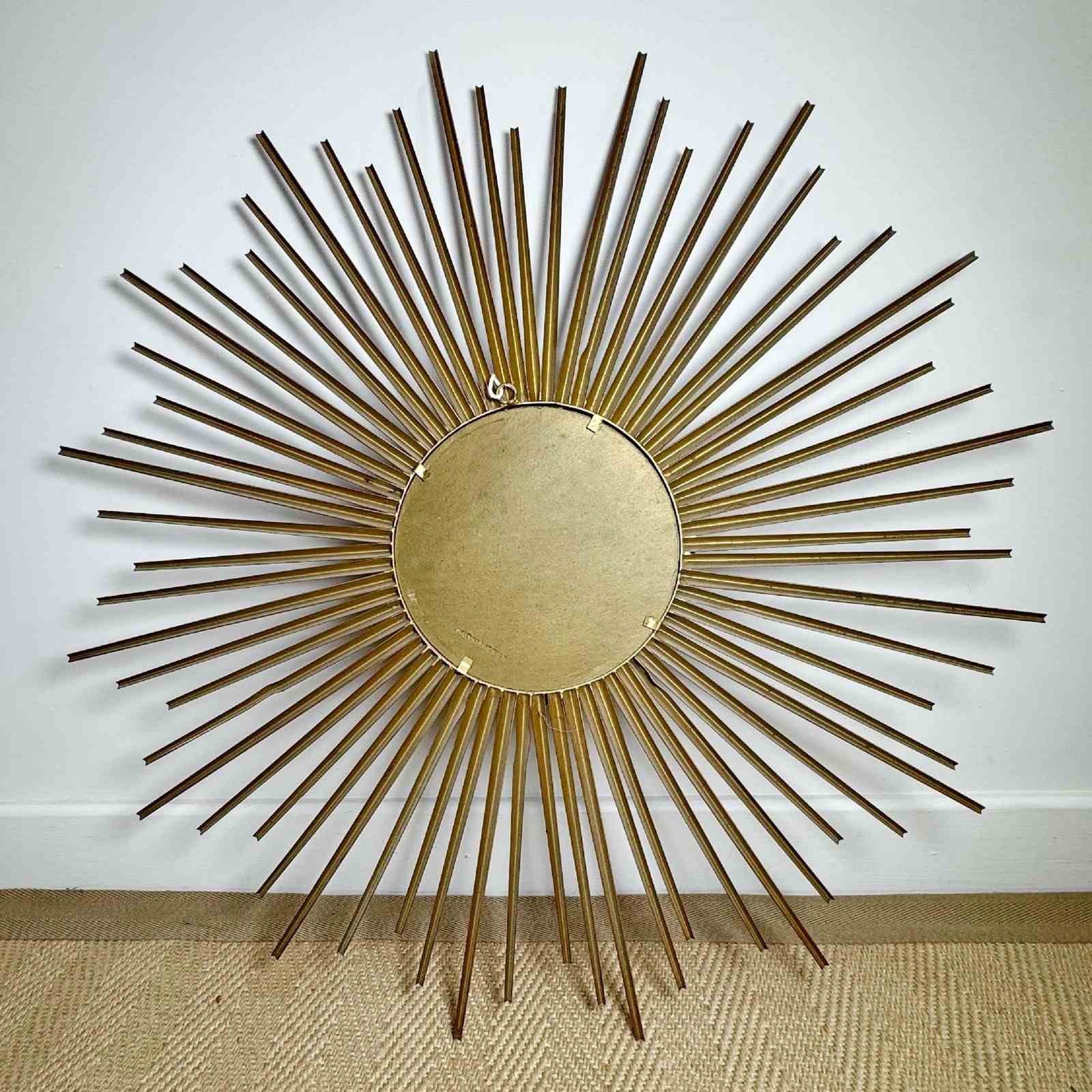 Large vintage Chaty Vallauris sunburst mirror, France circa 1950, as is the norm with these mirrors, couple of tiny ray kinks, but barely noticeable.