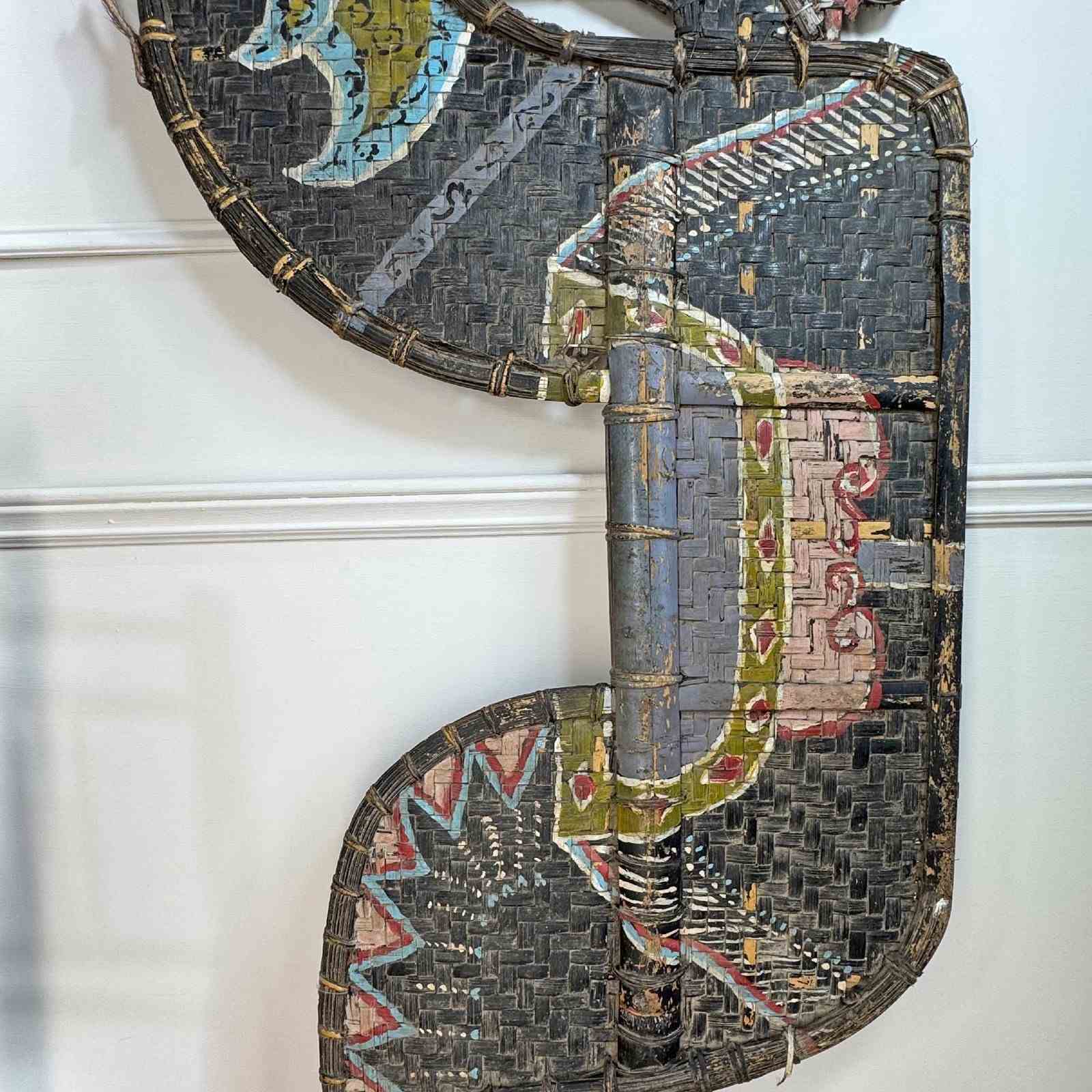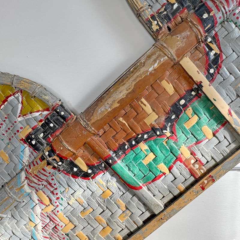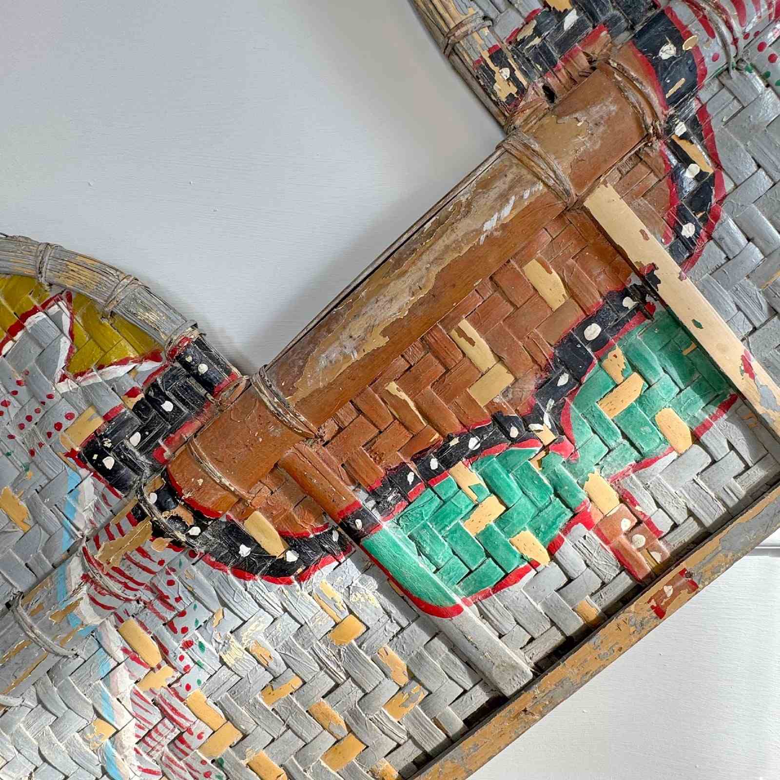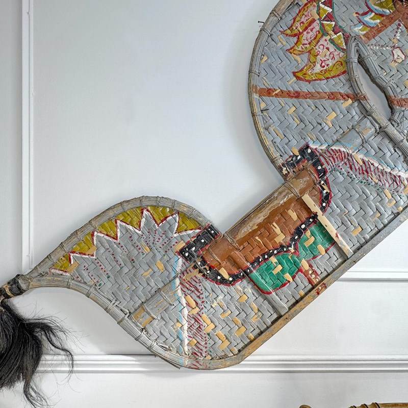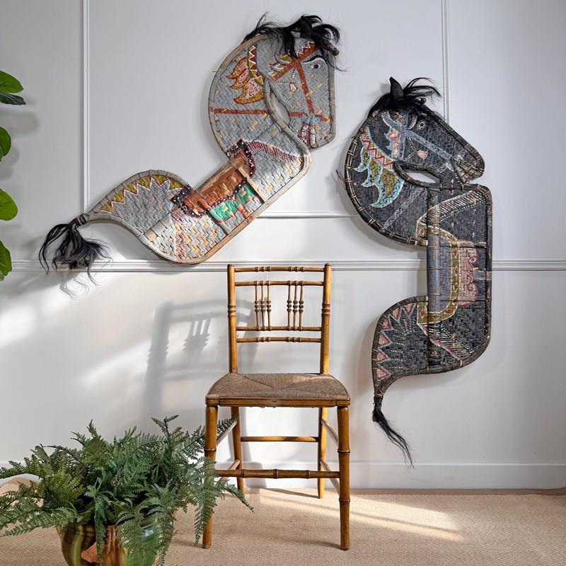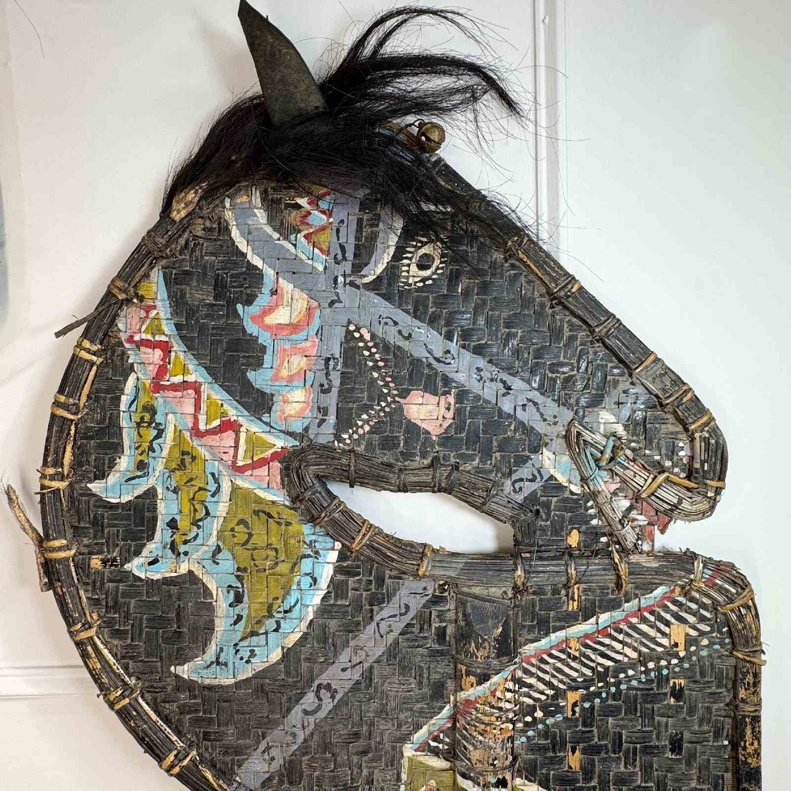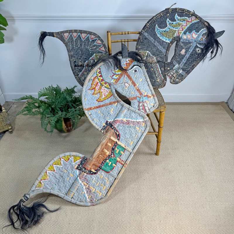 These horses are hand crafted from rattan, bamboo, natural grass and hair, and each side of the horse is individually hand decorated. Please note we also have a pair of huge Kuda Lumping Horses for sale on another listing.