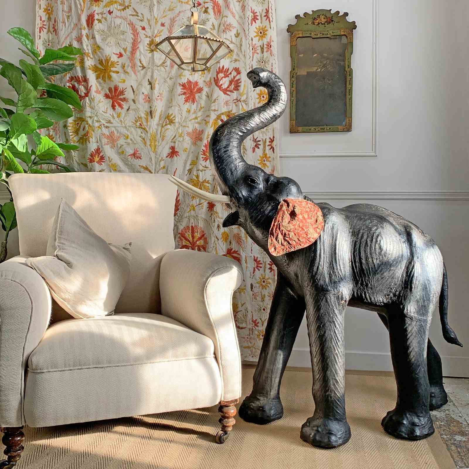 A stunning leather elephant, attributed to Liberty of London, this incredible item was the largest leather elephant that Liberty made standing over 4 feet 2 inches tall and almost 4 feet in length.
