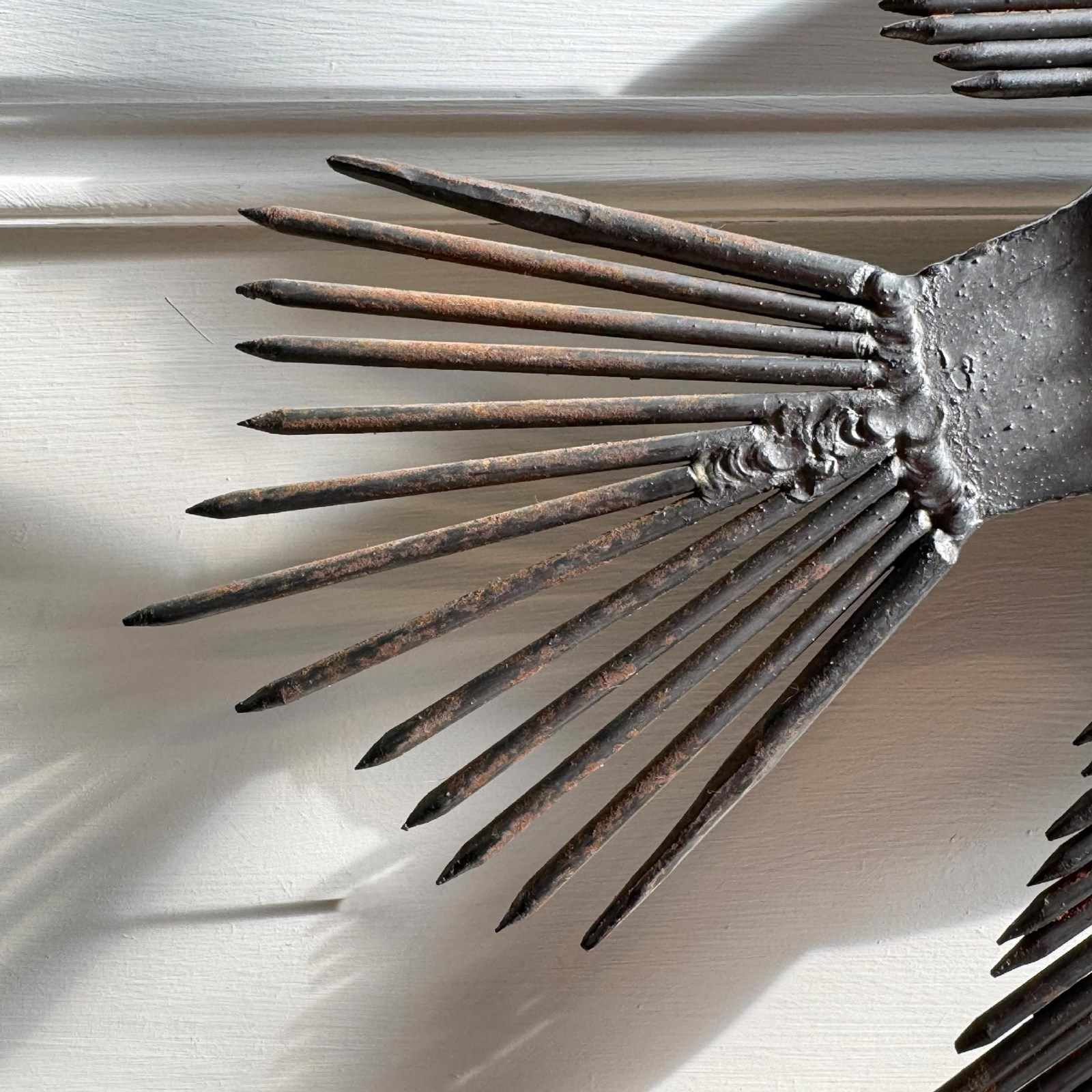 Note due to the brutalist nature of this light sculpture and the use of nails in the construction, some parts of the sculpture are quite sharp.