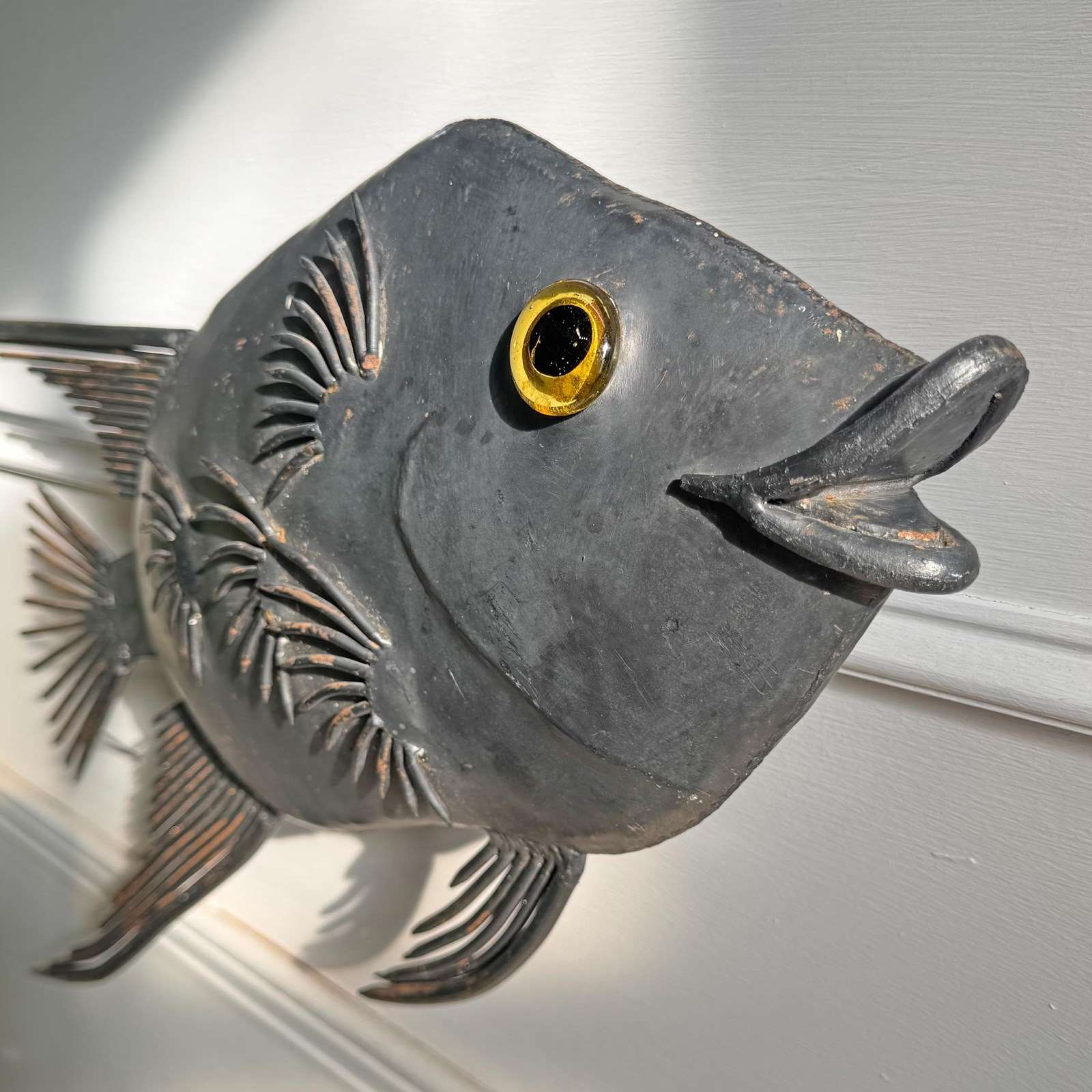 Brutalist Steel Fish Wall Light 1950'S