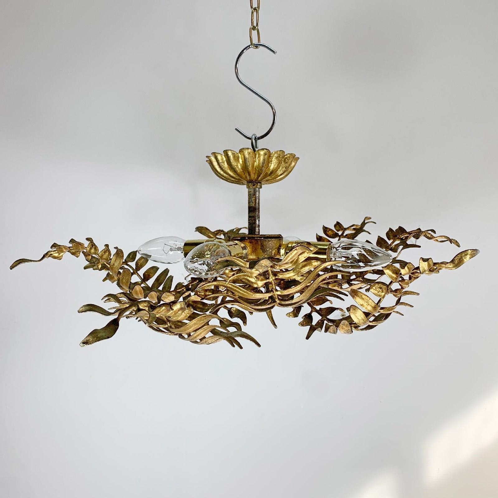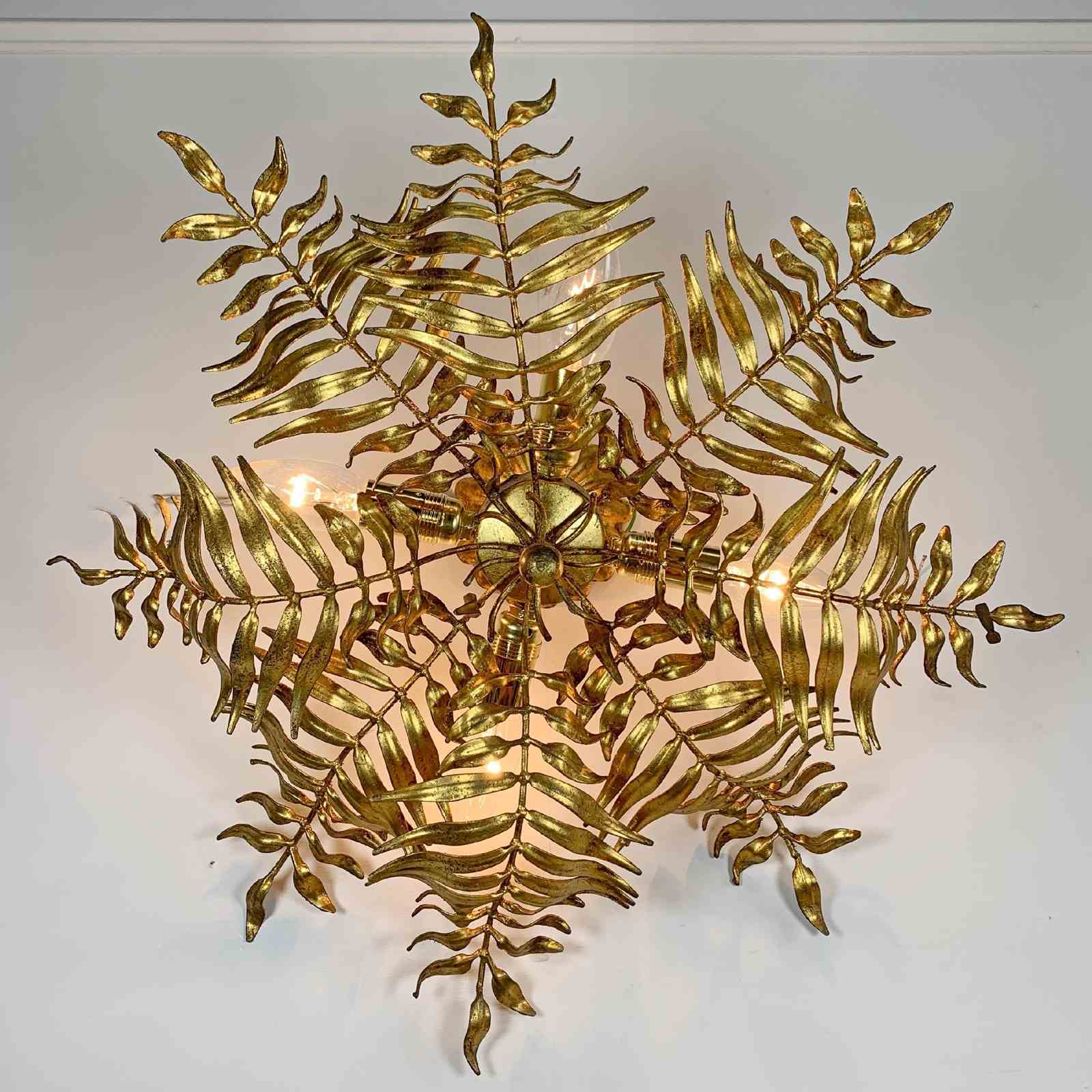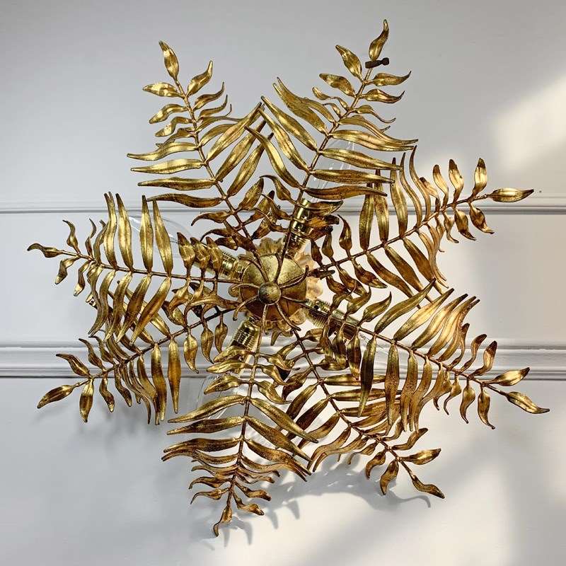 1950’S Italian Gilt Leaf Fern Ceiling Light