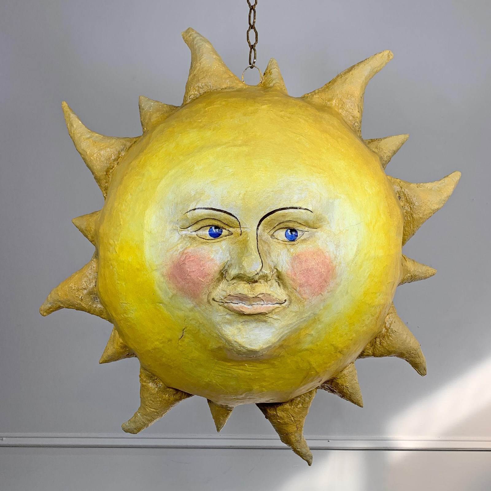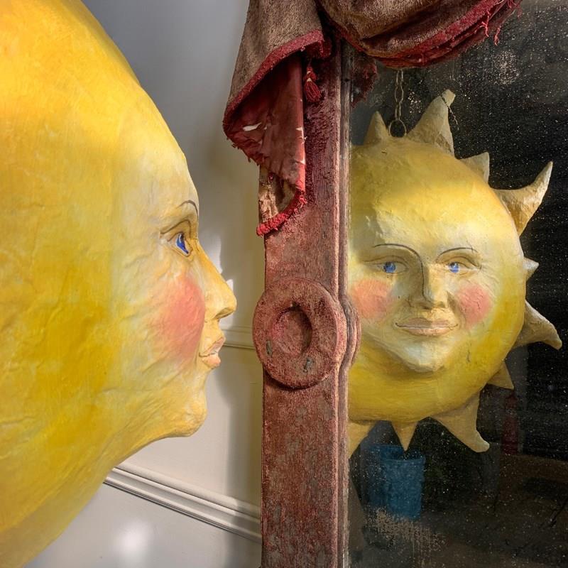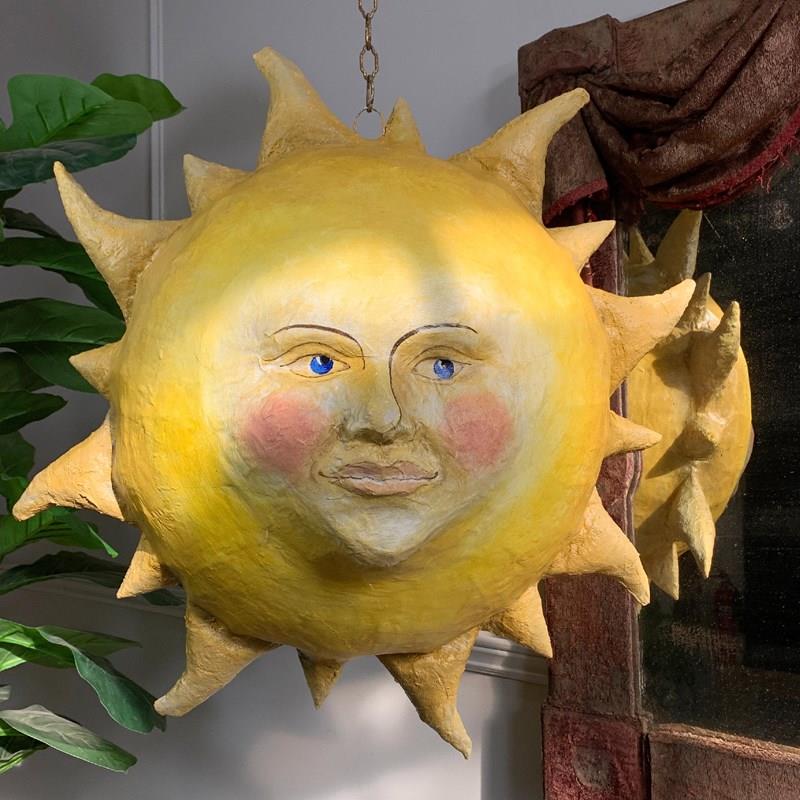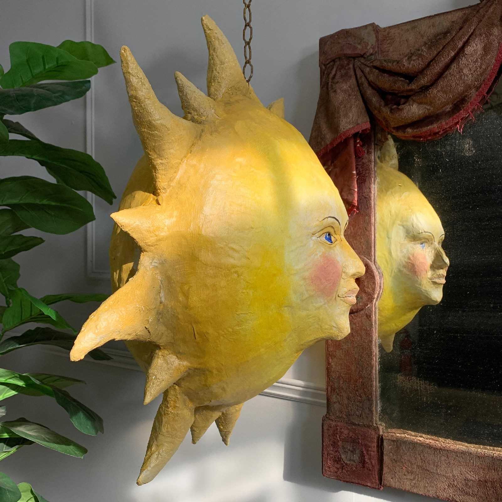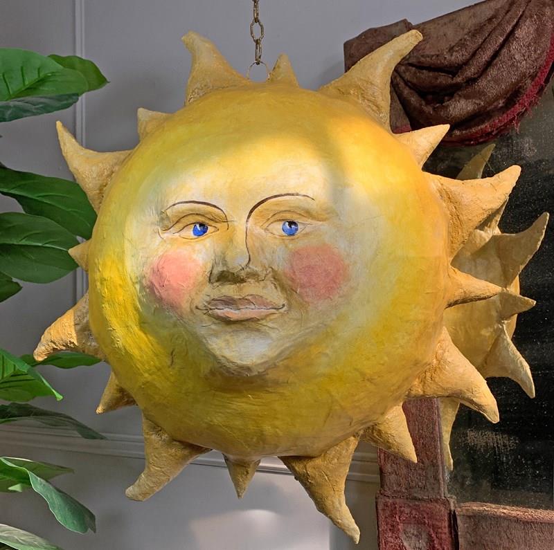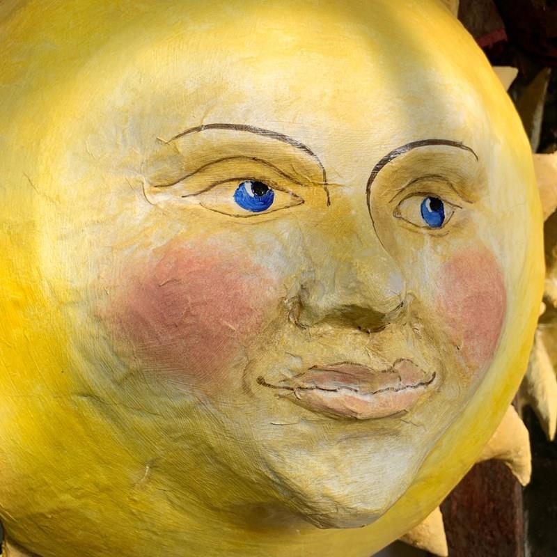 Large Folk Art Papier Mache Sun With Face