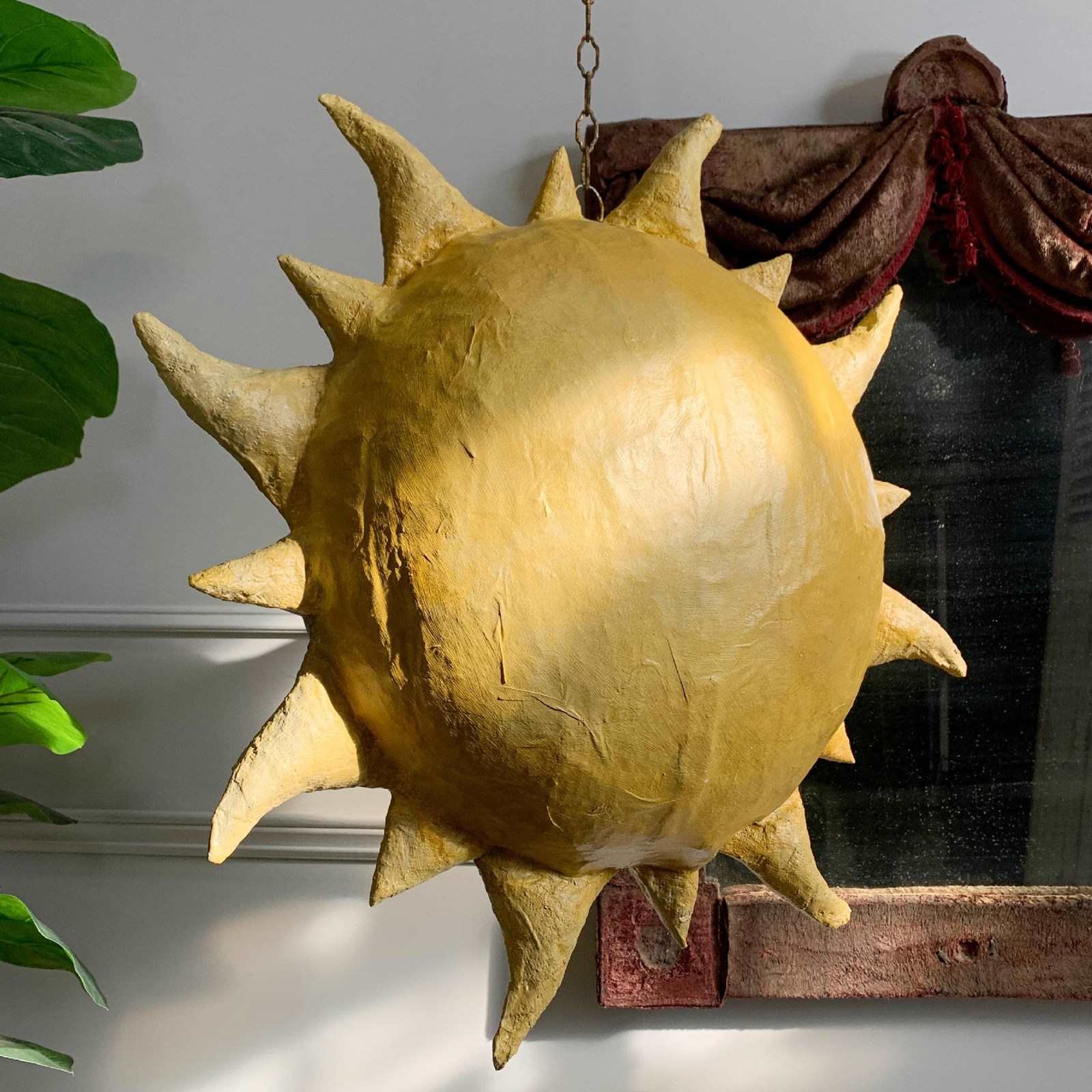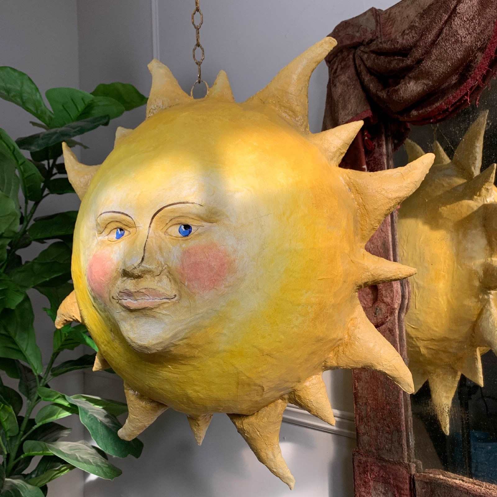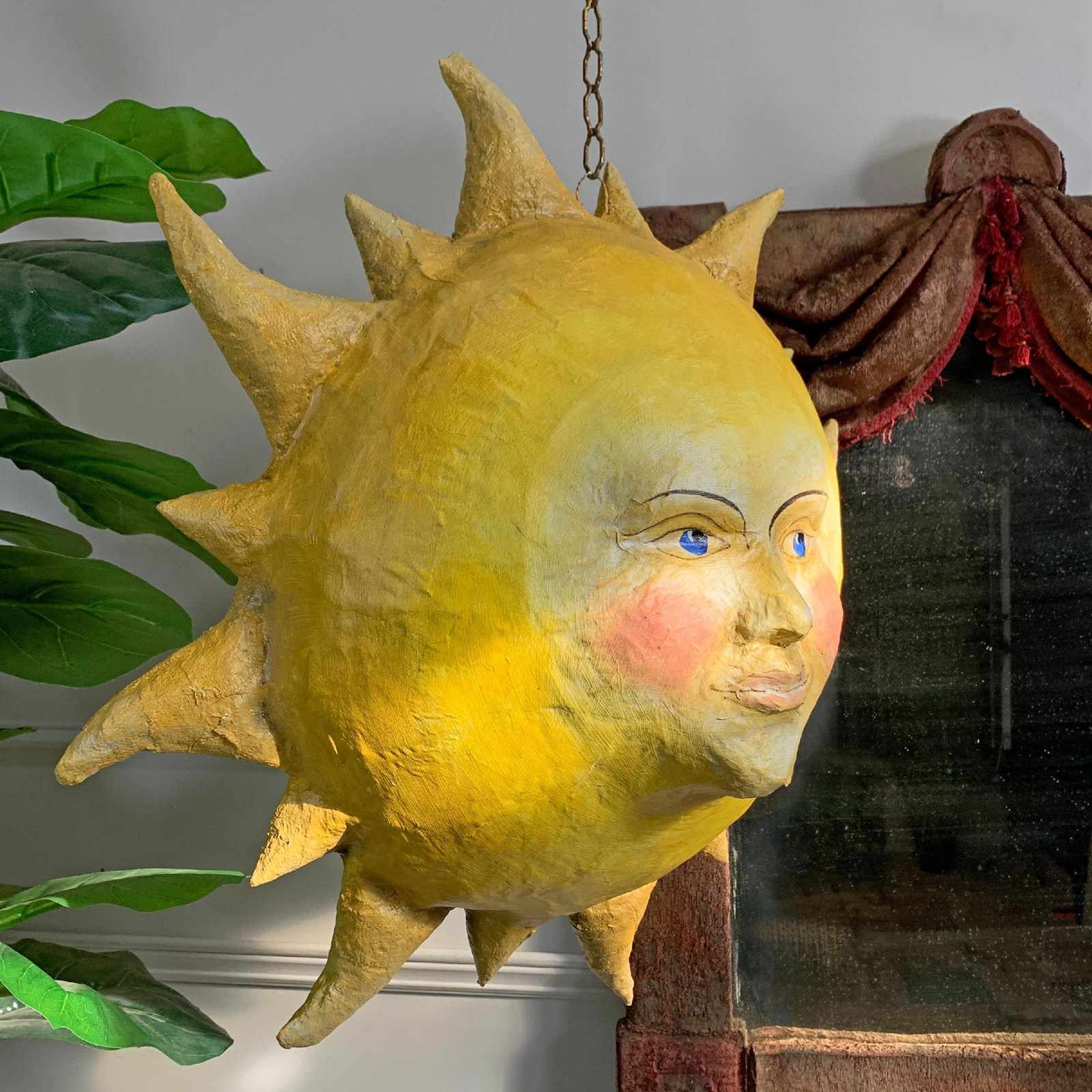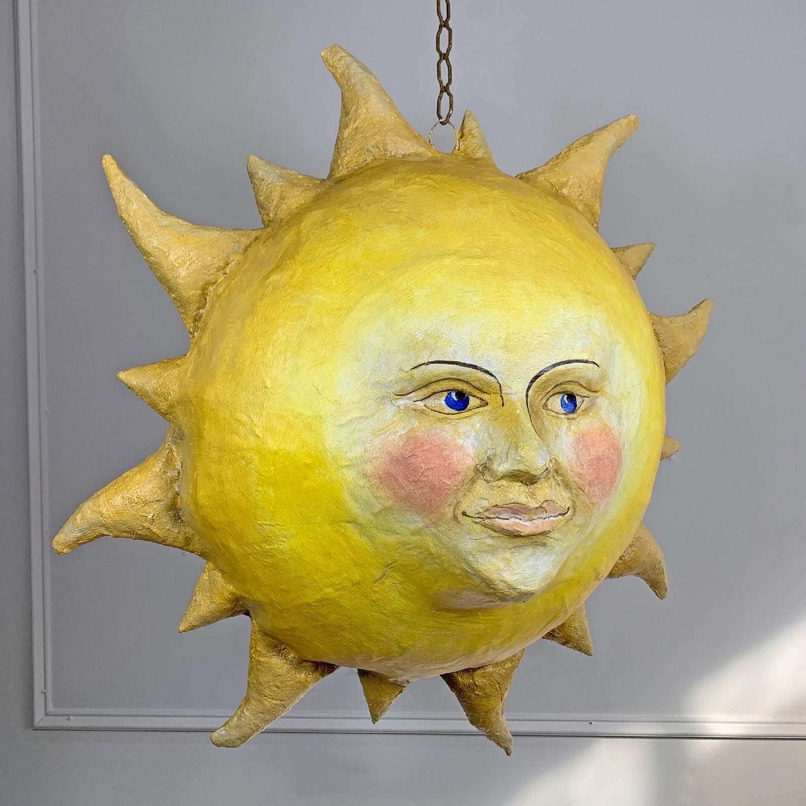 Large Folk Art Papier Mache Sun With Face