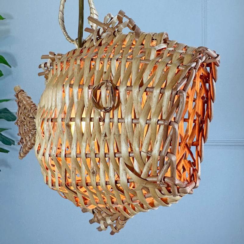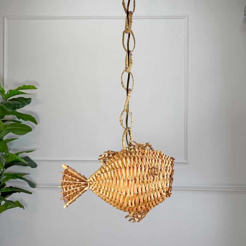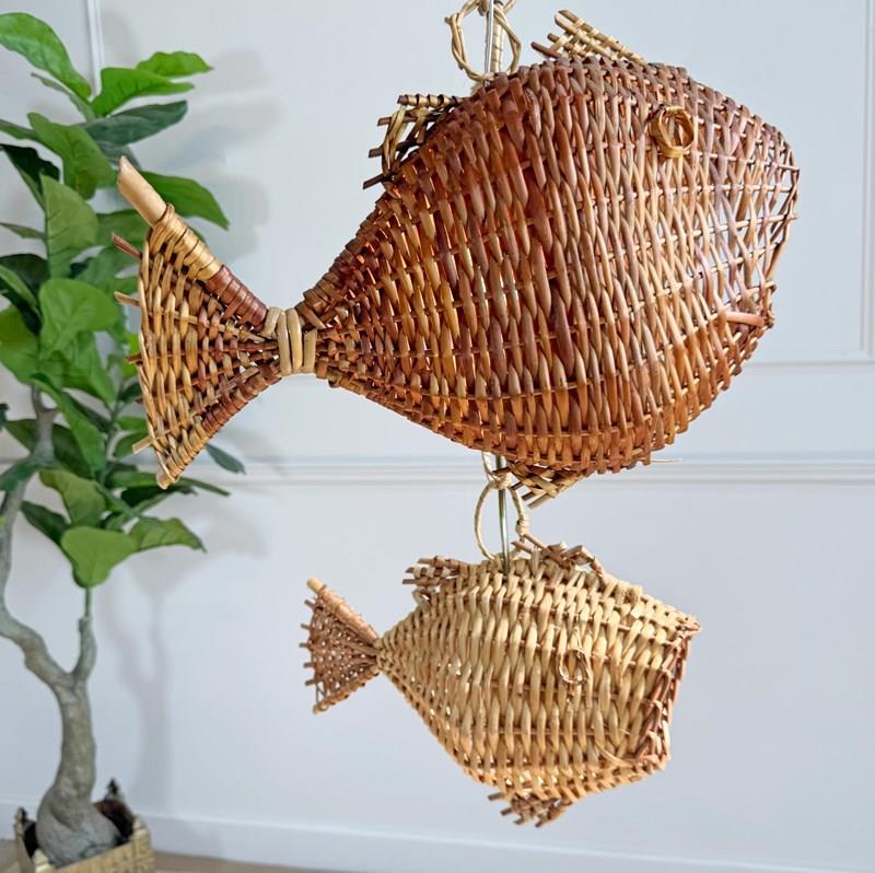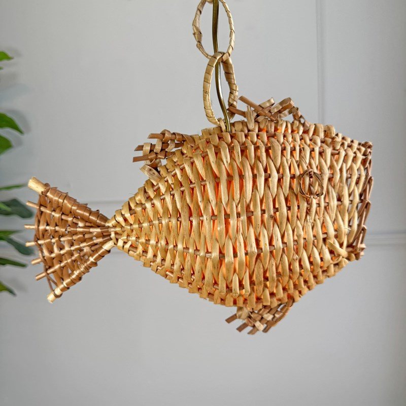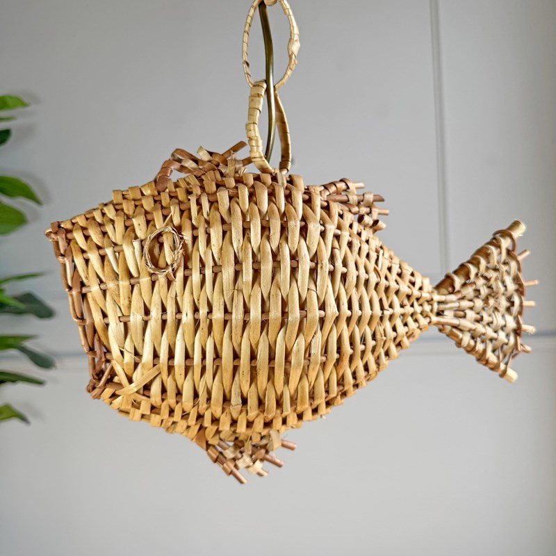 Vintage Wicker Fish Ceiling Light France 1950'S
