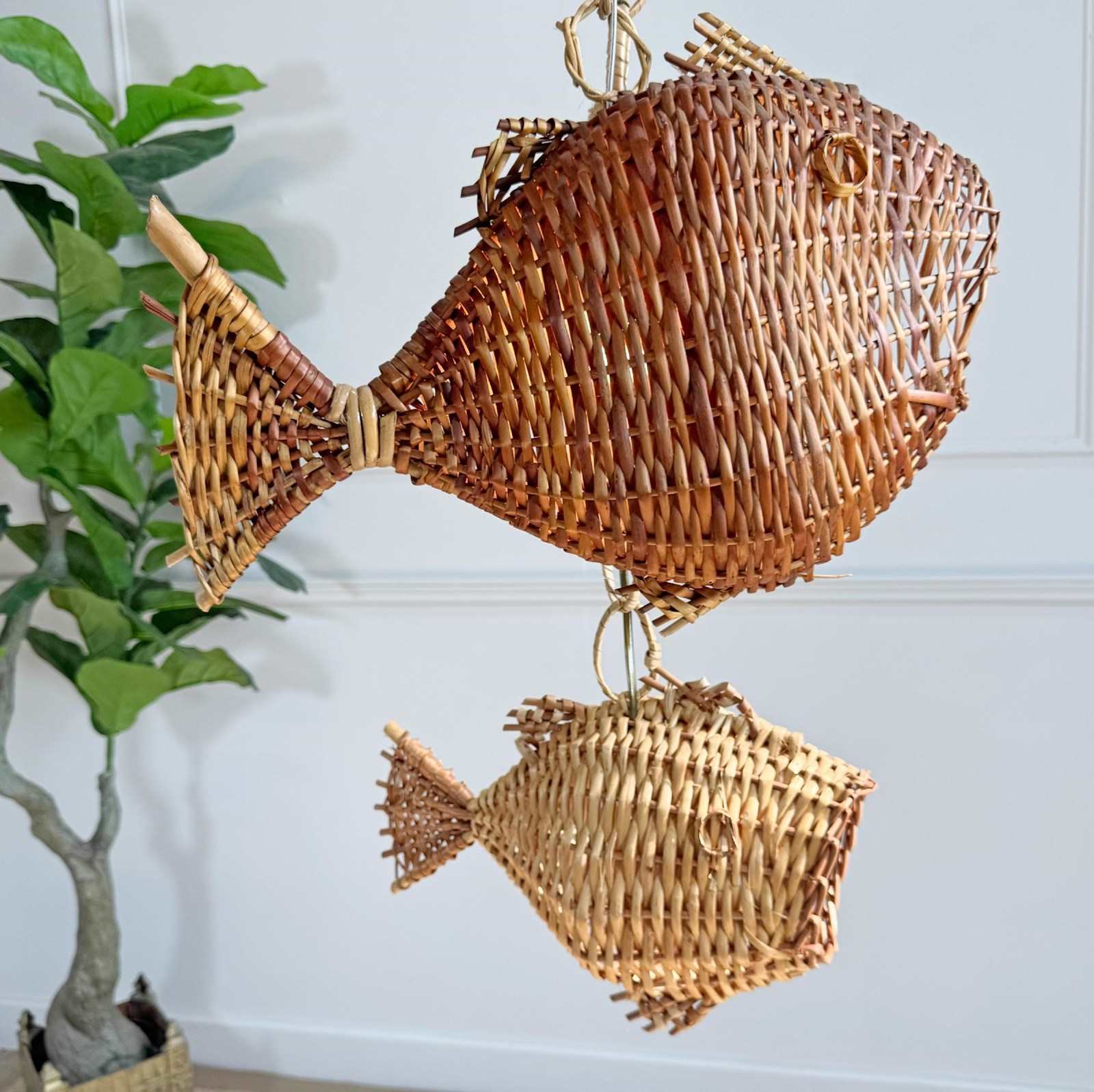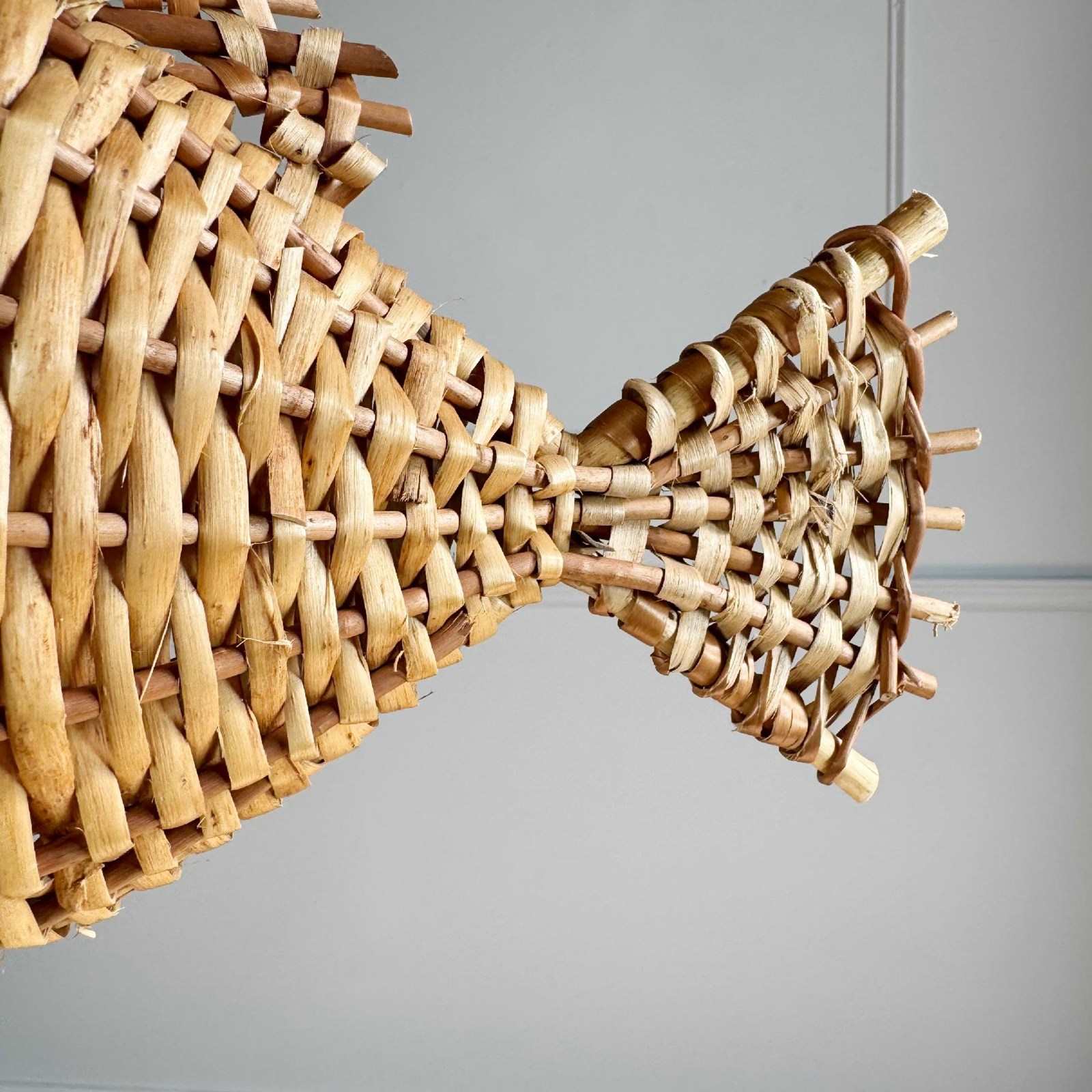 Superb mid century wicker fish ceiling light, French, 1950's Due to their nature these original ceiling lights are incredibly rare to find from this period and especially in such good condition. We have managed to source 3 of these incredible hand crafted lamps, the other mid century Wicker Fish Ceiling Lights are available on a separate listing.