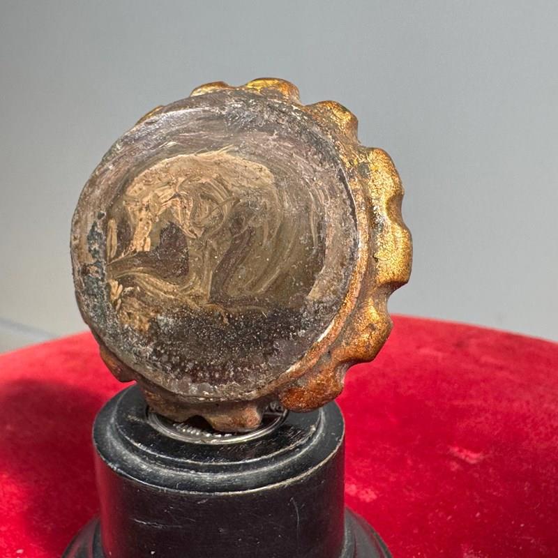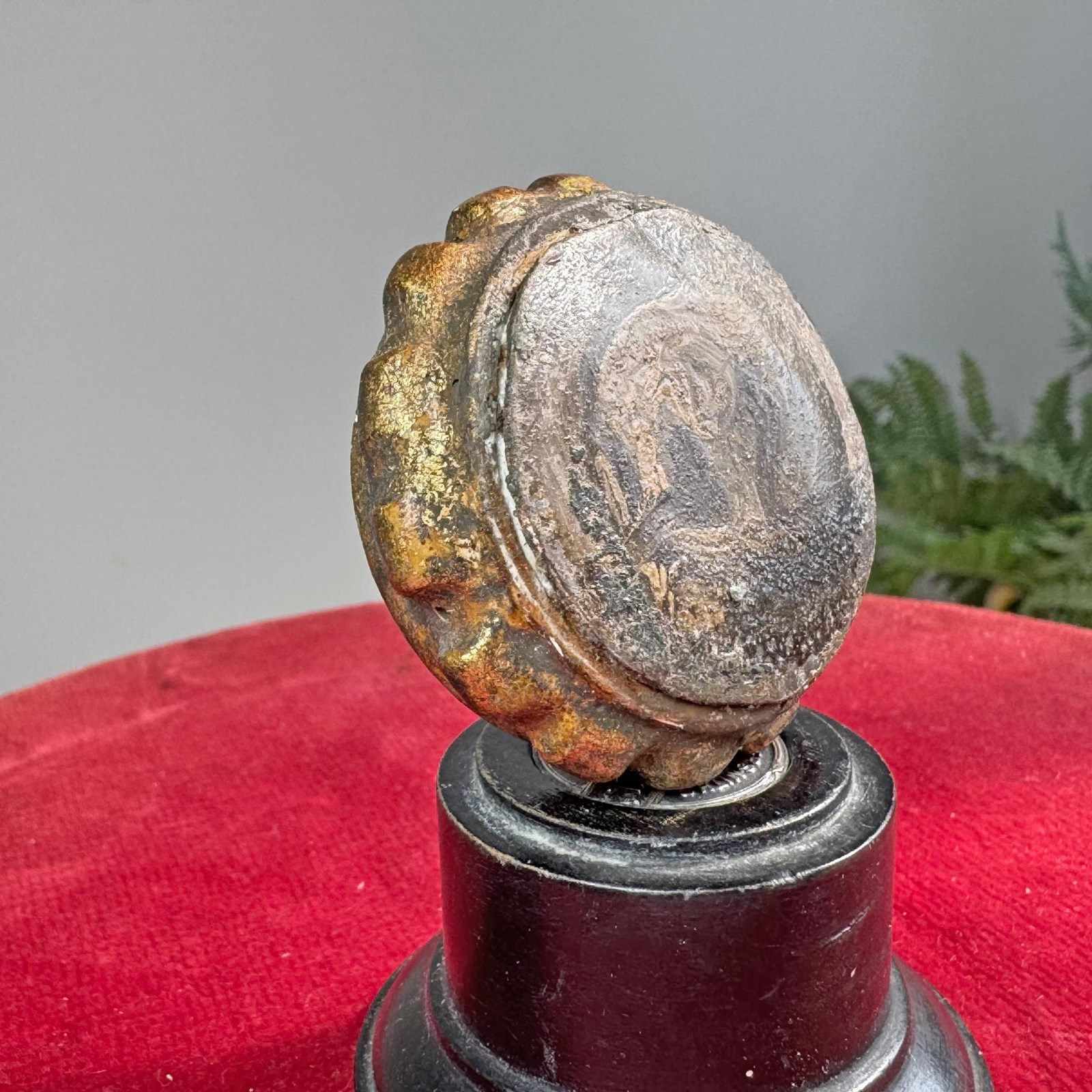 An unusual and rare 18th century memento mori, oil painting on a small wooden plaque, with gilt wood notched surround.