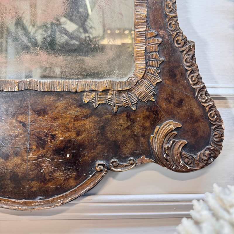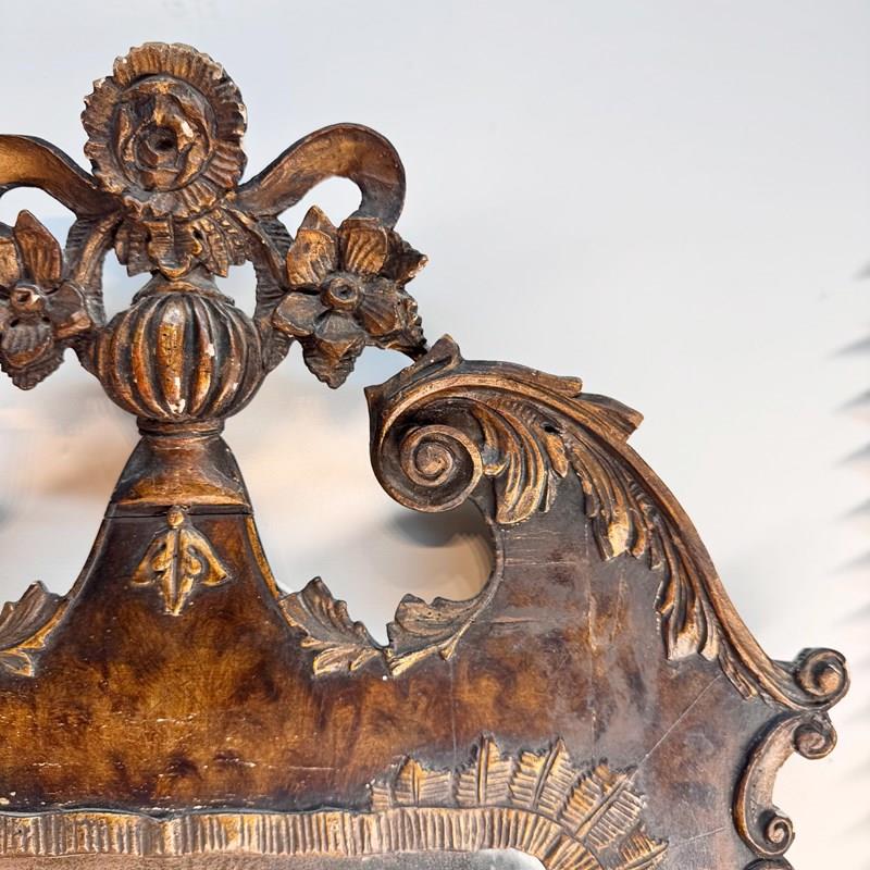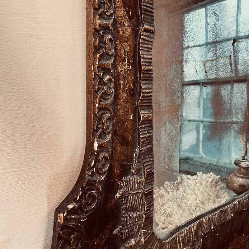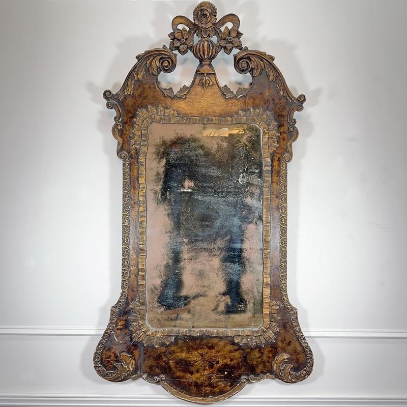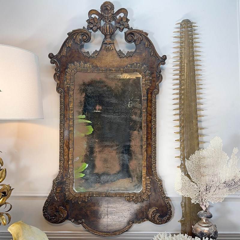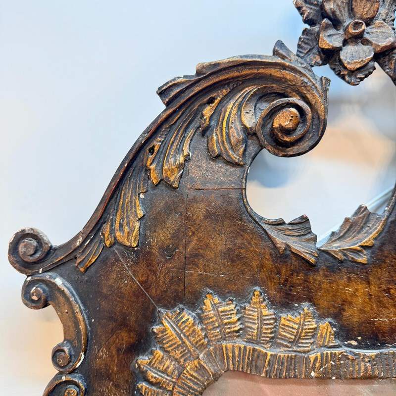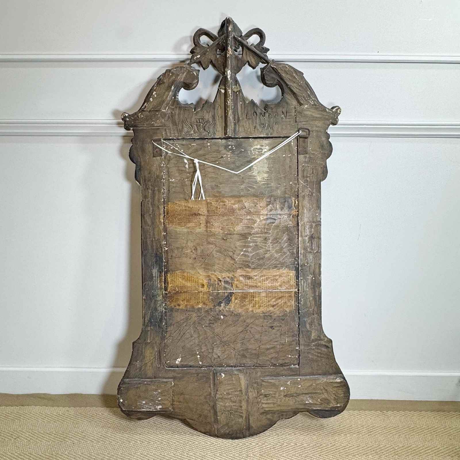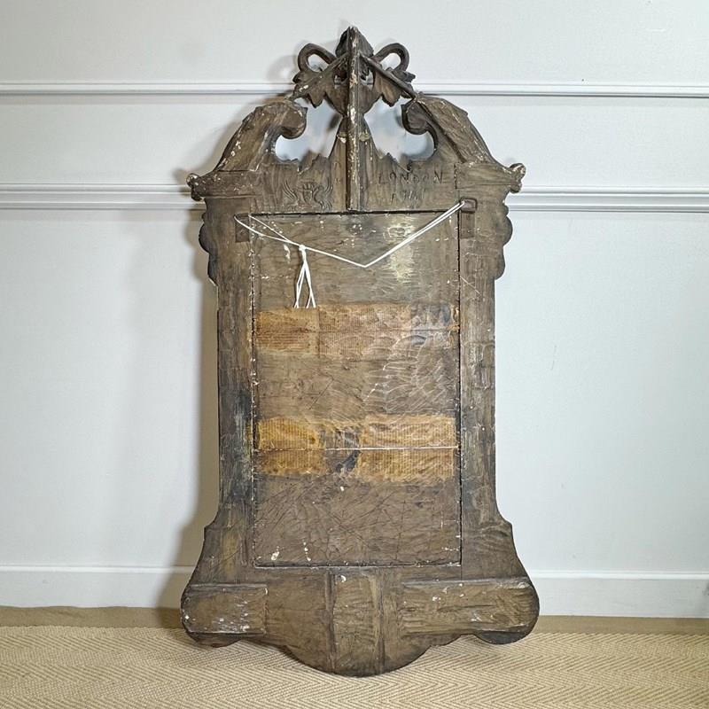 A striking late 19th century large George II style wall mirror, the hand carved walnut frame set with scrolling decorative elements and adorned with detailed, yet delicate carvings, the original plate and backboards still present. This beautifully proportioned and decorative mirror pays homage to those that were greatly prized during the reign of George II (1727 - 1760). Marked to the rear London 1741.