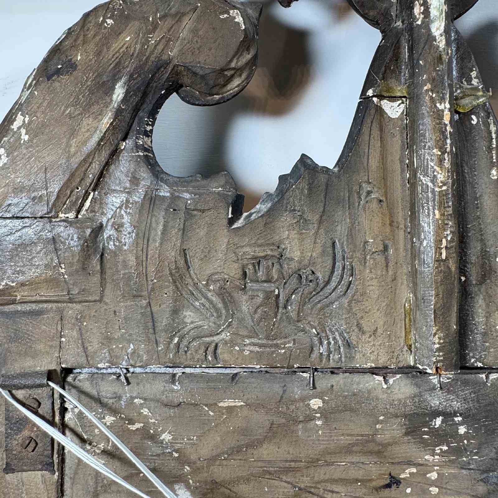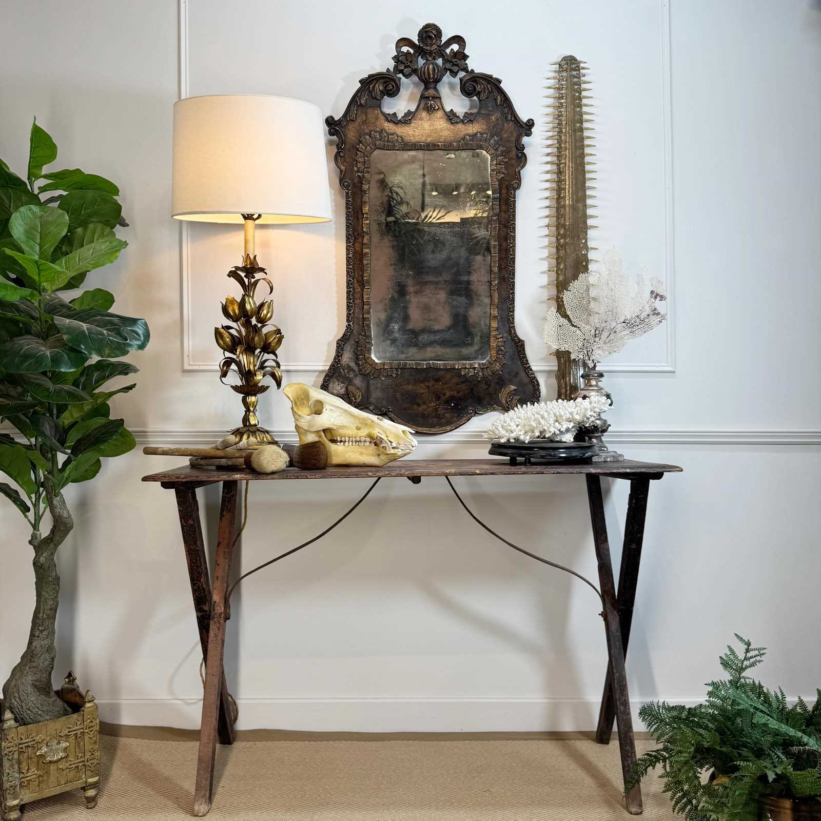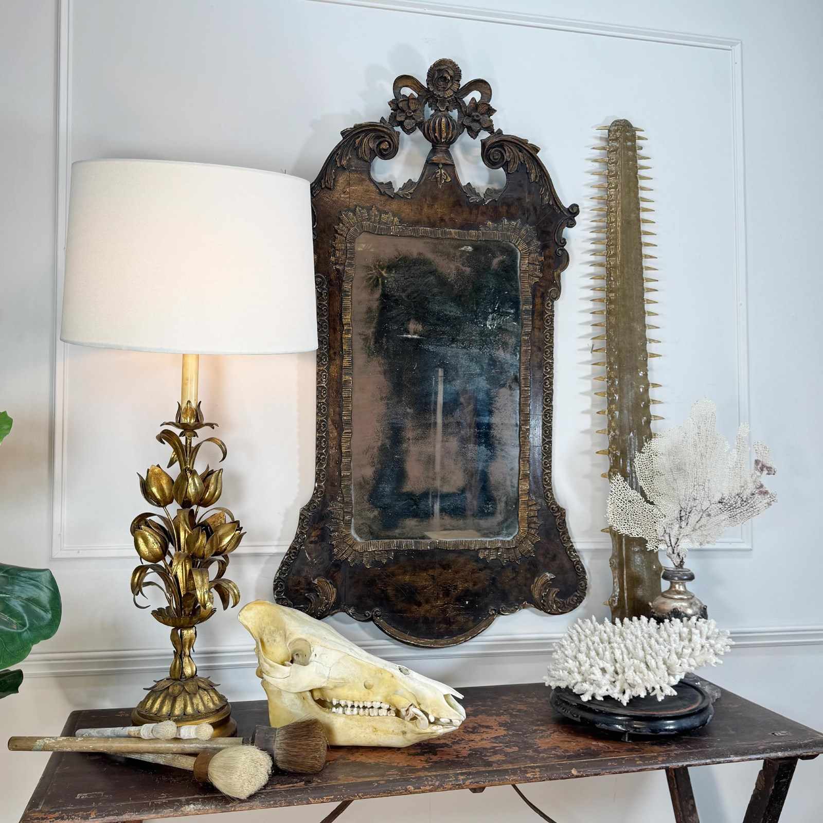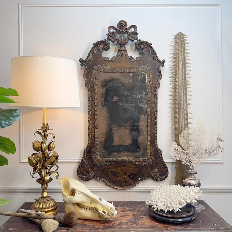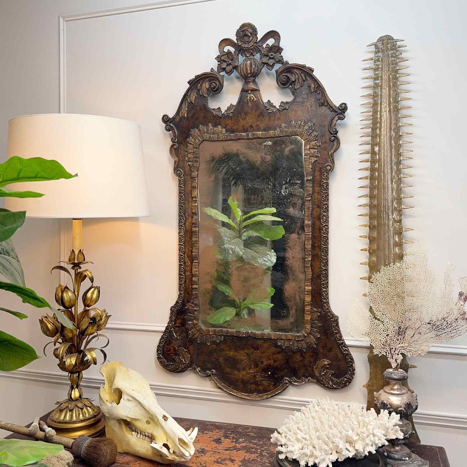 A striking late 19th century large George II style wall mirror, the hand carved walnut frame set with scrolling decorative elements and adorned with detailed, yet delicate carvings, the original plate and backboards still present. This beautifully proportioned and decorative mirror pays homage to those that were greatly prized during the reign of George II (1727 - 1760). Marked to the rear London 1741.