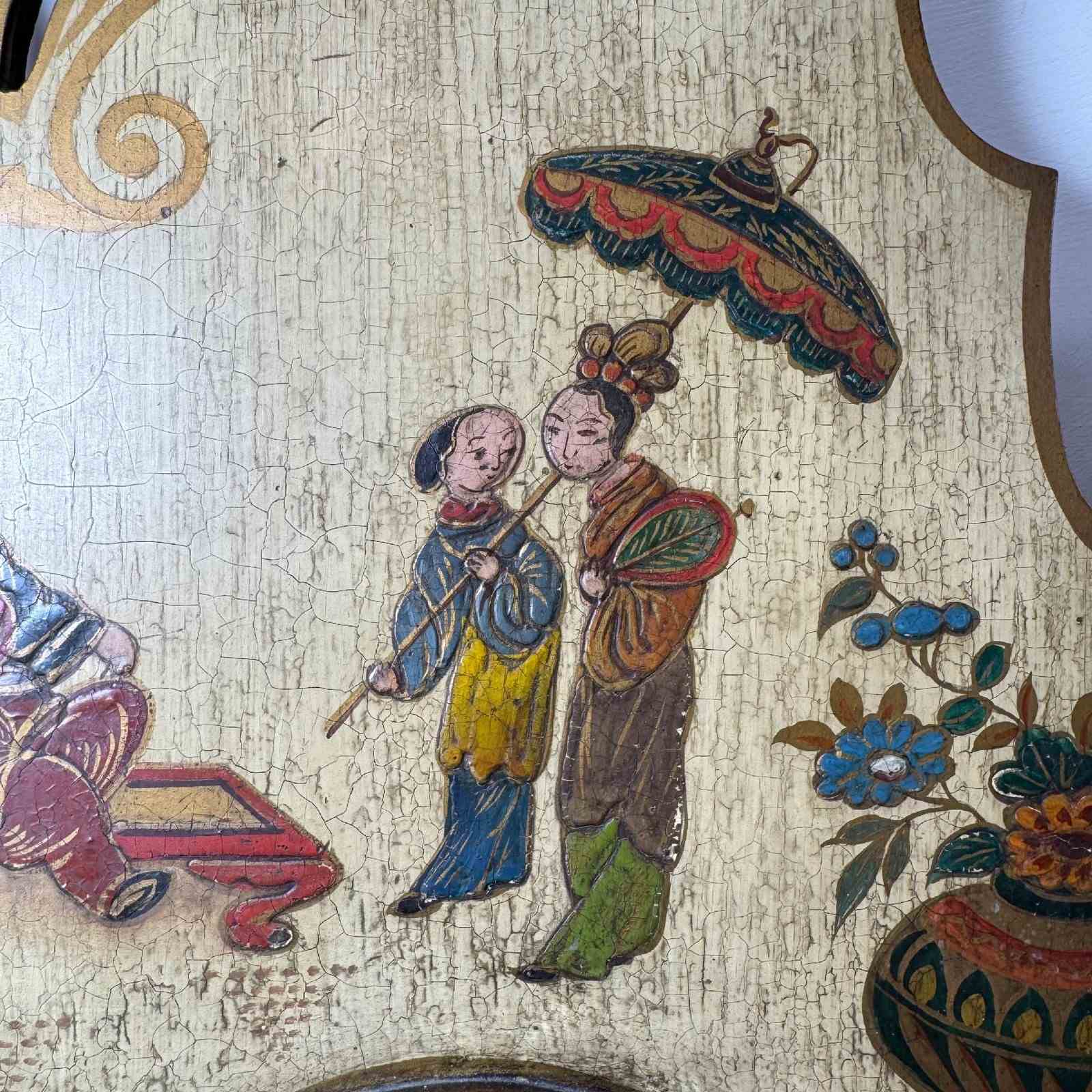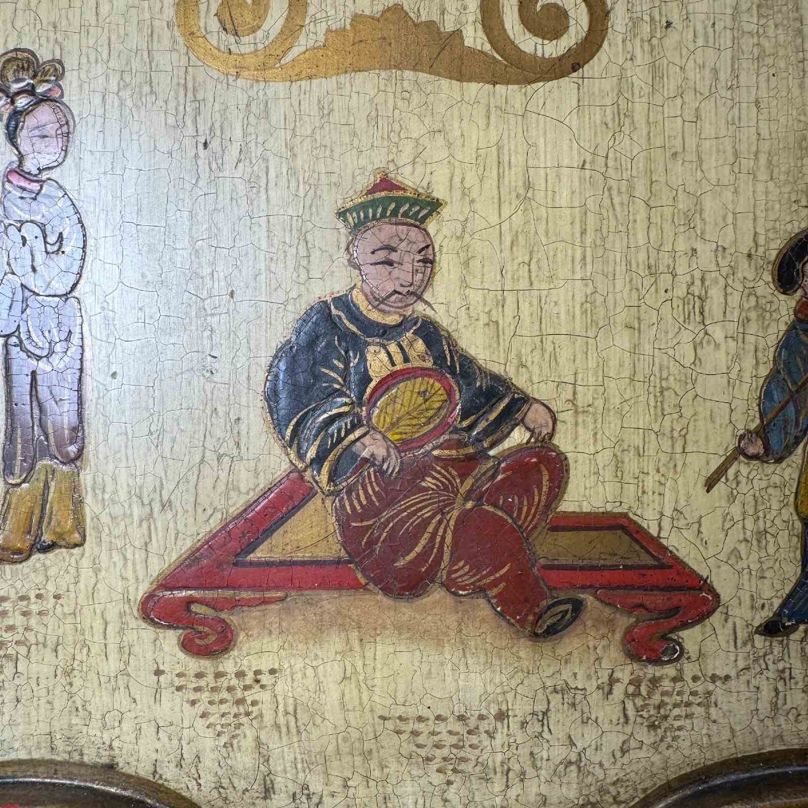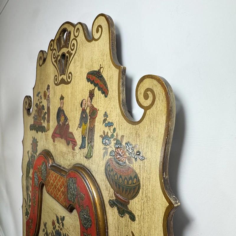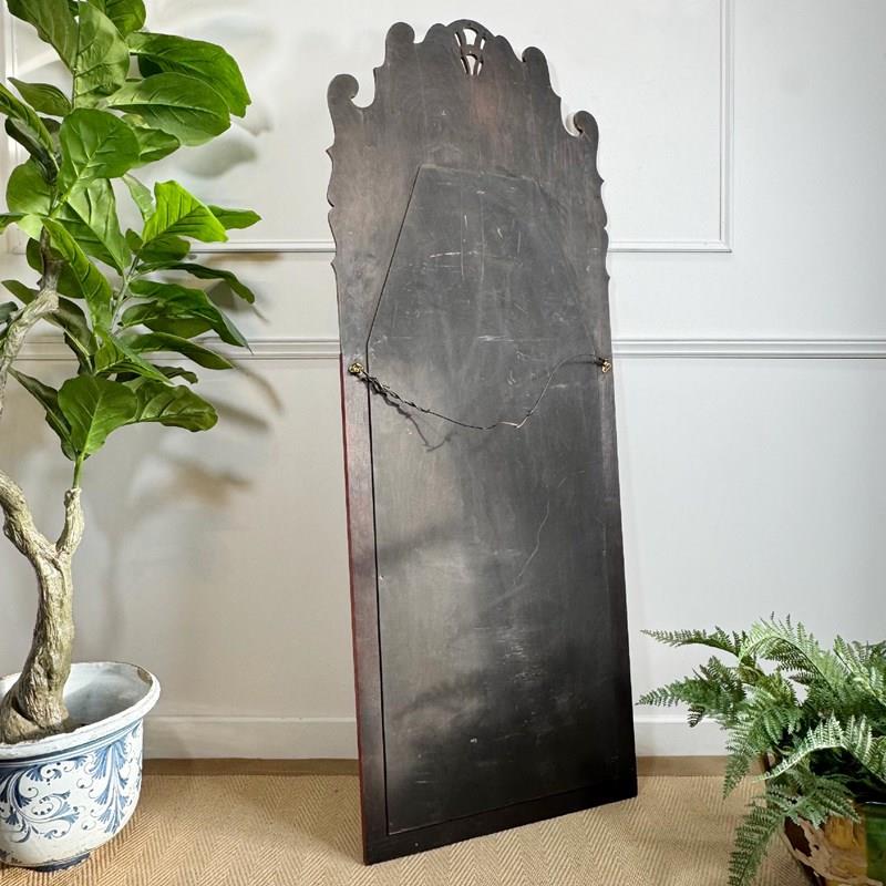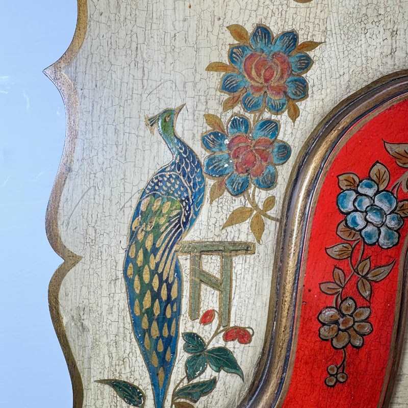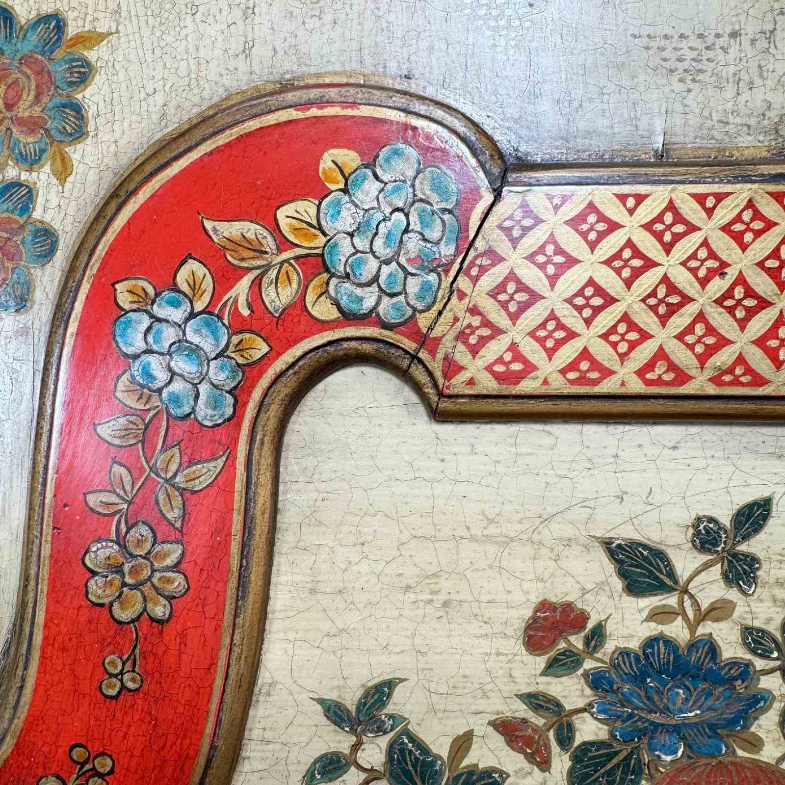 A stunning George I style chinoiserie mirror, English, early 20th century in a gorgeous scarlet red, adorned with hand painted decoration featuring flowers, birds, figures and oriental scenes, the huge crest in a complimentary neutral stone finish. The frame displaying the perfect amount of age related wear and crazing, slight spots of foxing to the original plate. A beautiful period mirror in a rare colorway, and of great scale and proportion.