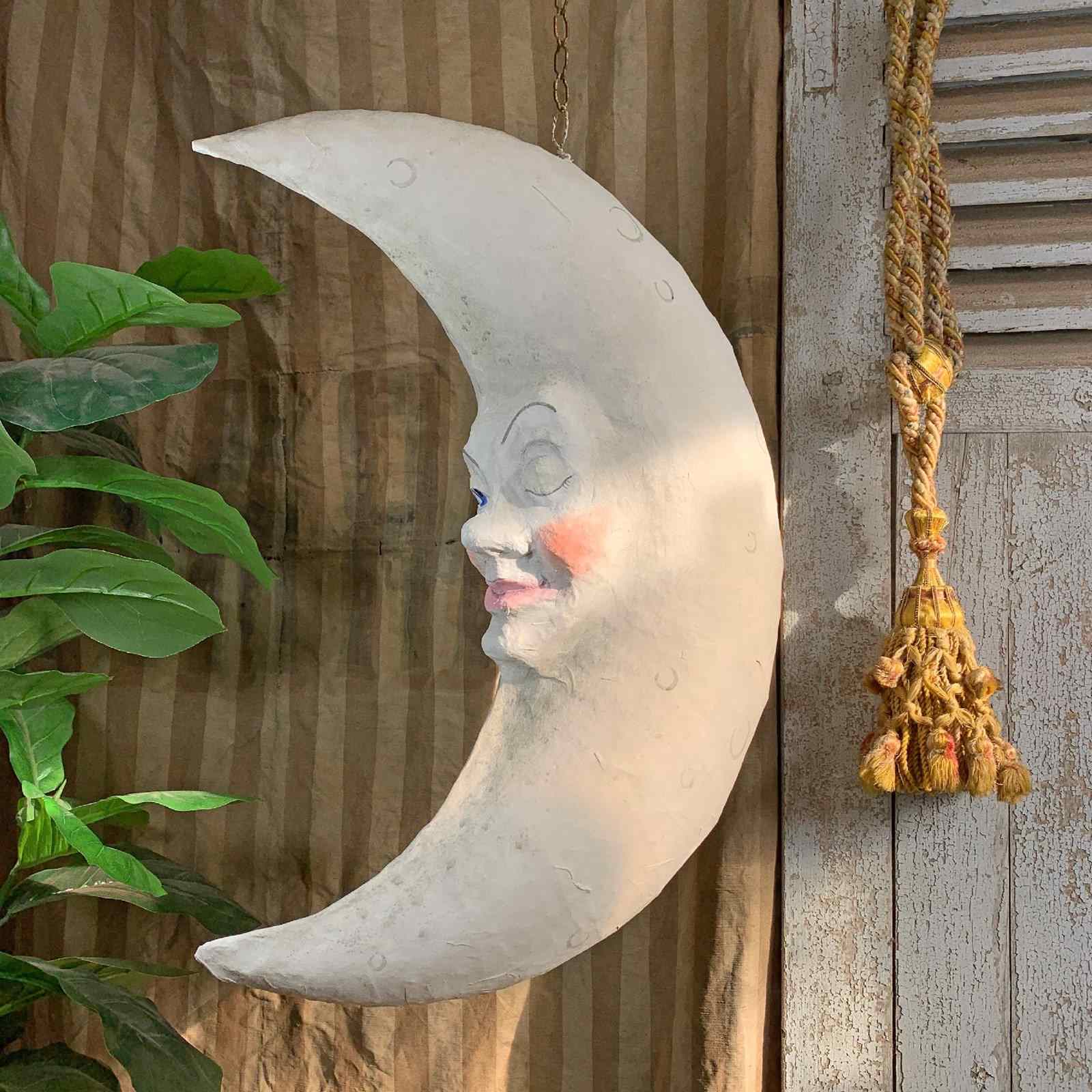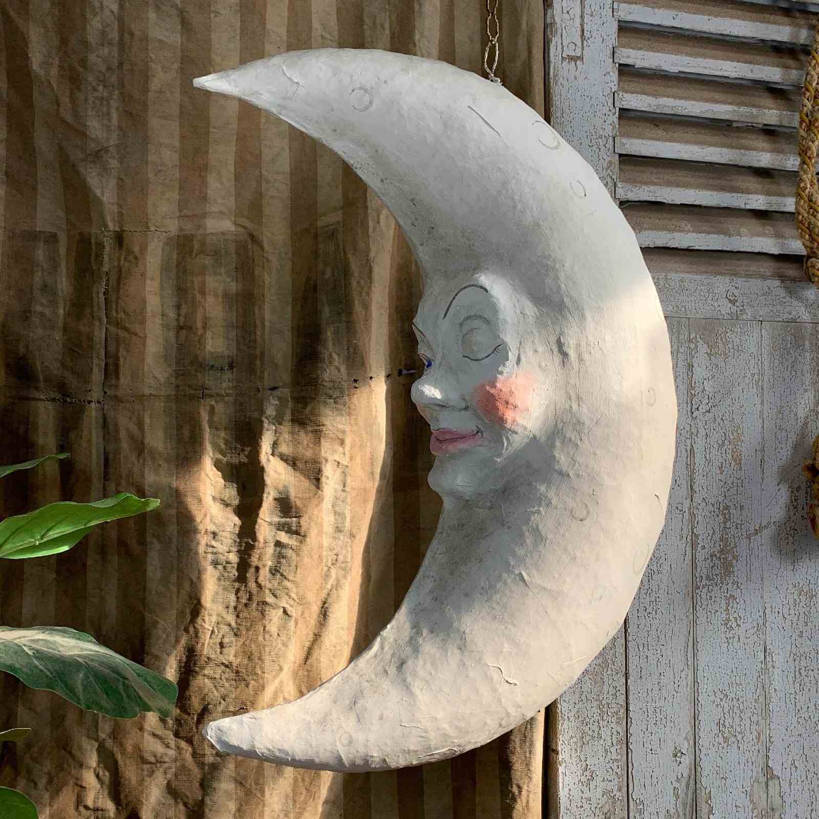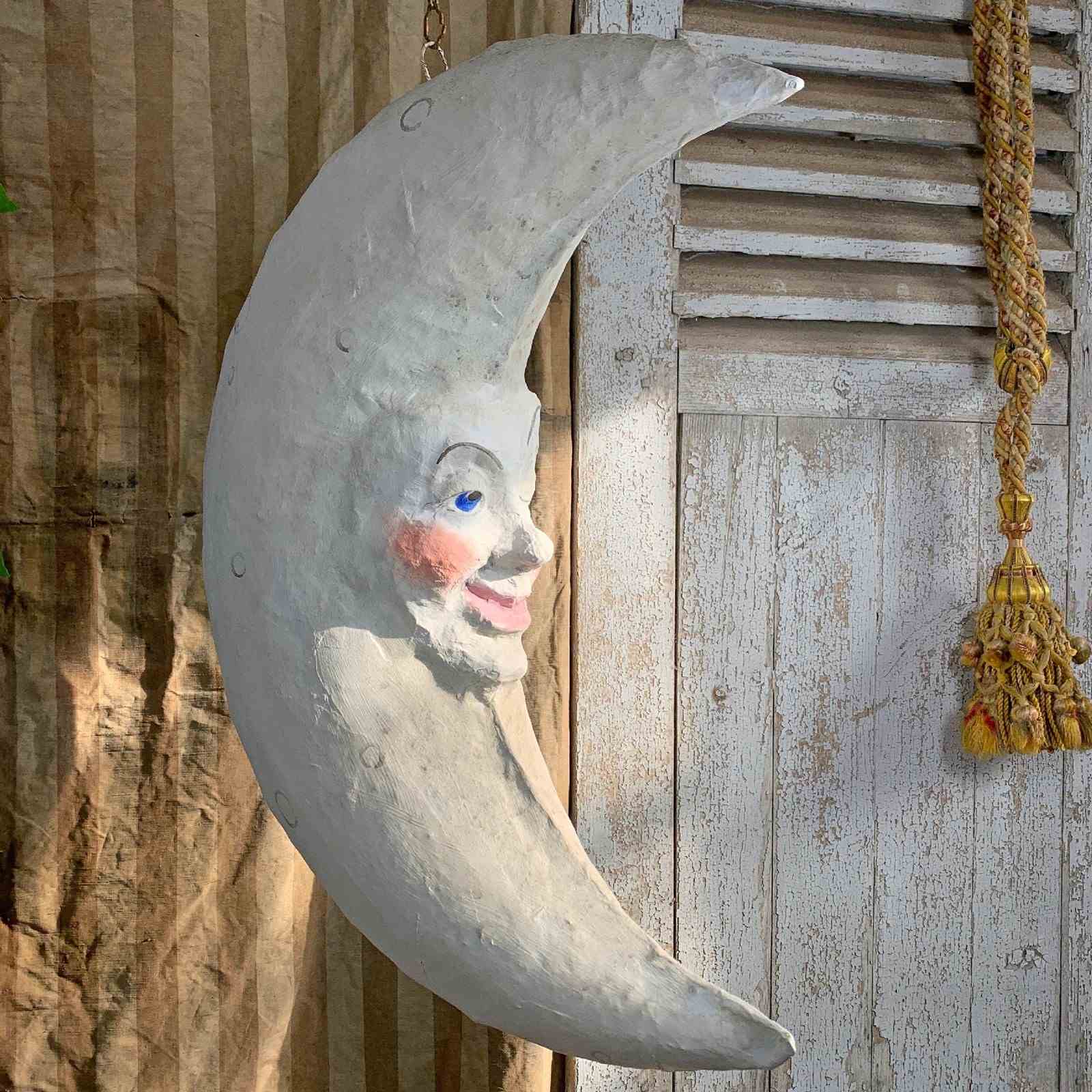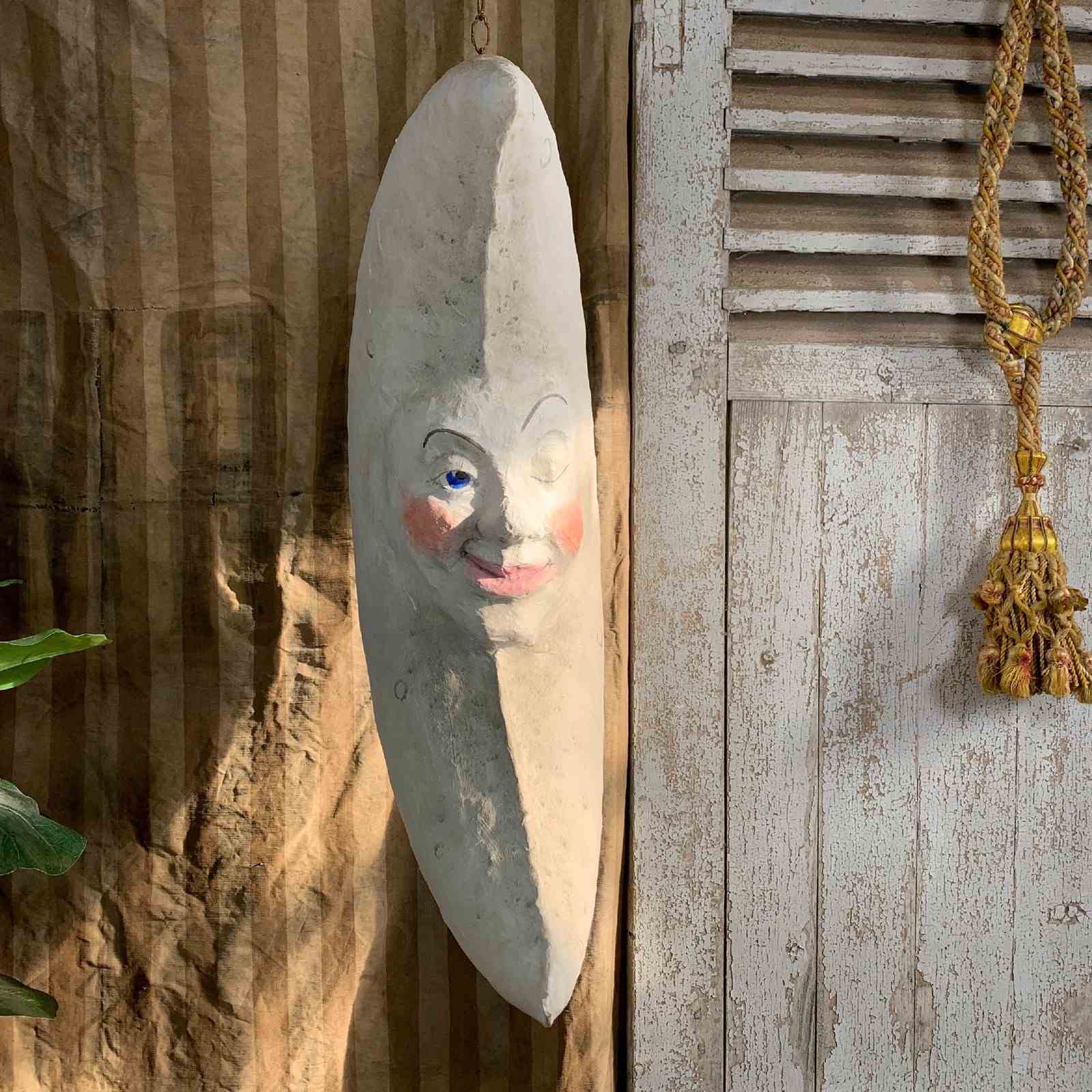 Large Folk Art Papier Mache Moon With Face