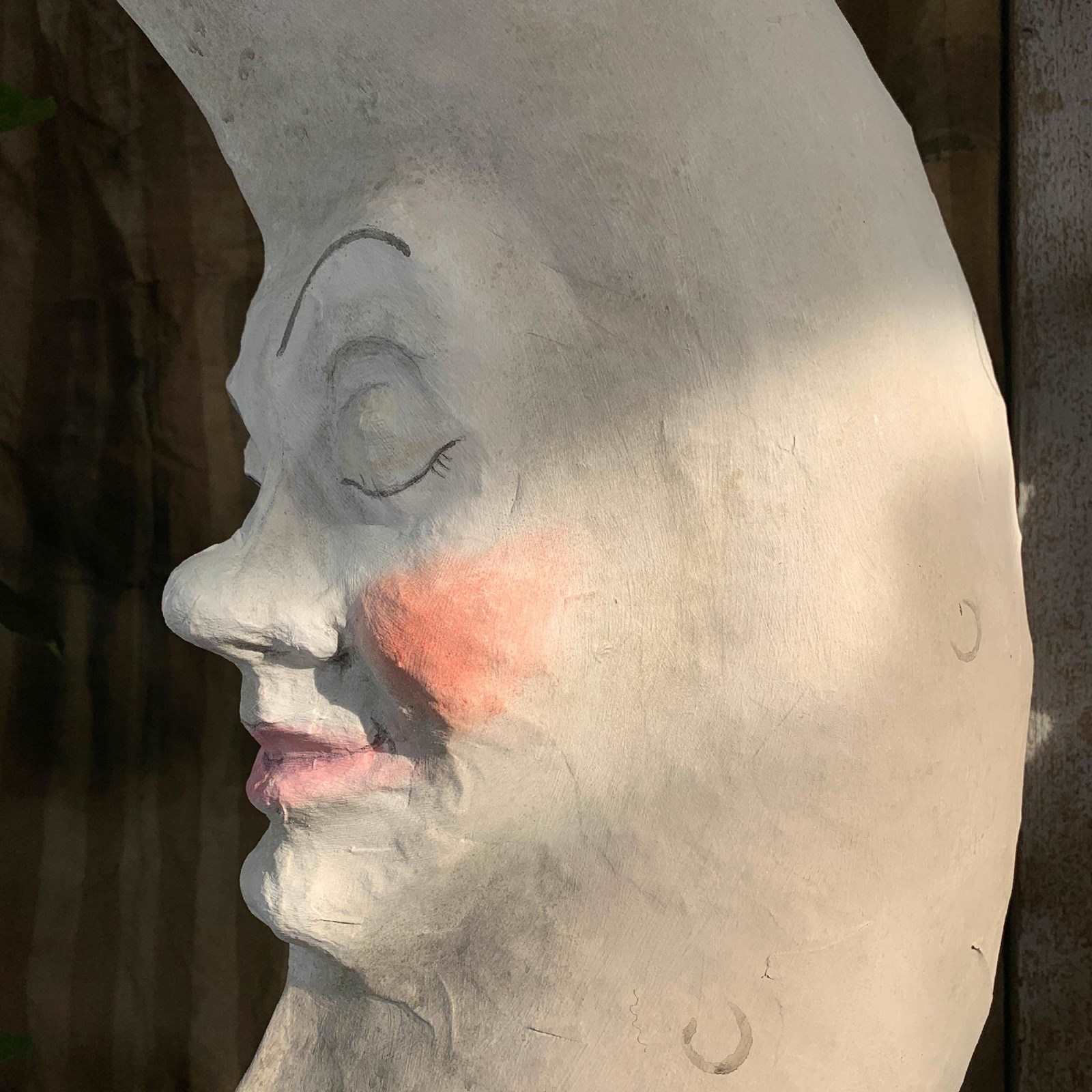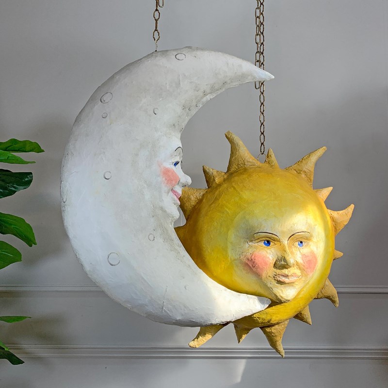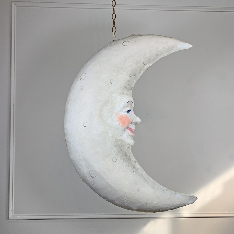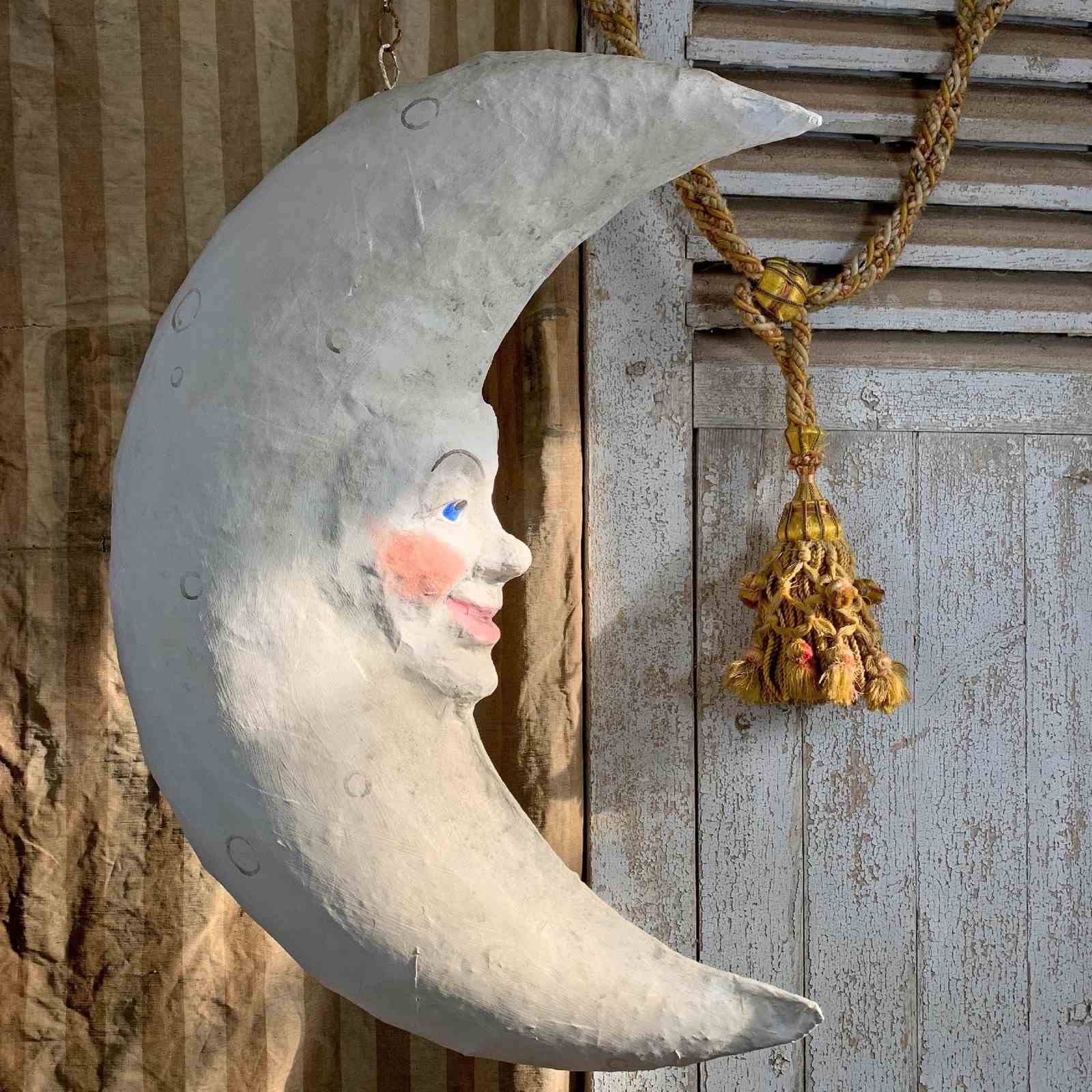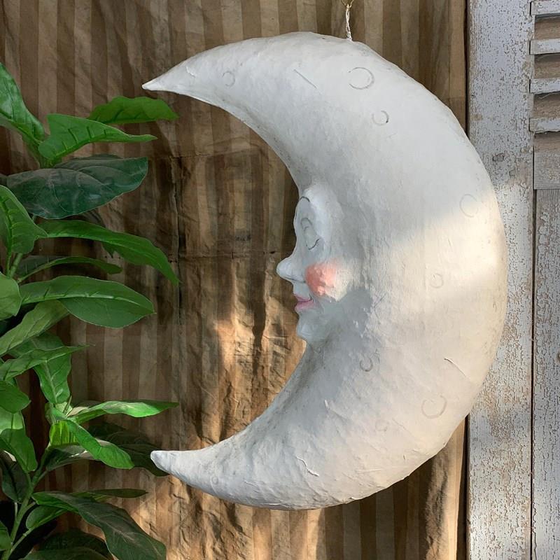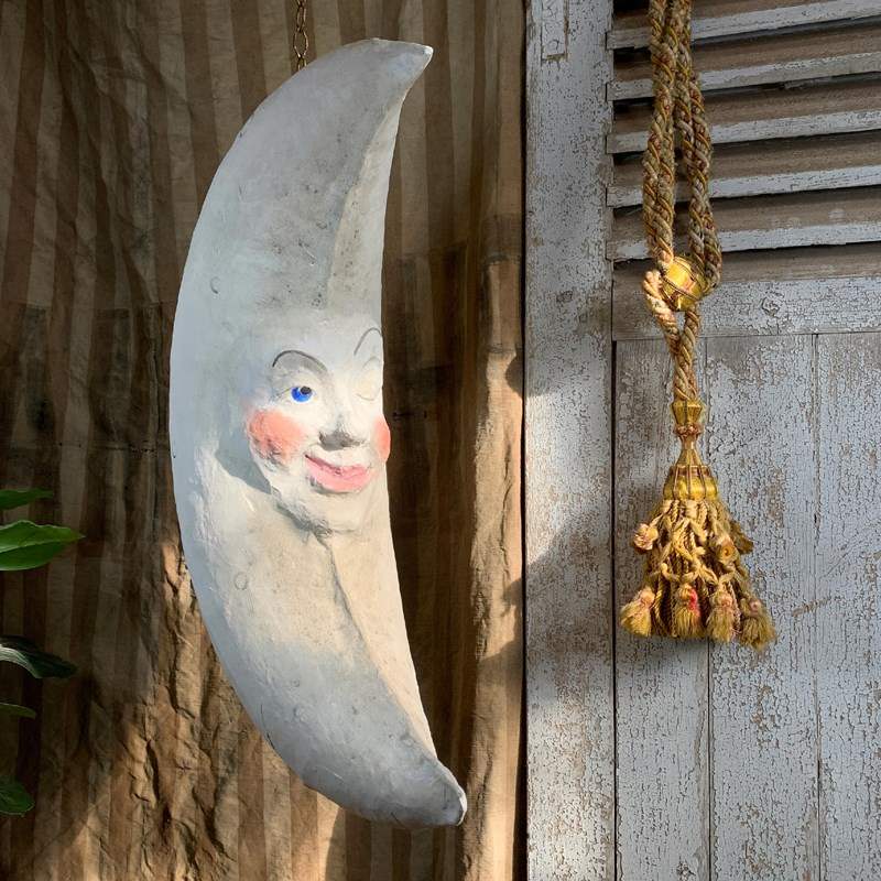 Large Folk Art Papier Mache Moon With Face