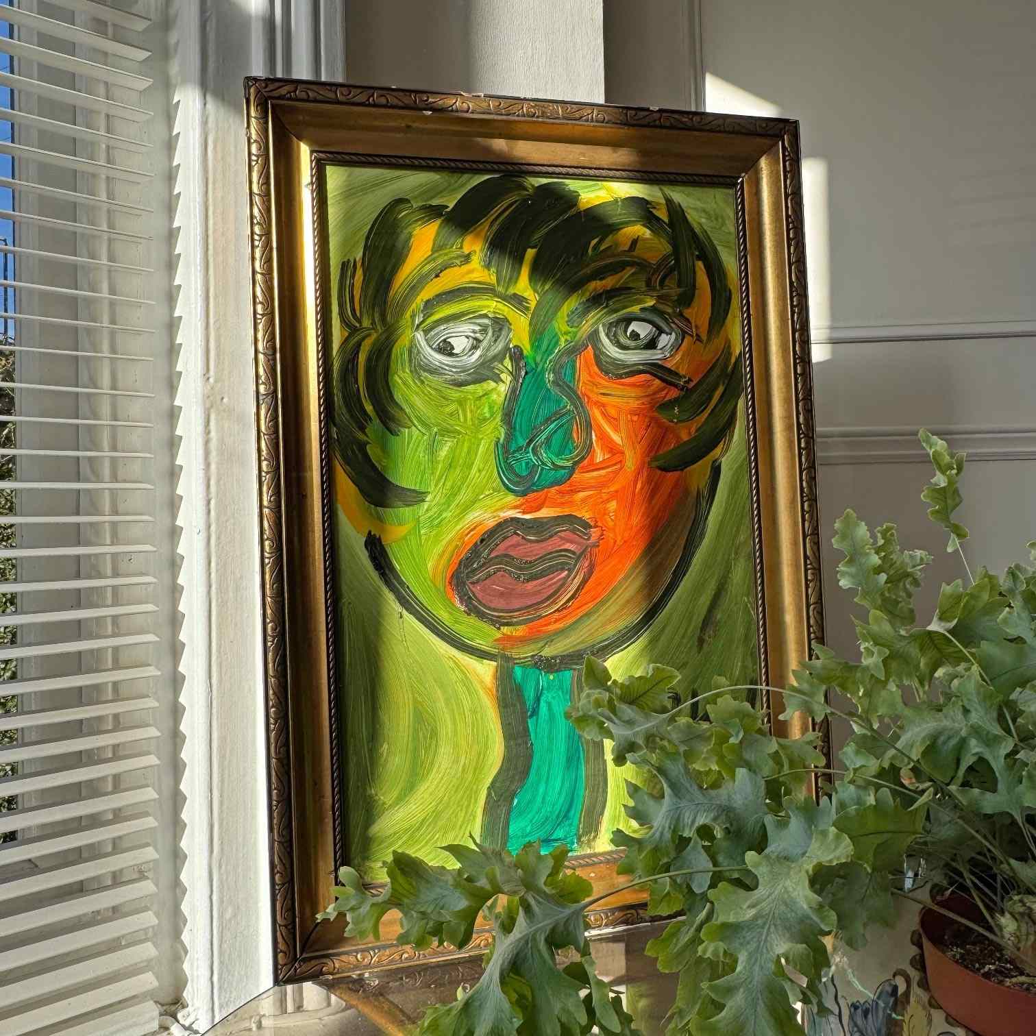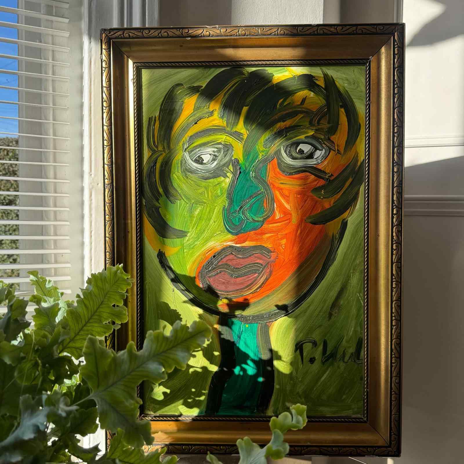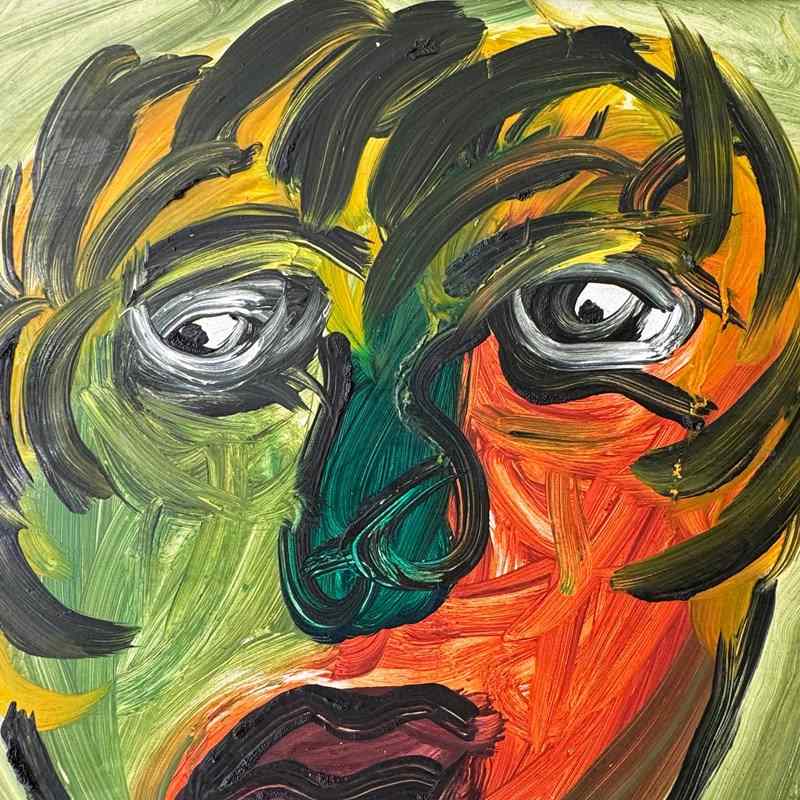 A striking abstract acrylic portrait on board signed by the artist, Peter Robert Keil.