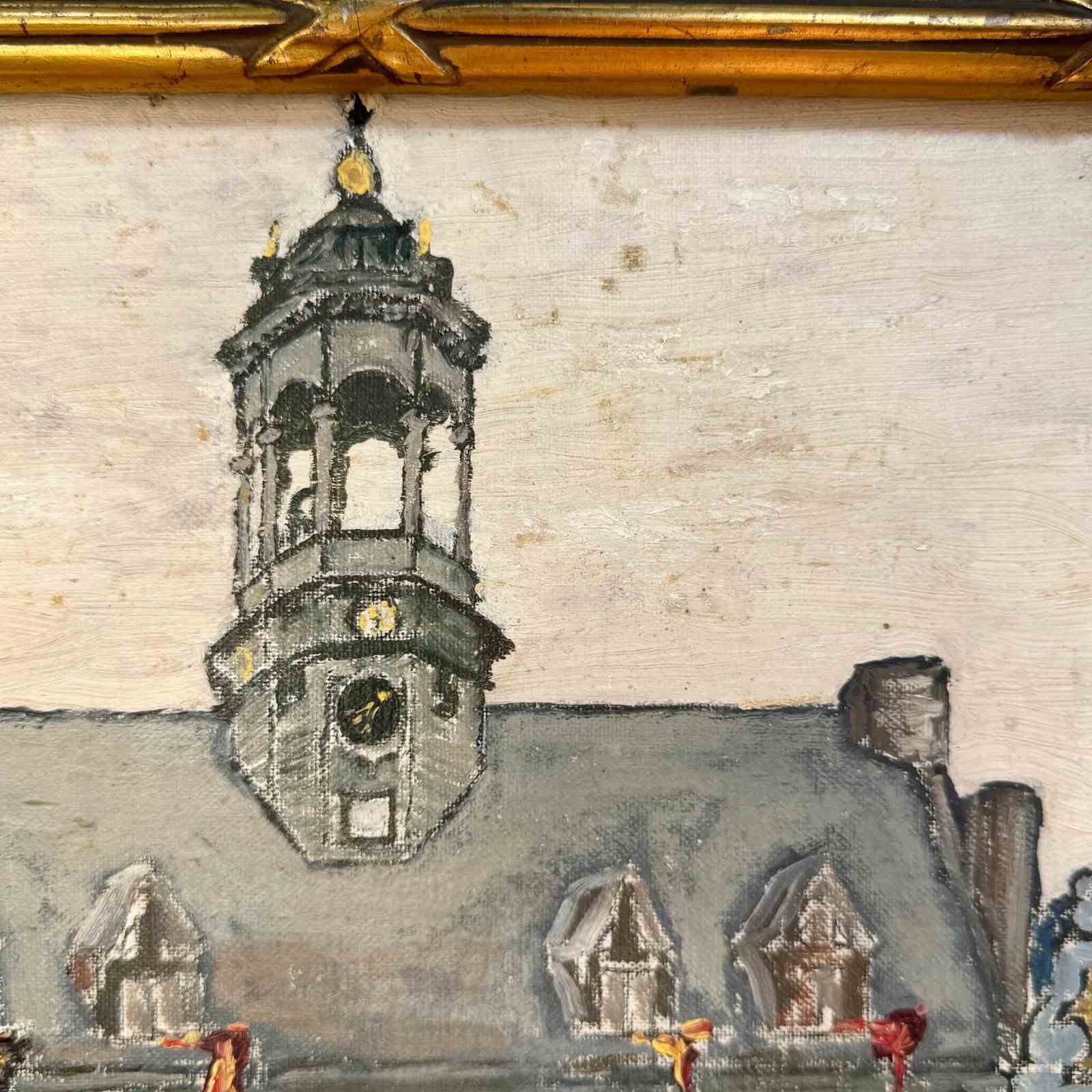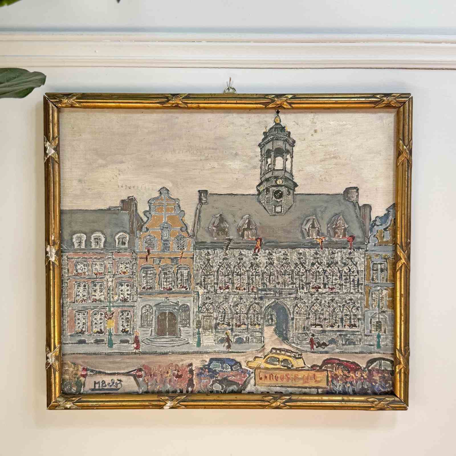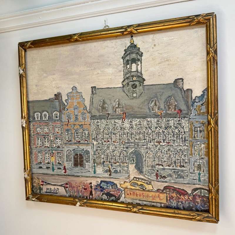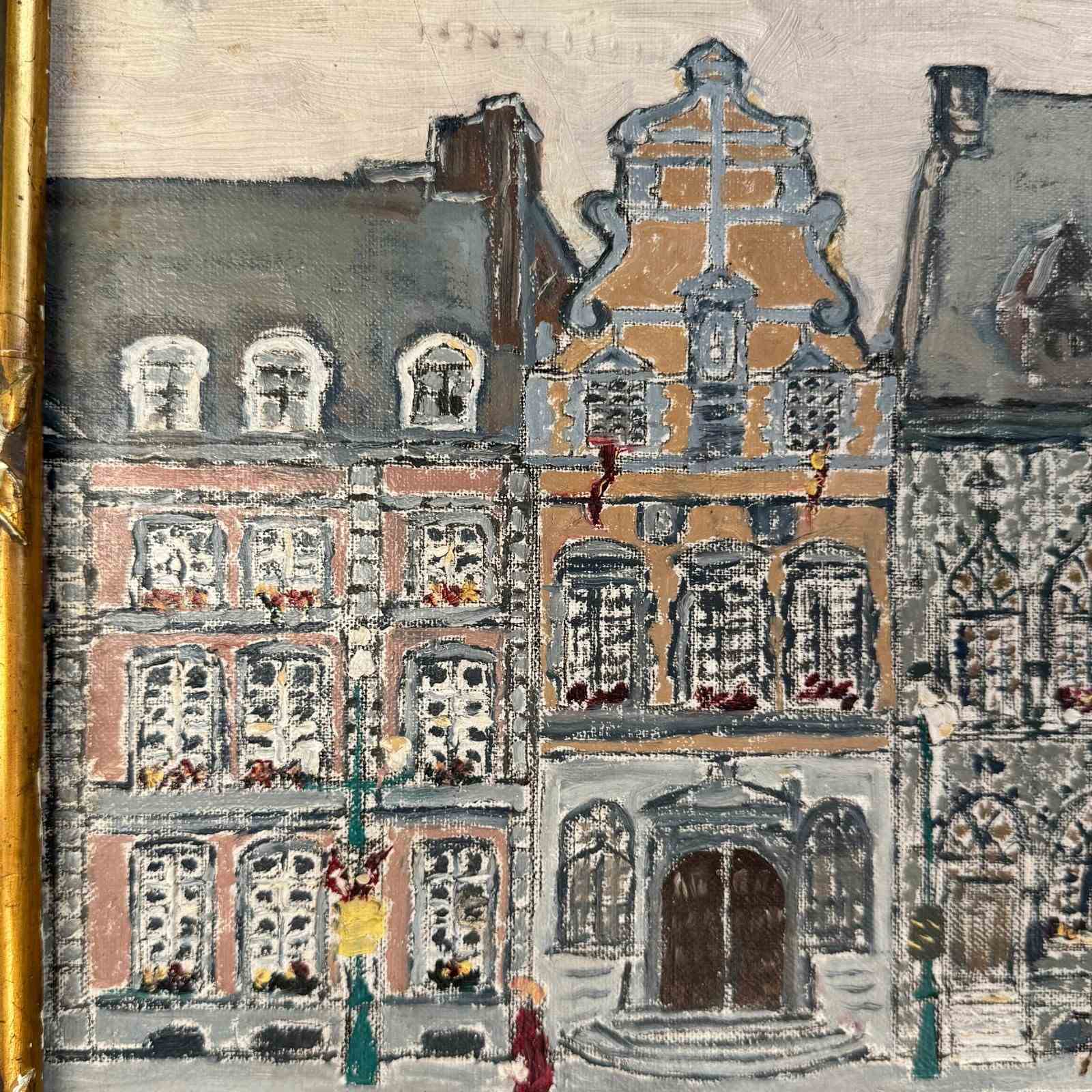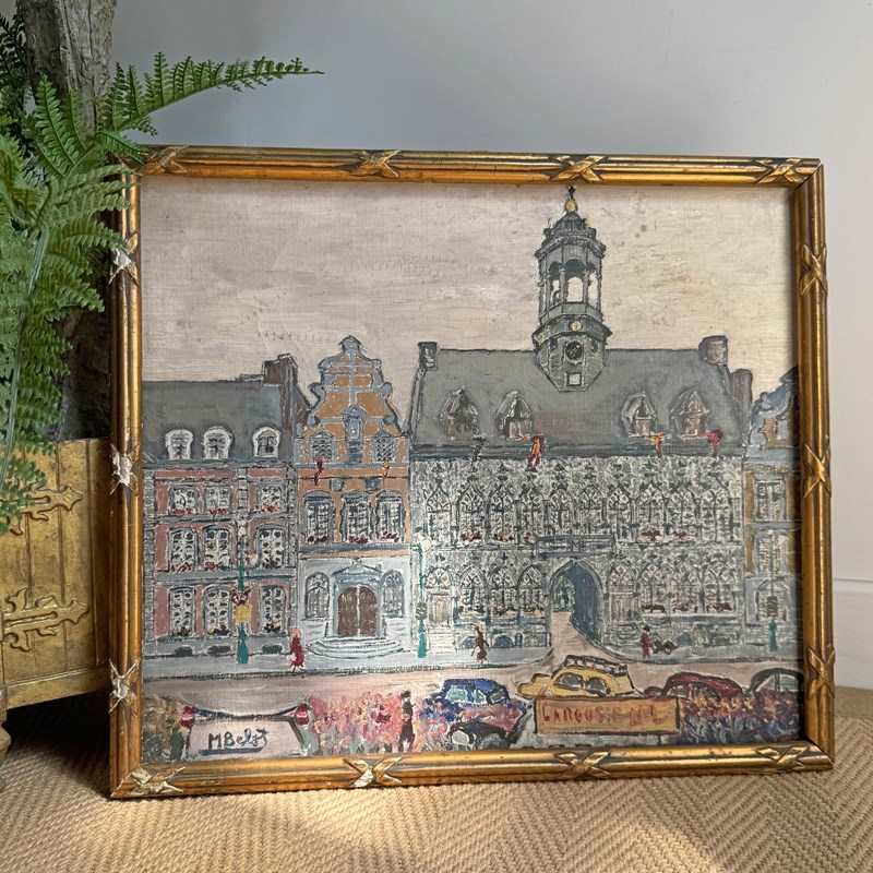 Mid Century Oil On Canvas Of Mons In Belgium
