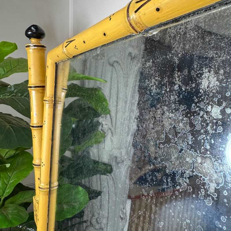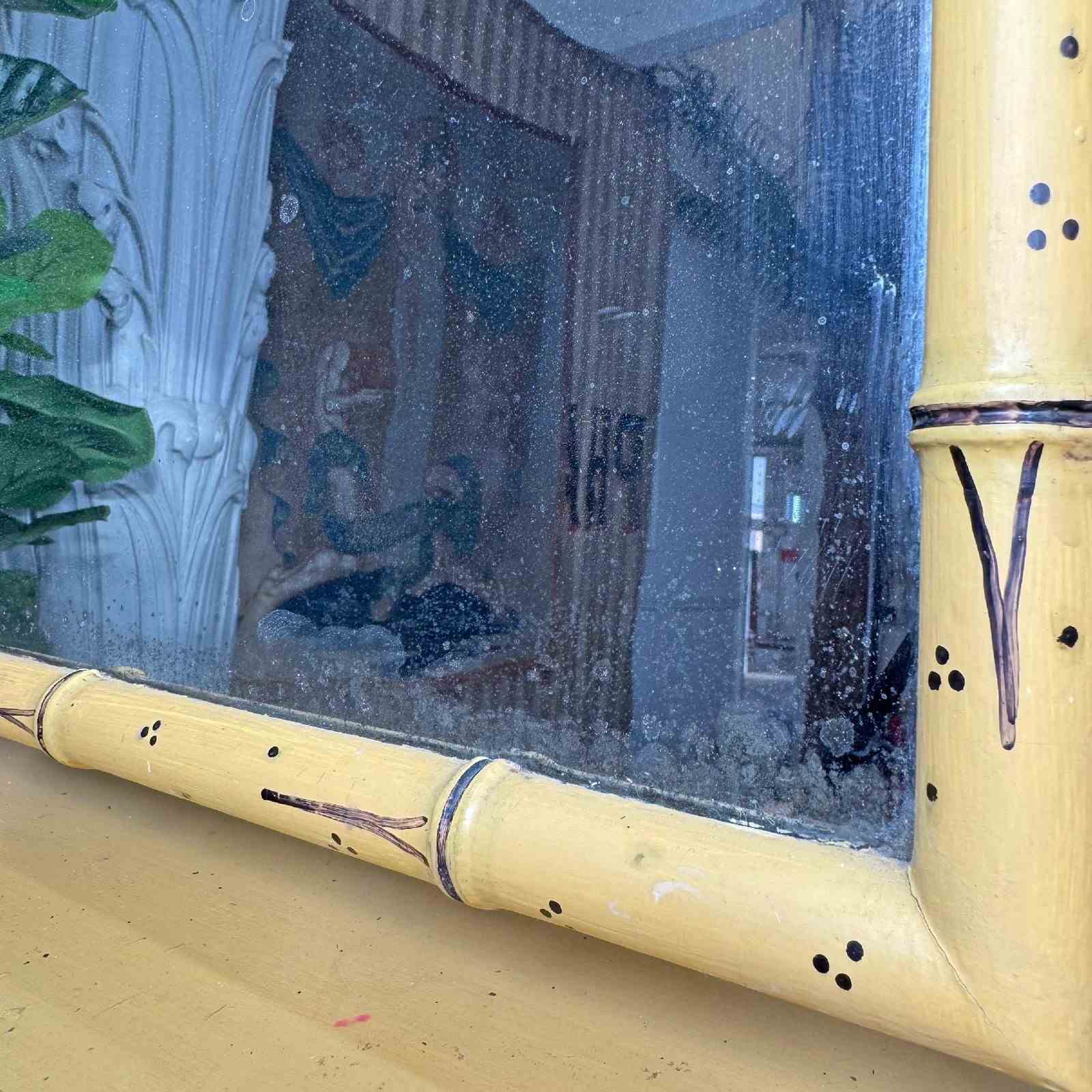 An antique large dressing table mirror, painted in the faux bamboo Regency style, the mirror plate with age related foxing