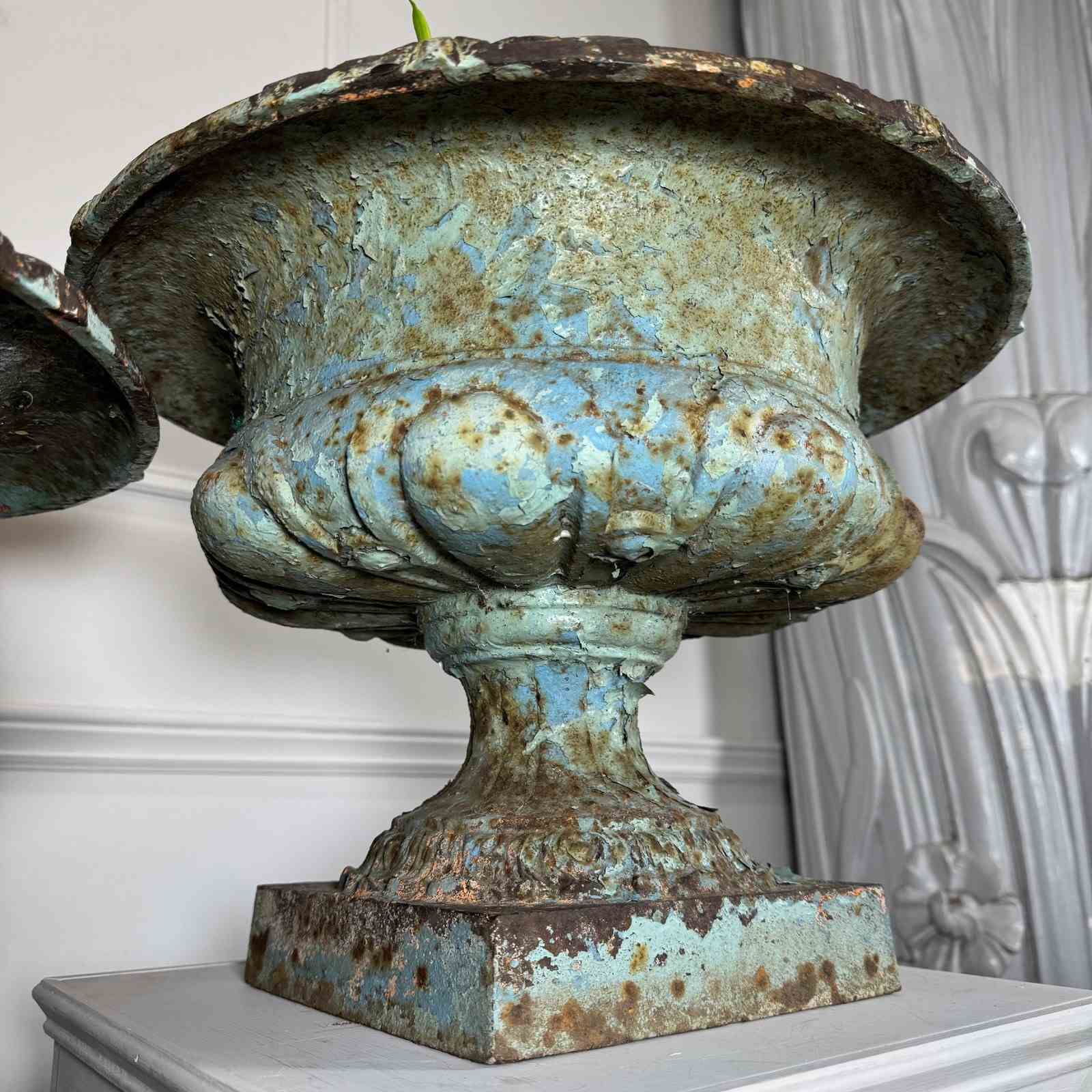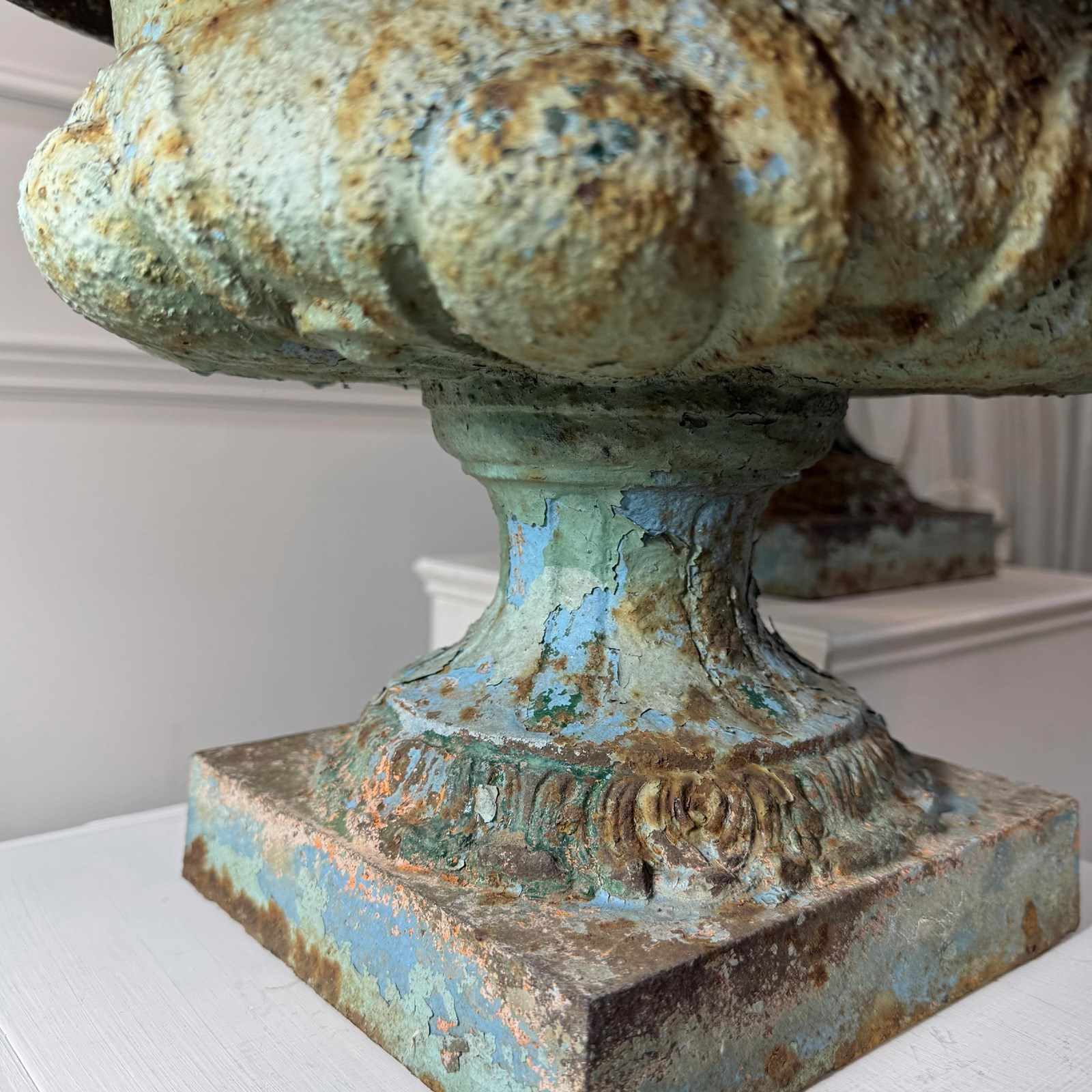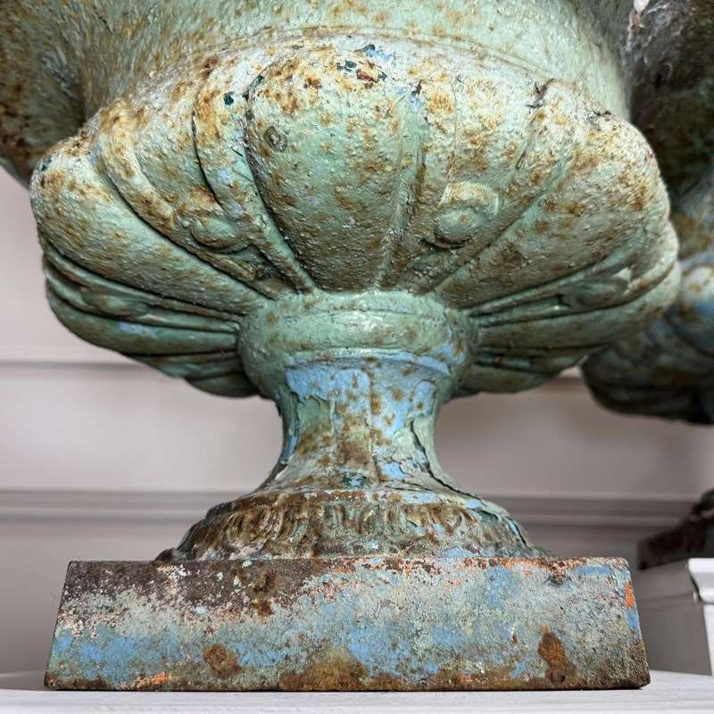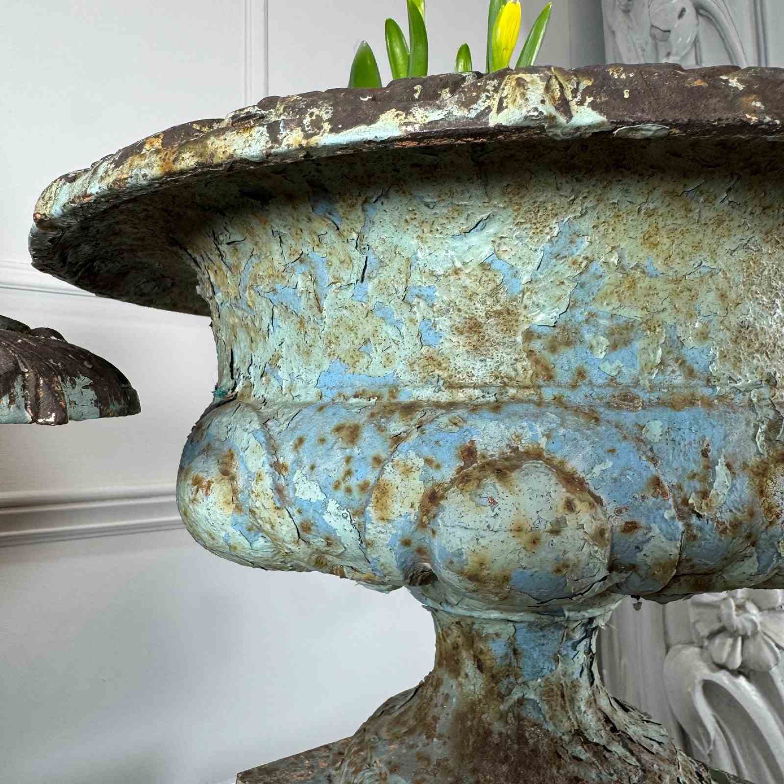 Pair Of Swedish Cast Iron Blue Tazza Urns Circa 1820