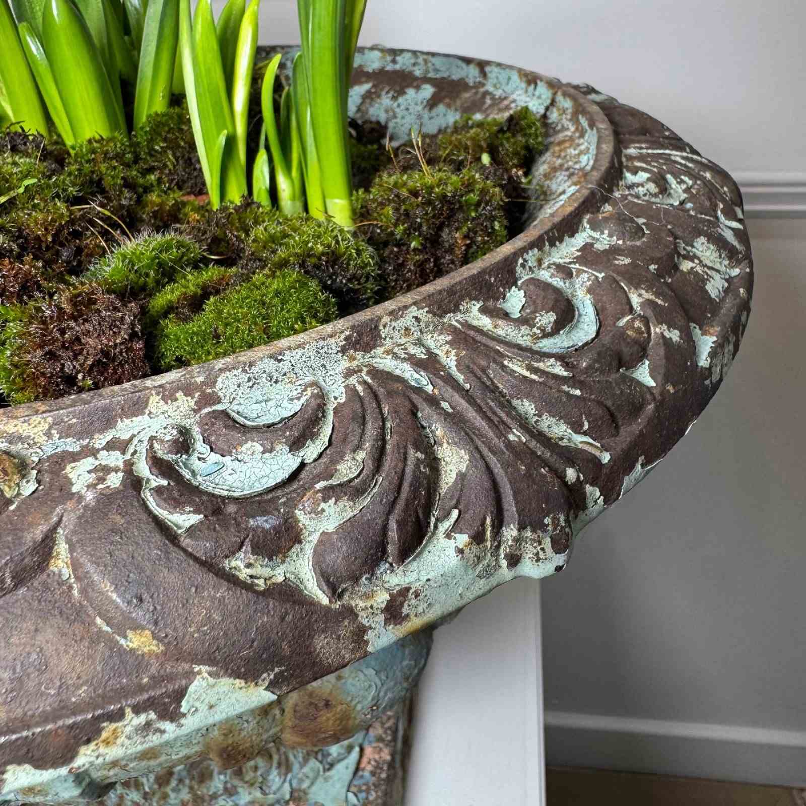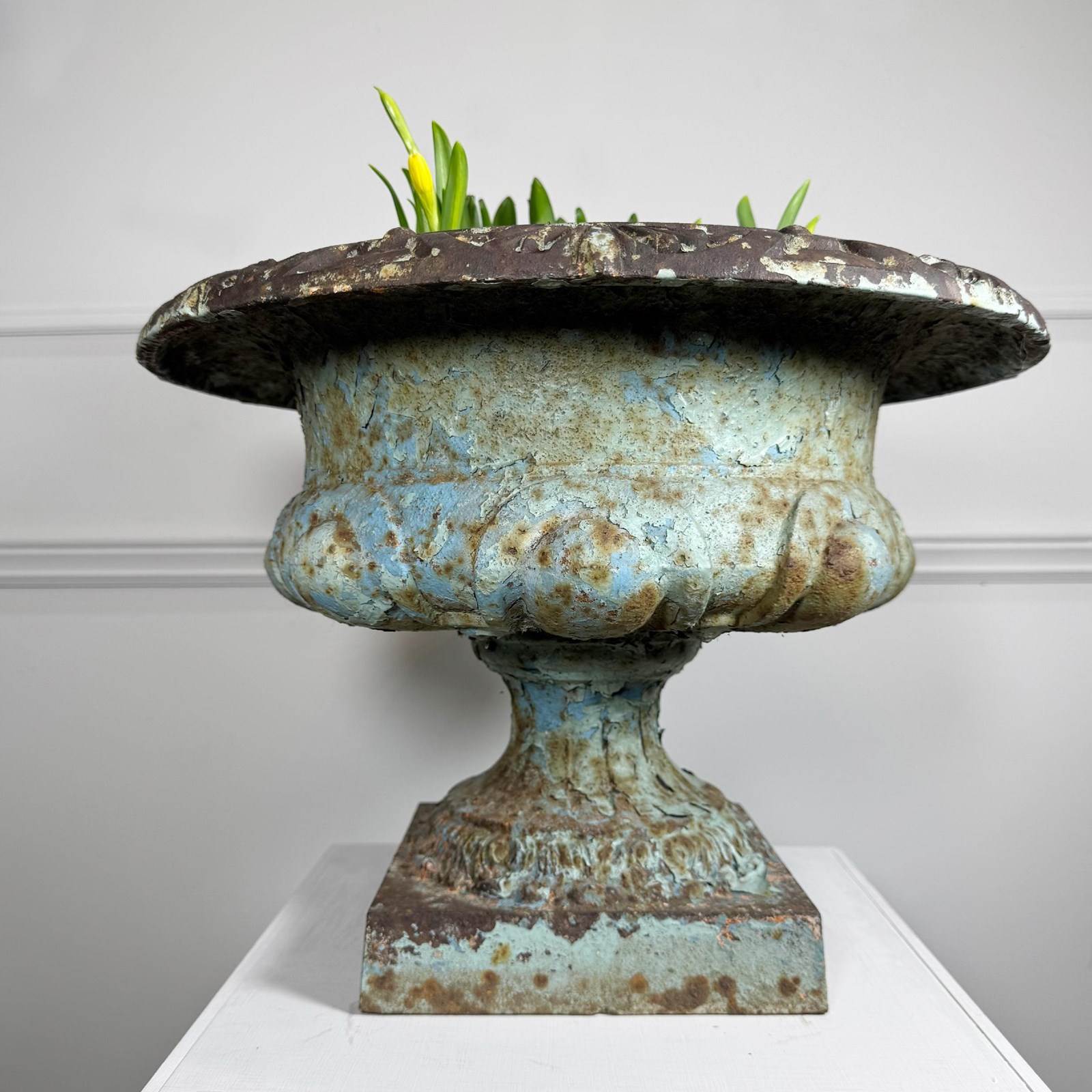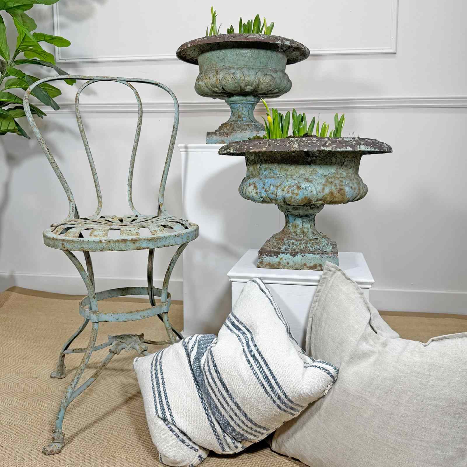 Pair Of Swedish Cast Iron Blue Tazza Urns Circa 1820
